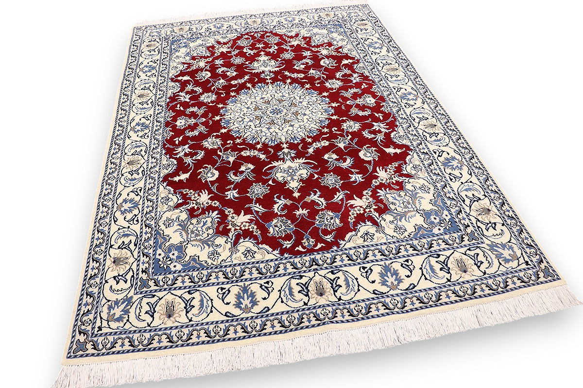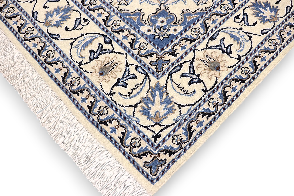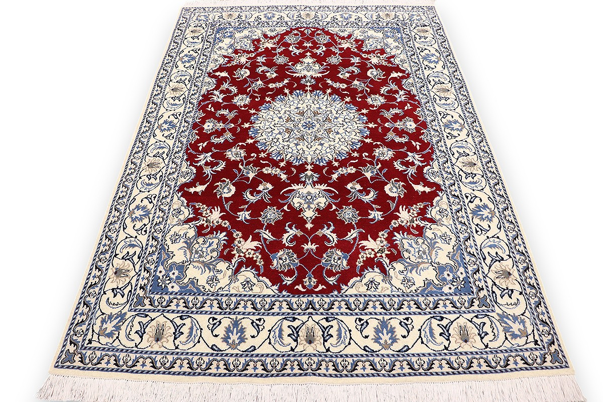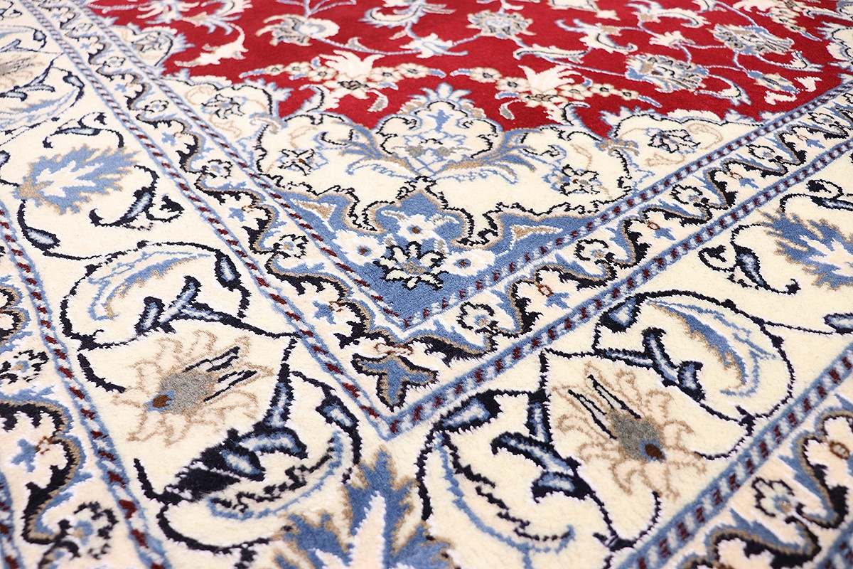 Die Stadt Nain in der Nähe von Isfahan im Zentralpersien ist bekannt für ihre feinen Teppiche, die mehr als eine Million Knoten pro Quadratmeter haben können. Je feiner die Kette, desto feiner kann auch die Knüpfung sein. In der Regel gibt es vier Qualitäten: Nain-Kaschmar (grob geknüpft), Nain-Noh-La (Baumwollfaden der Kette aus 9 Fasern gezwirnt, wodurch 40 Raj auf 7 cm kommen), Nain-Schisch-La (6 Fasern entsprechend 60 Raj), Nain-Tchaha-La (4 Fasern entsprechend 80 Raj). Alle Nain Teppiche sind durchgemustert und mit Medaillon.