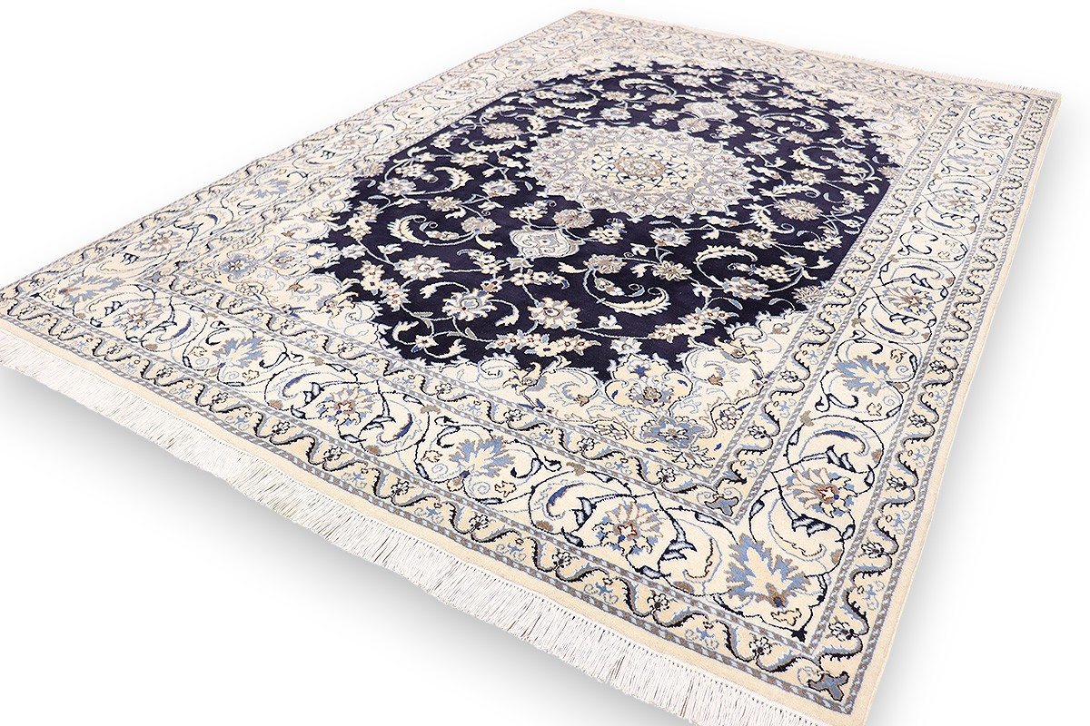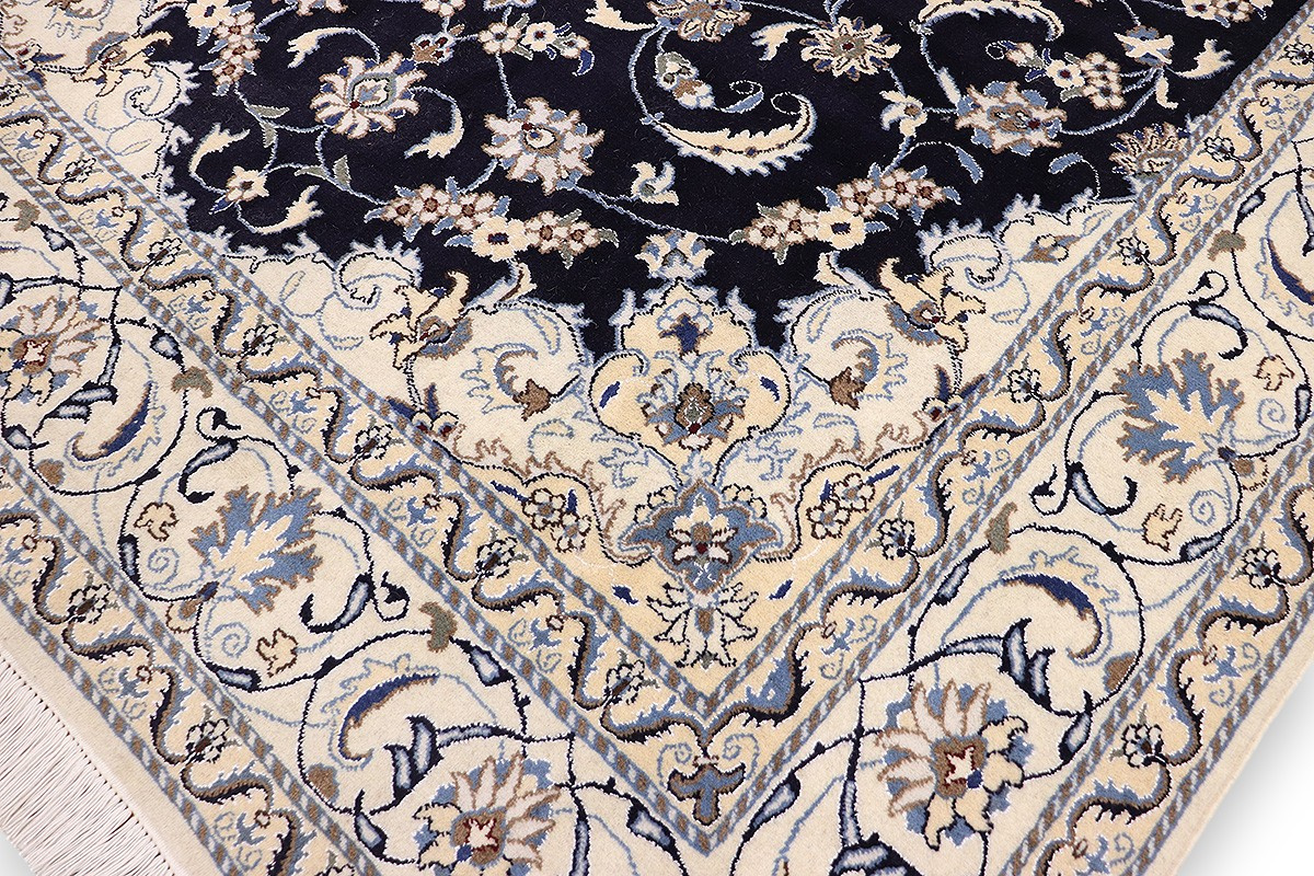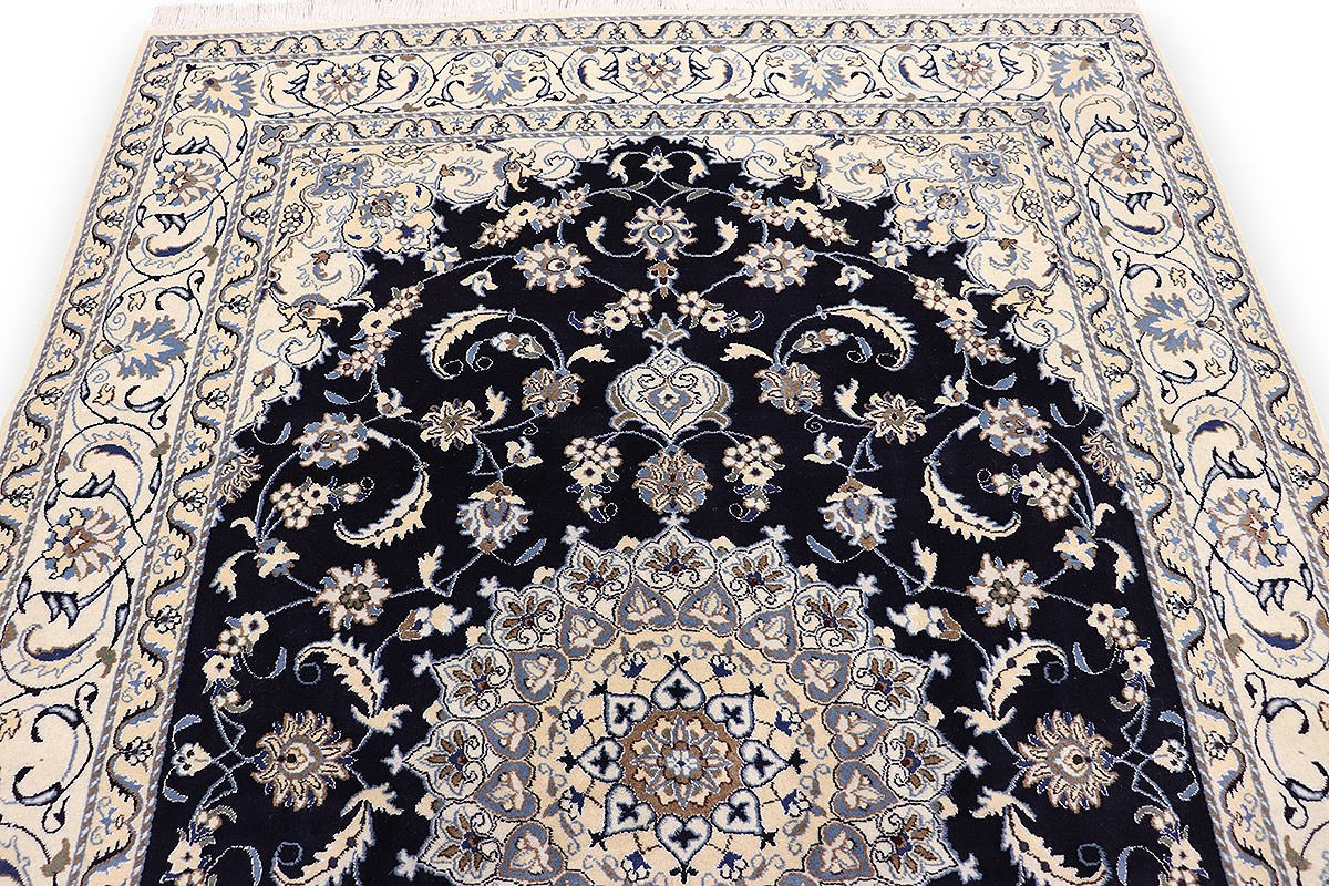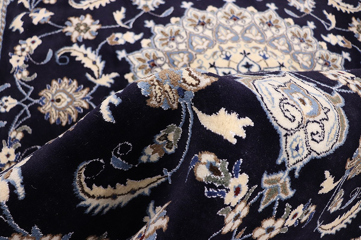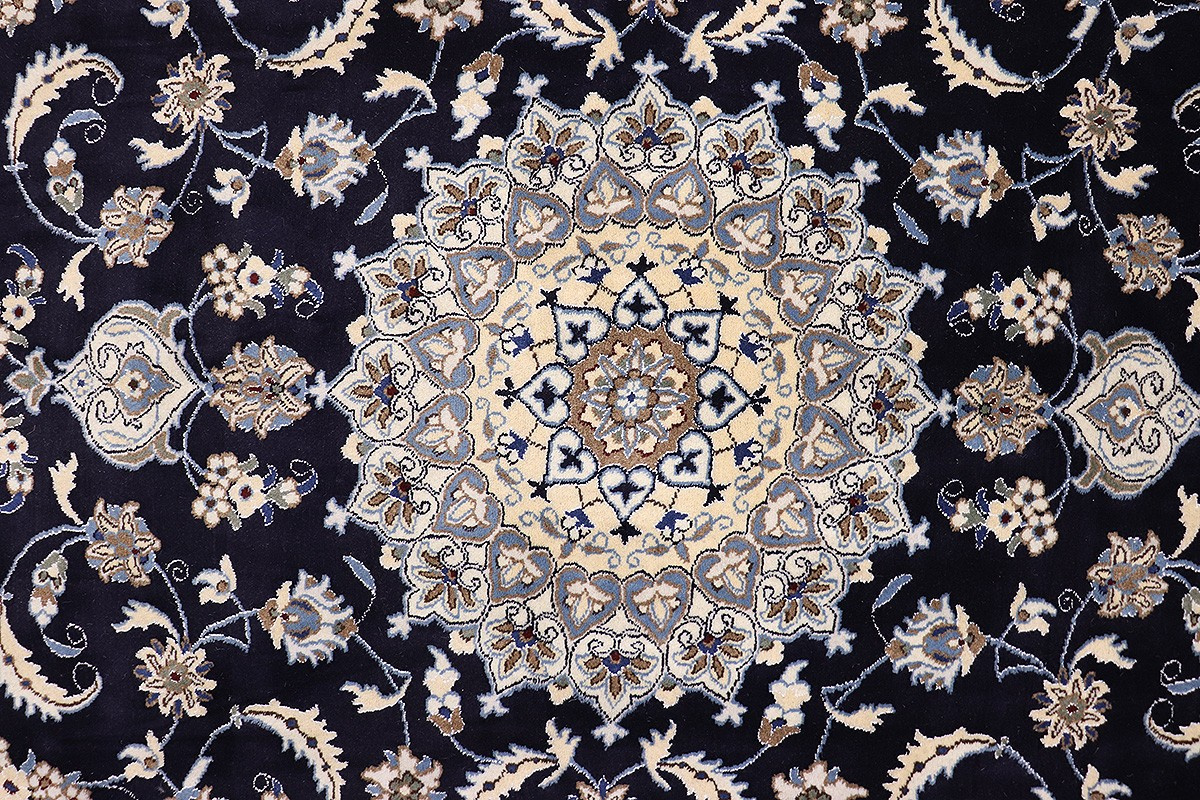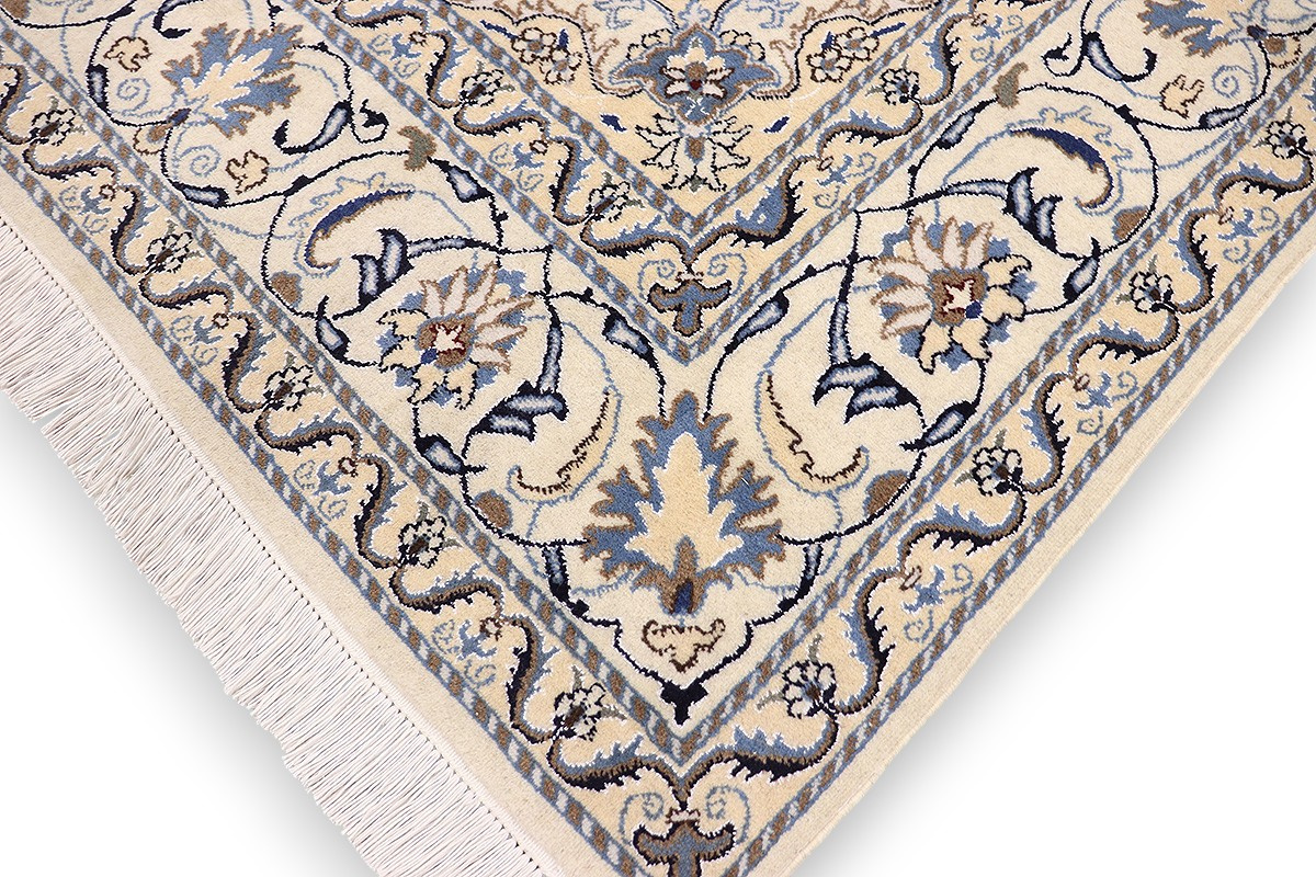 Nain Teppiche sind entweder durchgemustert oder mit Medallion. Typische Farbkombinationen von Nain Teppichen sind Blau-Beige oder Rot-Beige und selten Grün-Beige.