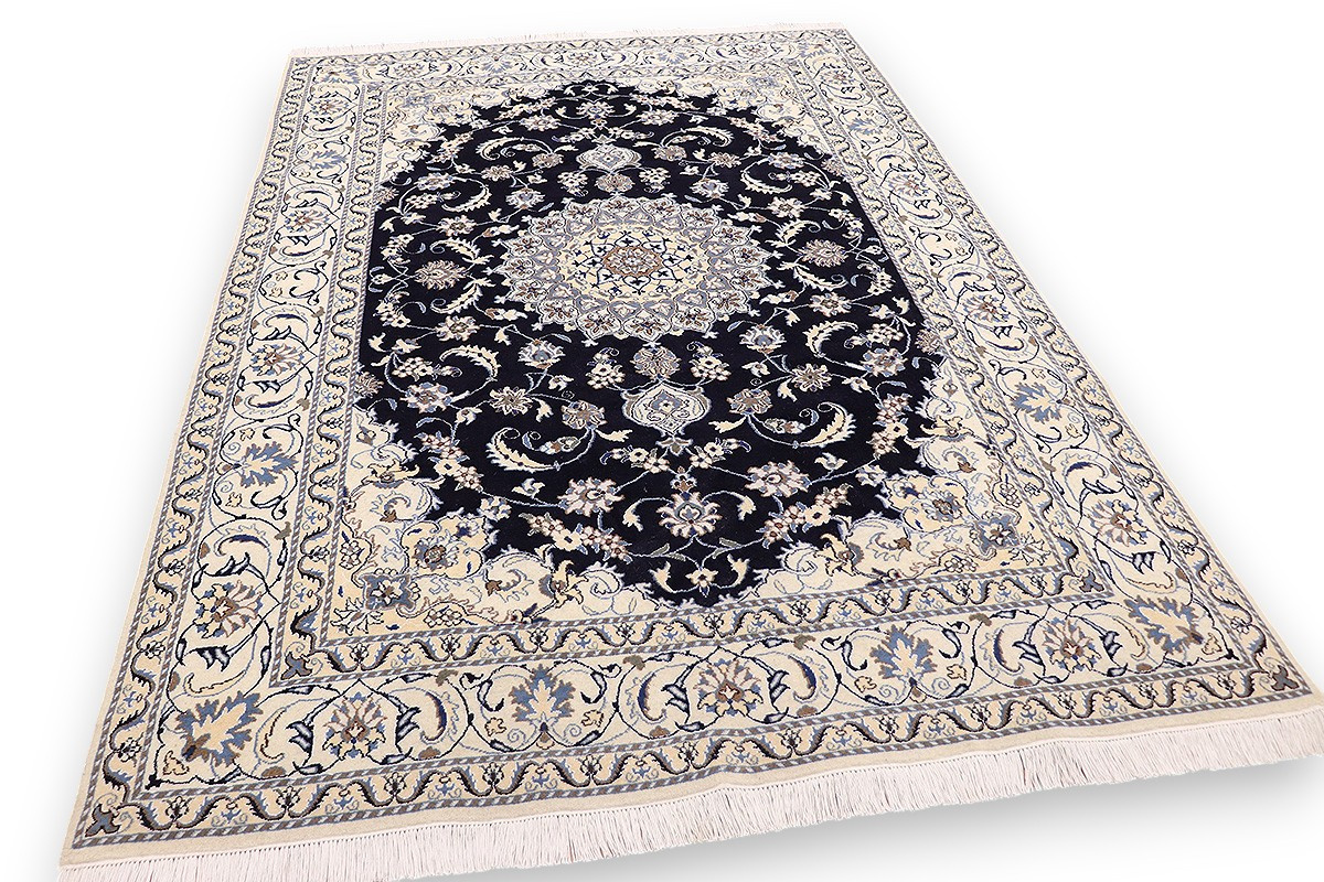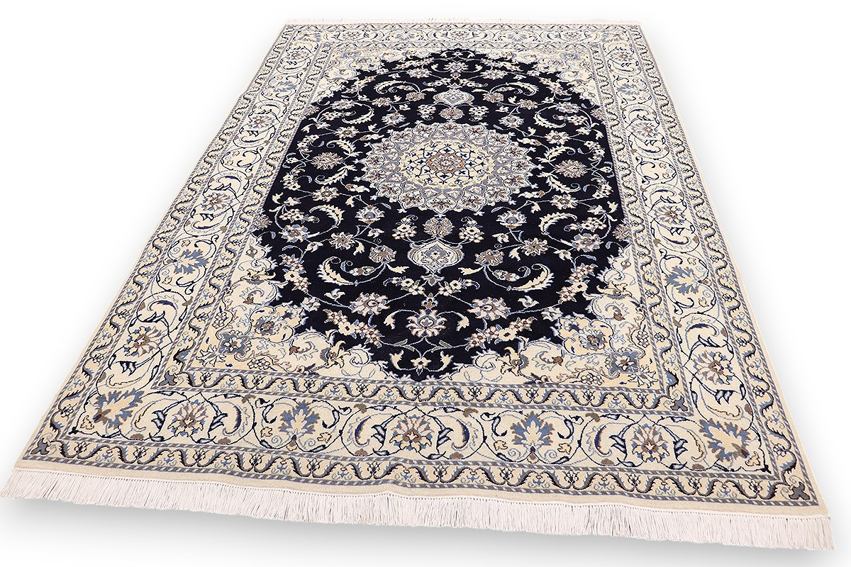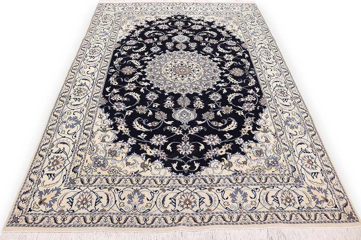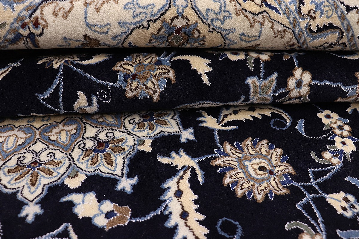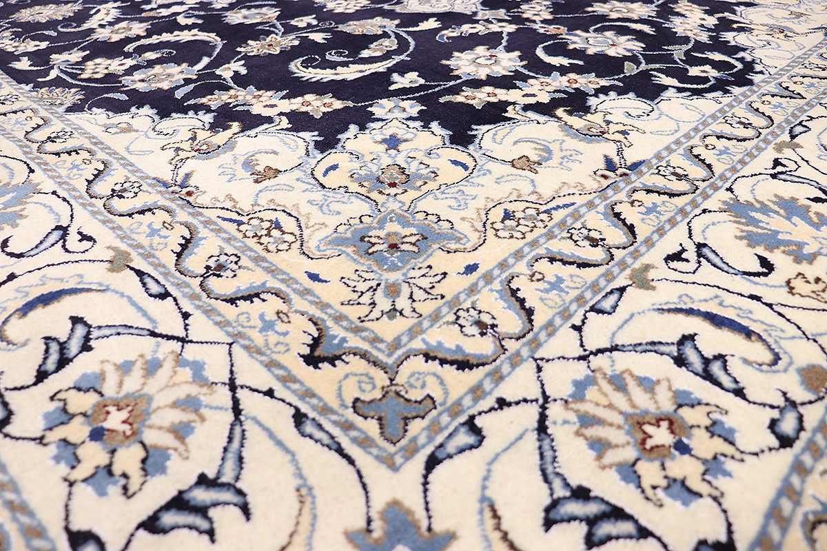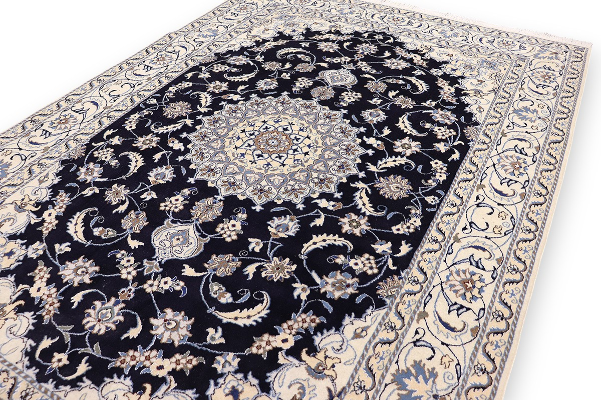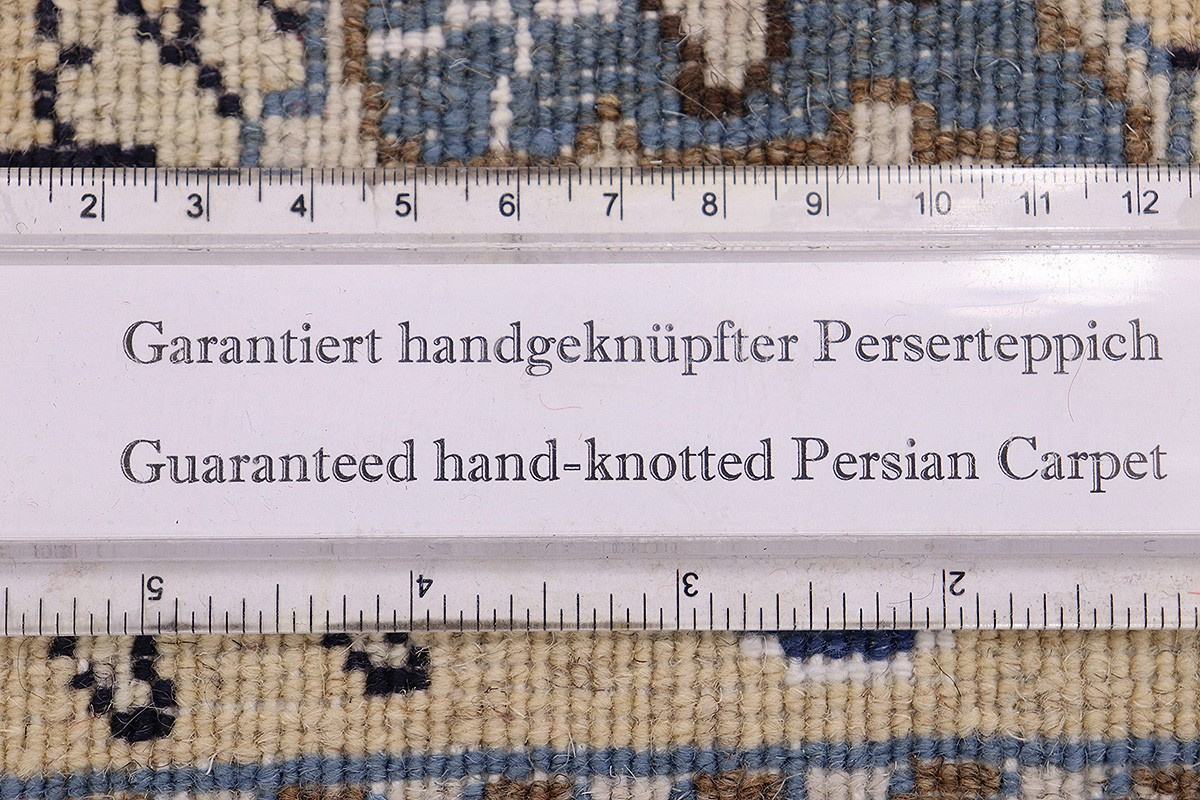 Nain Teppiche sind entweder durchgemustert oder mit Medallion. Typische Farbkombinationen von Nain Teppichen sind Blau-Beige oder Rot-Beige und selten Grün-Beige.