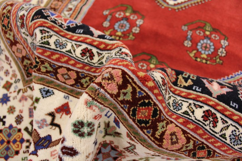 Die Ghashghai´s sind für ihre ausgezeichneten Stapelteppiche und andere gesponnene Wolleprodukte berühmt. Die Wolle, die in den Bergen und in den Senken nahe Shiraz produziert wird, ist außergewöhnlich weich und schön und nimmt eine tiefere Farbe als Wollen von anderen Teilen von Persien.