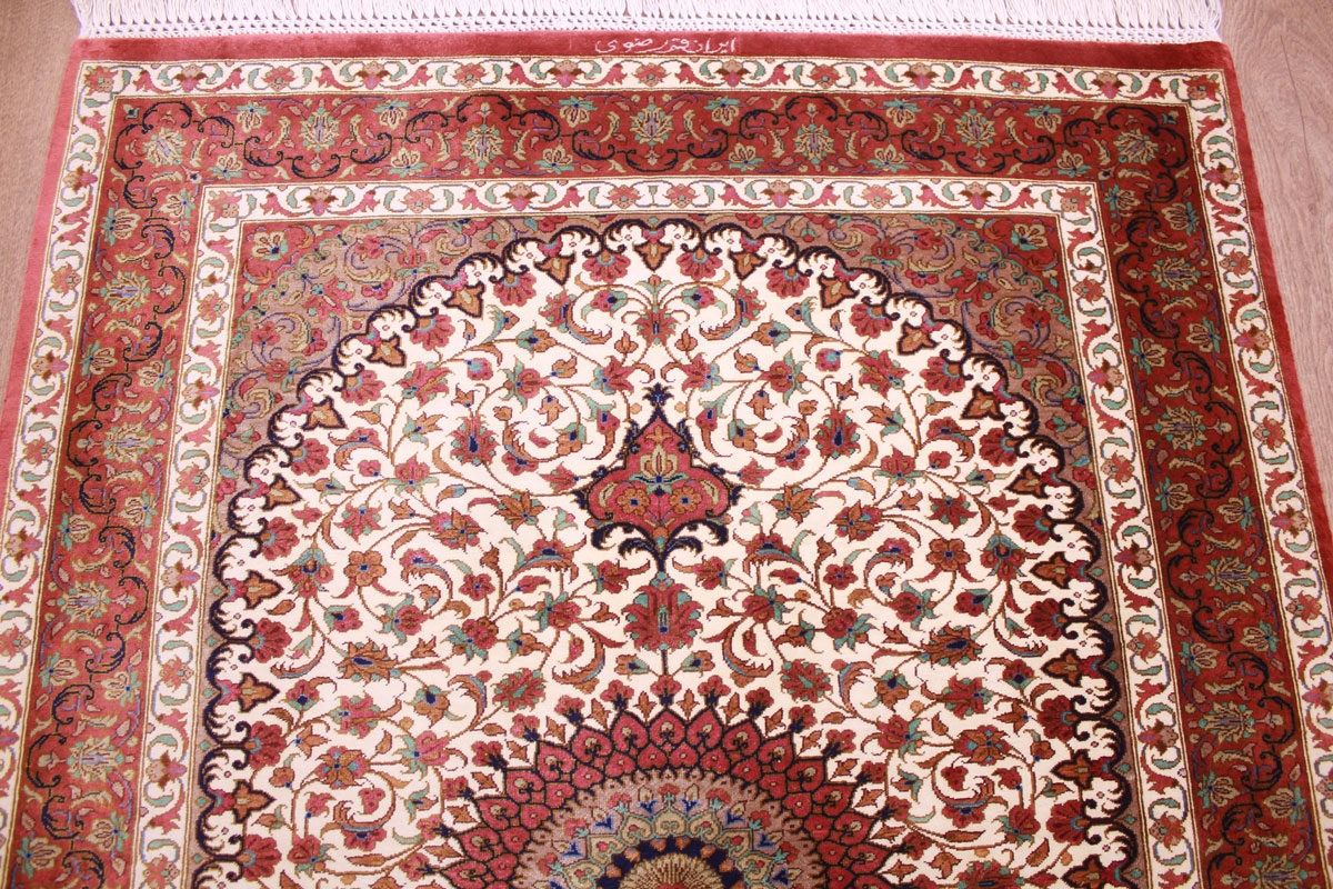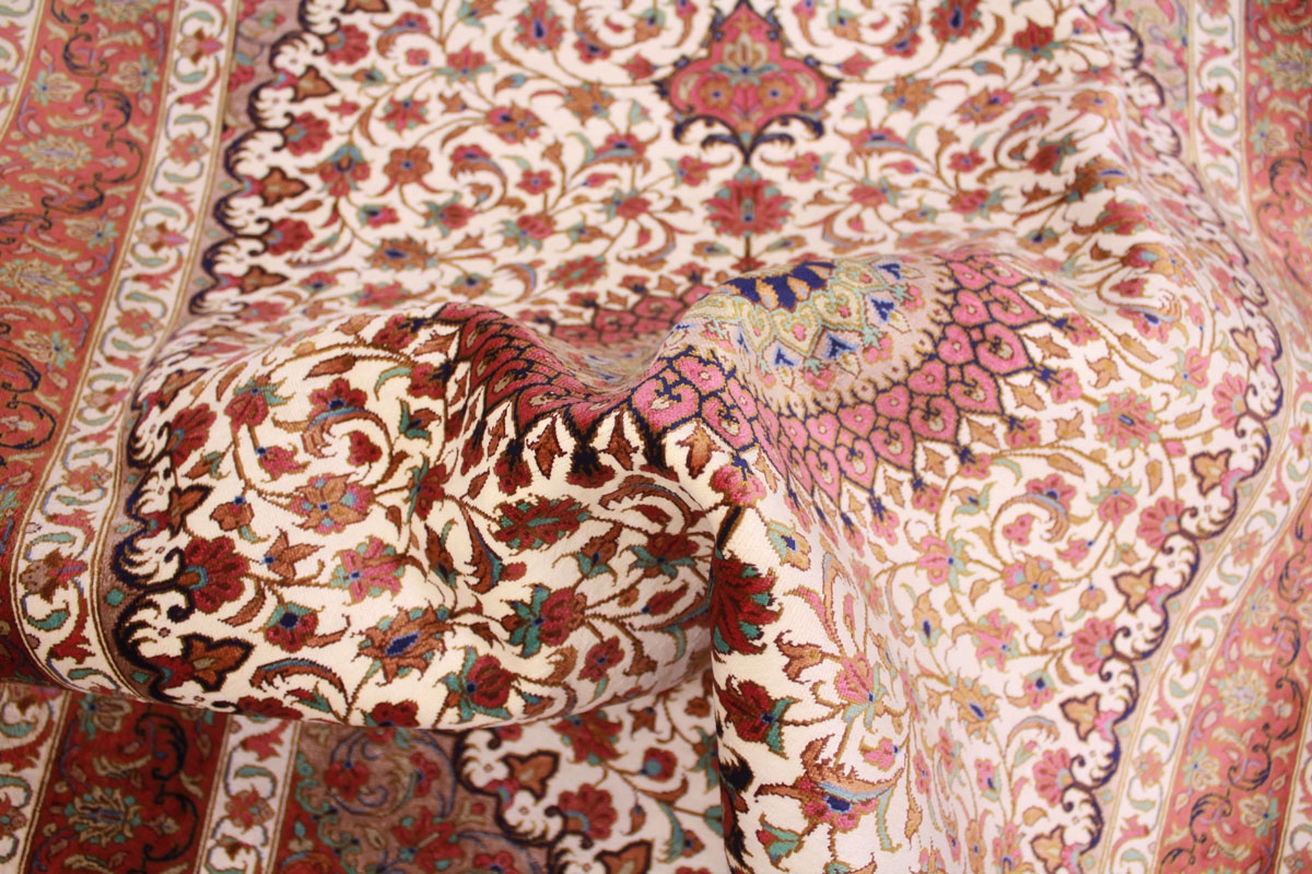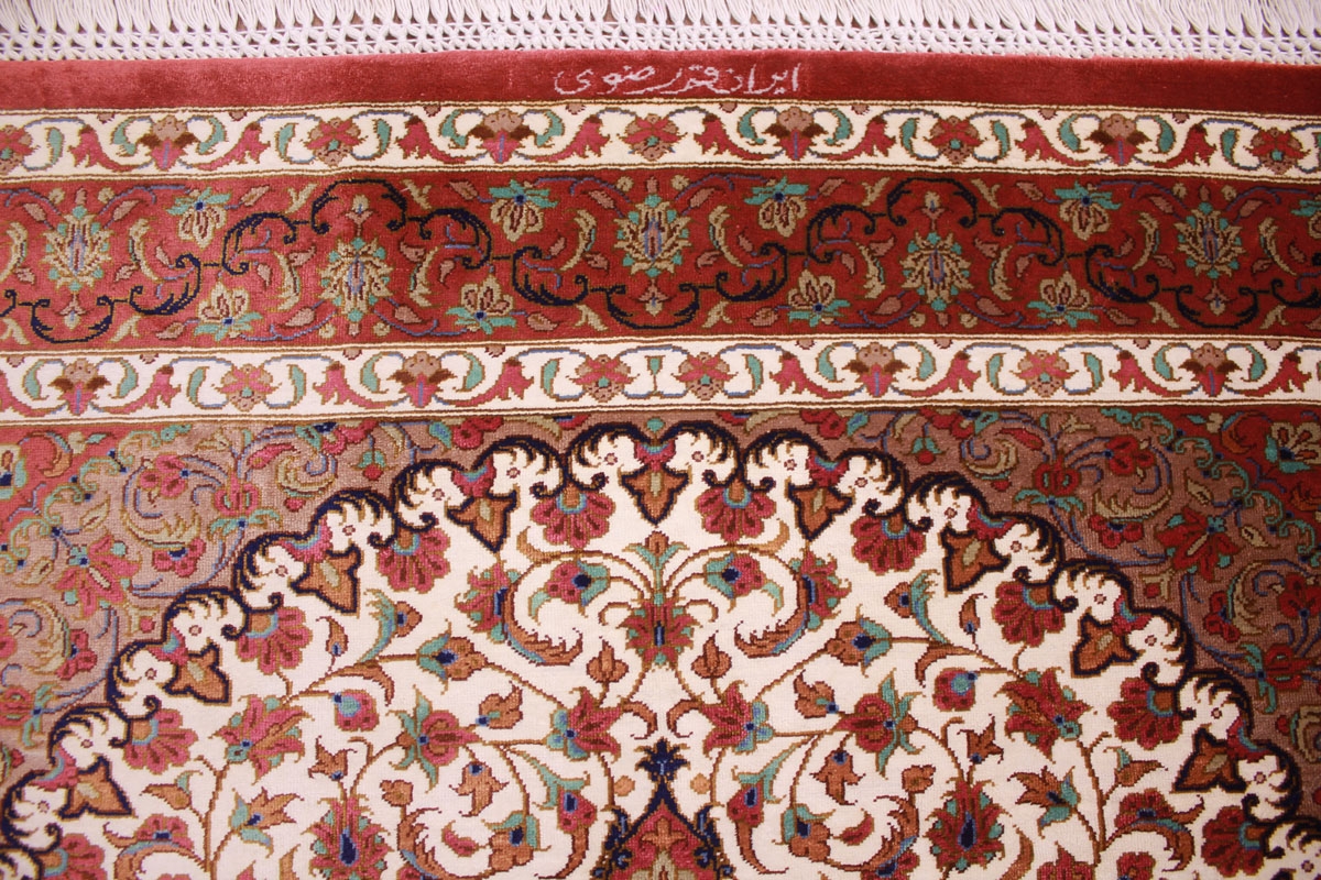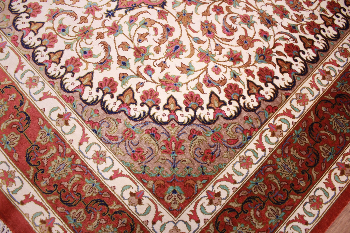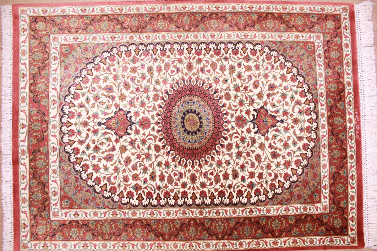 Trotz der vielseitigen Farbpalette hat der Gom-Teppich niemals grelle Farkontraste, sondern achtet auf eine harmonische Farbabstimmung. Bemerkenswert ist auch die äußerst exakte Knüpfung, die fast an Maschinenarbeit erinnert.