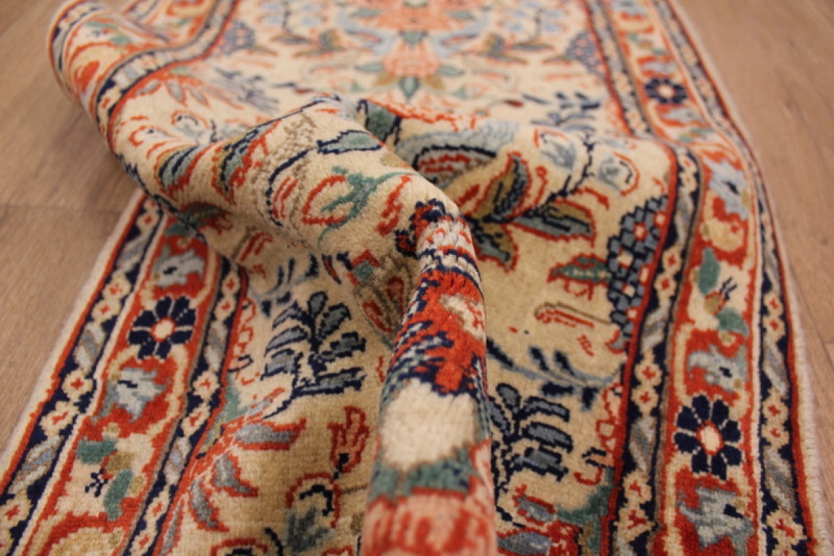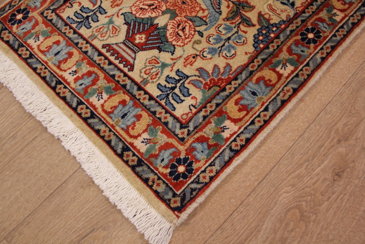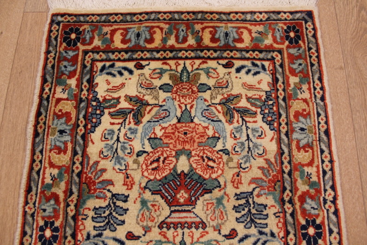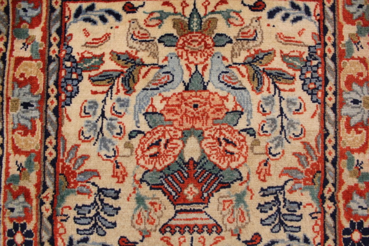 Waraminteppiche sind einer der qualitativ feinsten Teppiche überhaupt. Diese haben etwa 500.000 Knoten per Quadratmeter und haben ihr eigenes spezielles Design mit sehr vielen Vögelabbildungen und Paradiesmuster.