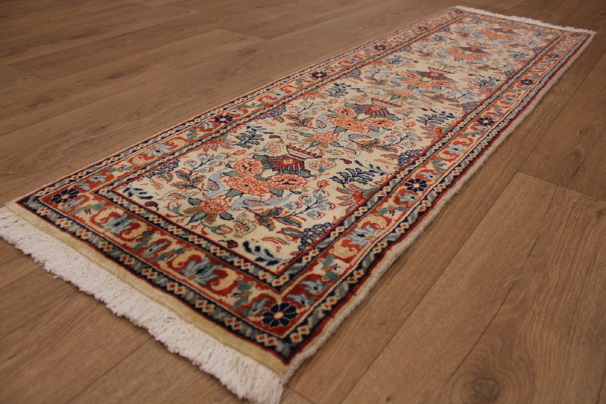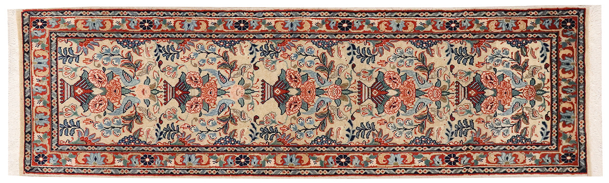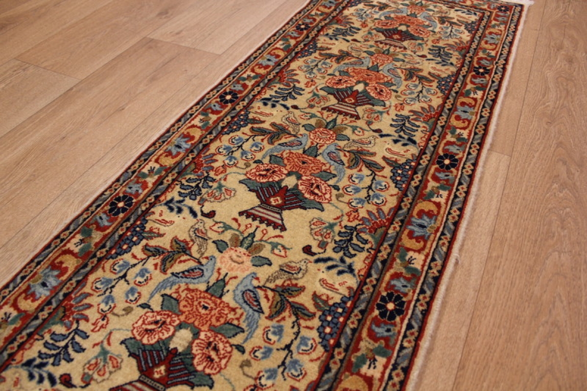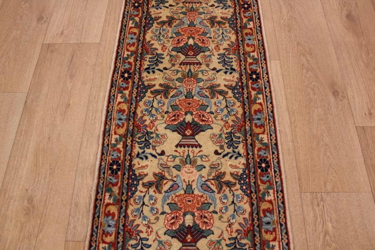 Waraminteppiche sind einer der qualitativ feinsten Teppiche überhaupt. Diese haben etwa 500.000 Knoten per Quadratmeter und haben ihr eigenes spezielles Design mit sehr vielen Vögelabbildungen und Paradiesmuster.