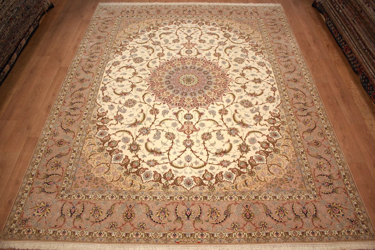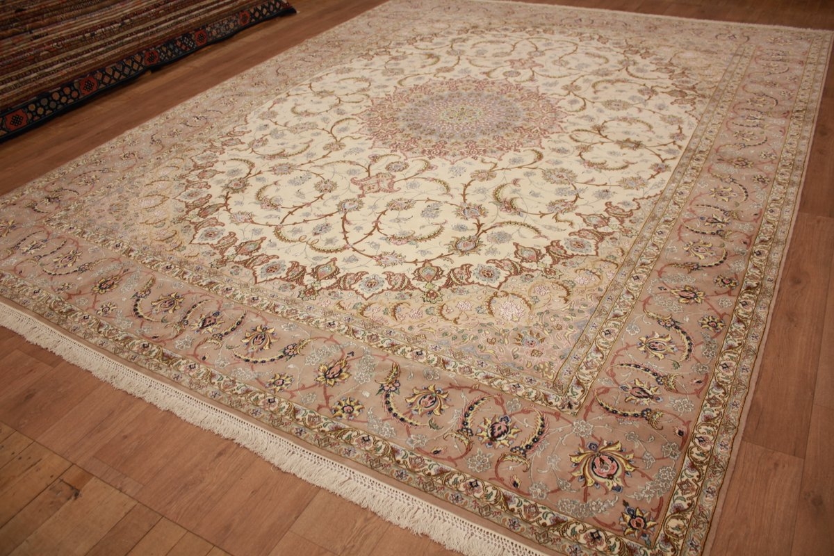 Feiner Perserteppich Isfahan mit Seide 400x315 cm Beige
