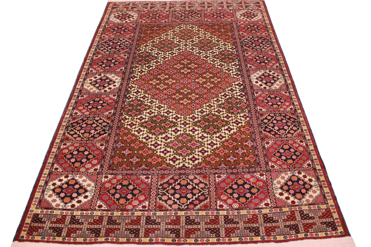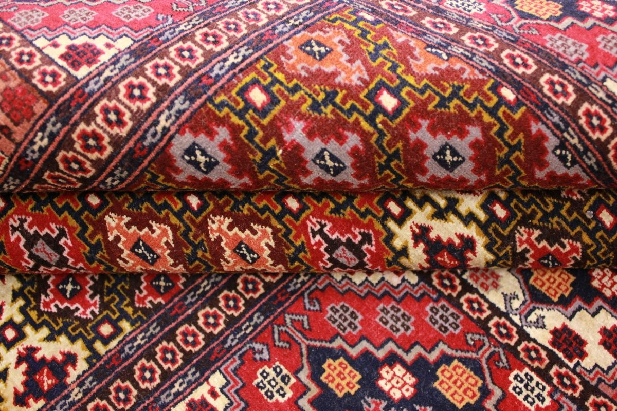 Turkmenische Teppiche werden in und um Turkmenistan geknüpft. Für die Herstellung von turkmenishe Teppiche verwendet man Wolle hoher Qualität und die Fransen sind aus Baumwolle oder Seide. Rot ist die dominierende Farbe bei diesen Teppichen.