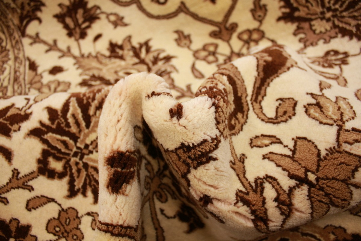 Waraminteppiche sind einer der qualitativ feinsten Teppiche überhaupt. Diese haben etwa 500.000 Knoten per Quadratmeter und haben ihr eigenes spezielles Design mit sehr vielen Vögelabbildungen und Paradiesmuster.
