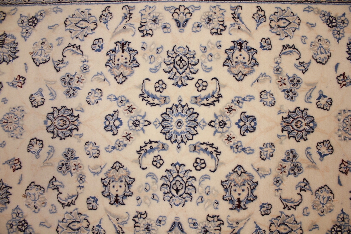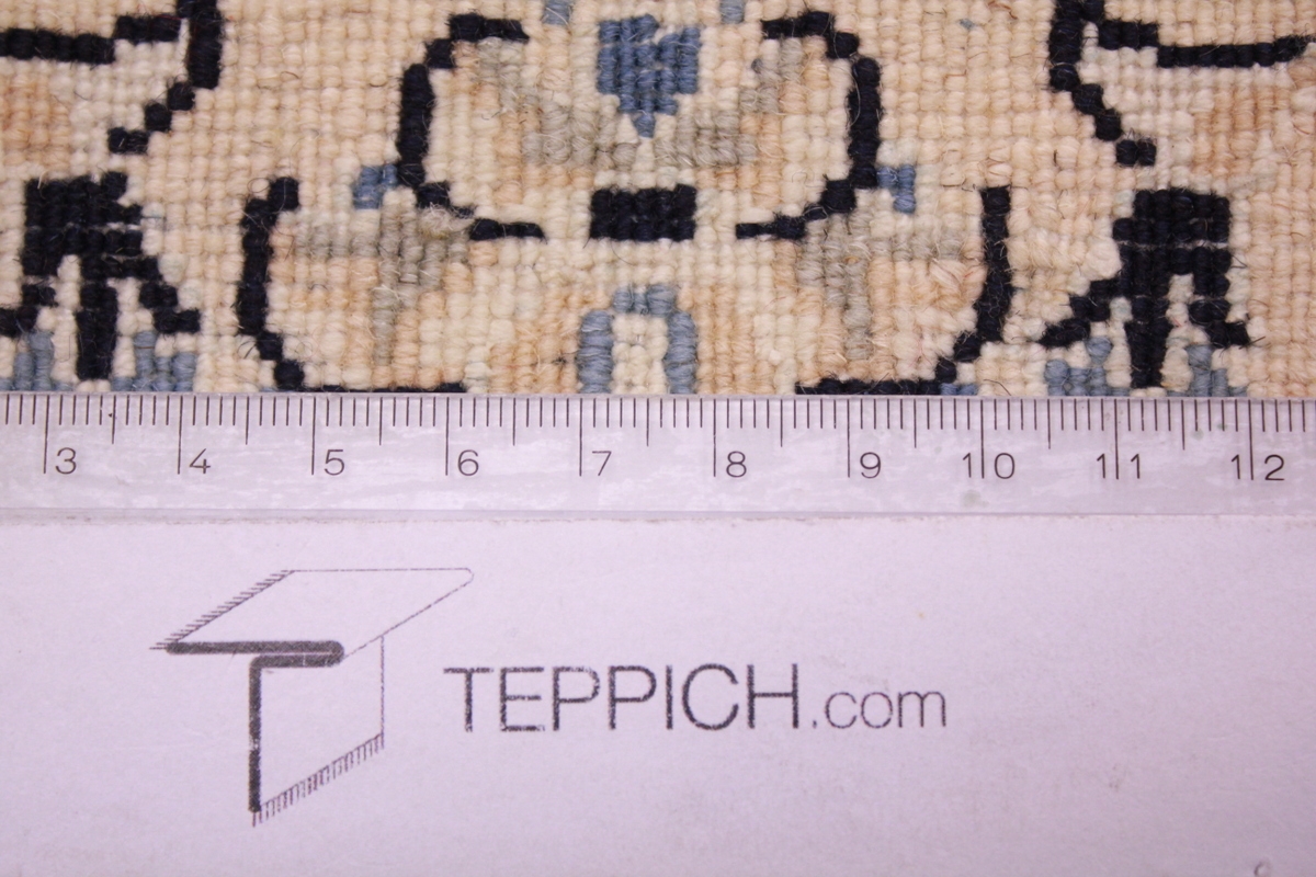 Die Stadt Nain in der Nähe von Isfahan im Zentralpersien ist bekannt für ihre feinen Teppiche, die mehr als eine Million Knoten pro Quadratmeter haben können. Je feiner die Kette, desto feiner kann auch die Knüpfung sein. In der Regel gibt es vier Qualitäten: Nain-Kaschmar (grob geknüpft), Nain-Noh-La (Baumwollfaden der Kette aus 9 Fasern gezwirnt, wodurch 40 Raj auf 7 cm kommen), Nain-Schisch-La (6 Fasern entsprechend 60 Raj), Nain-Tchaha-La (4 Fasern entsprechend 80 Raj). Alle Nain Teppiche sind durchgemustert und mit Medaillon.