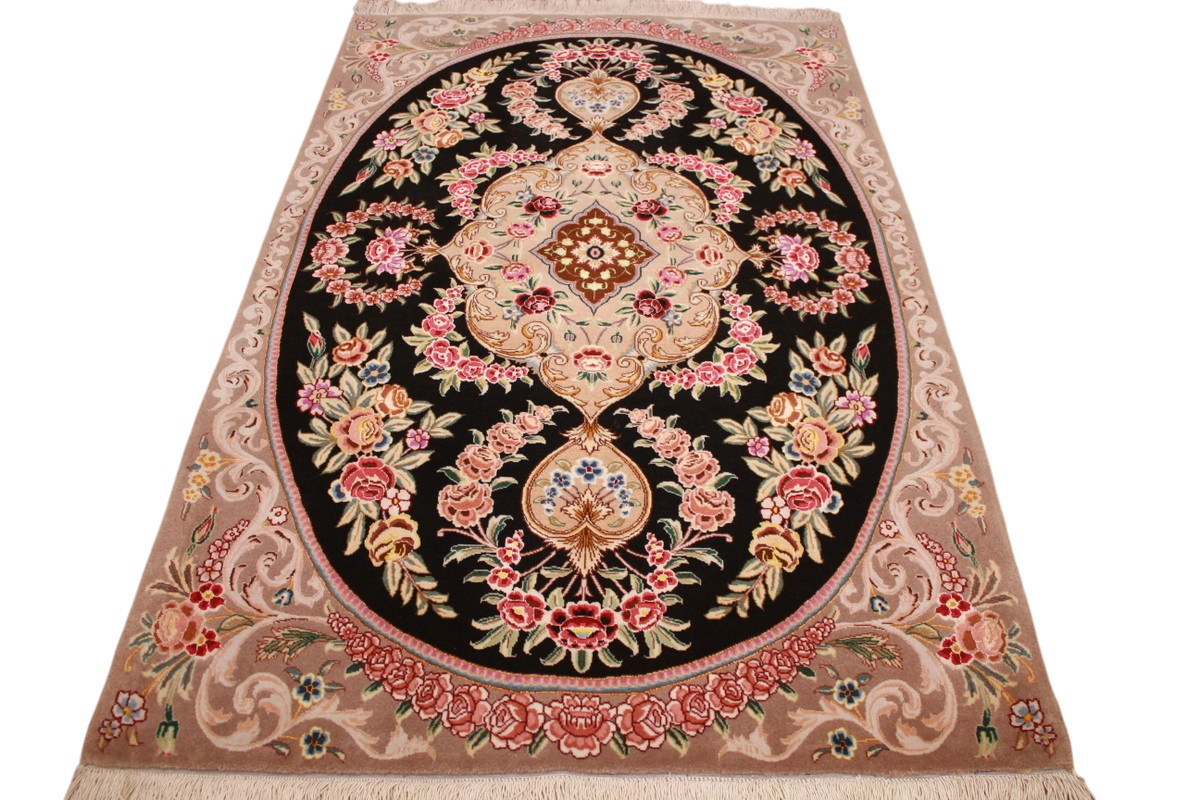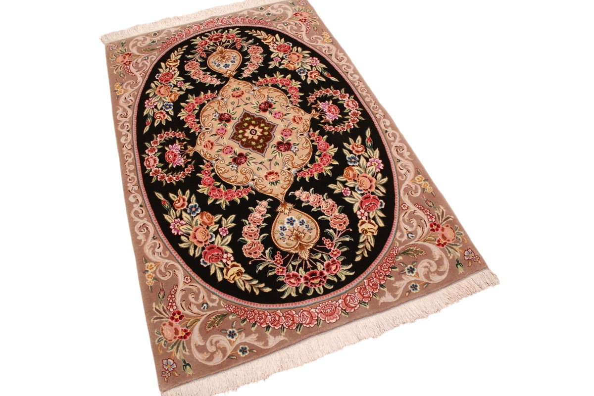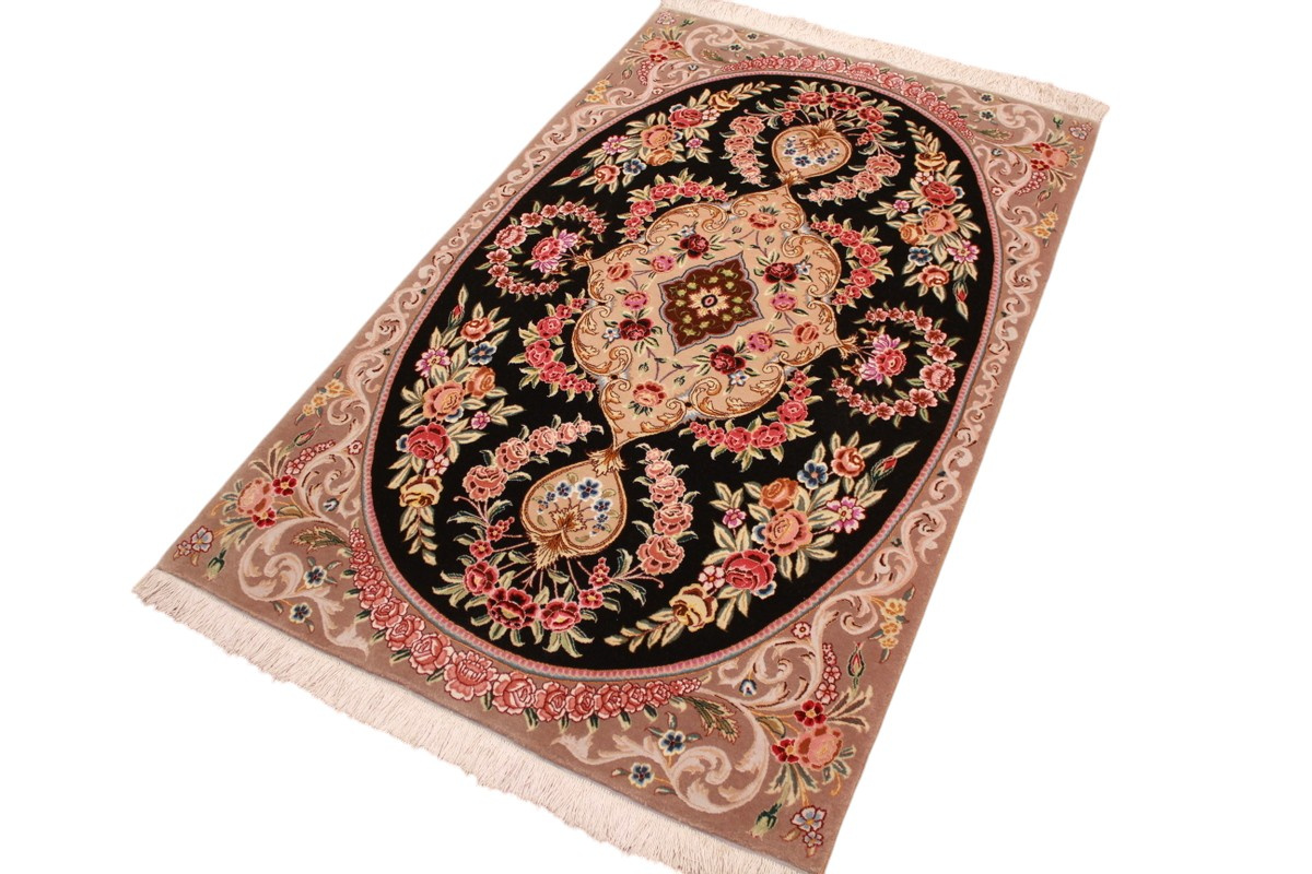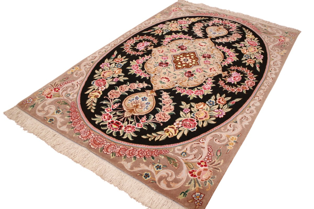 Perser Teppich Isfahan mit Seide 160x100 cm Schwarz