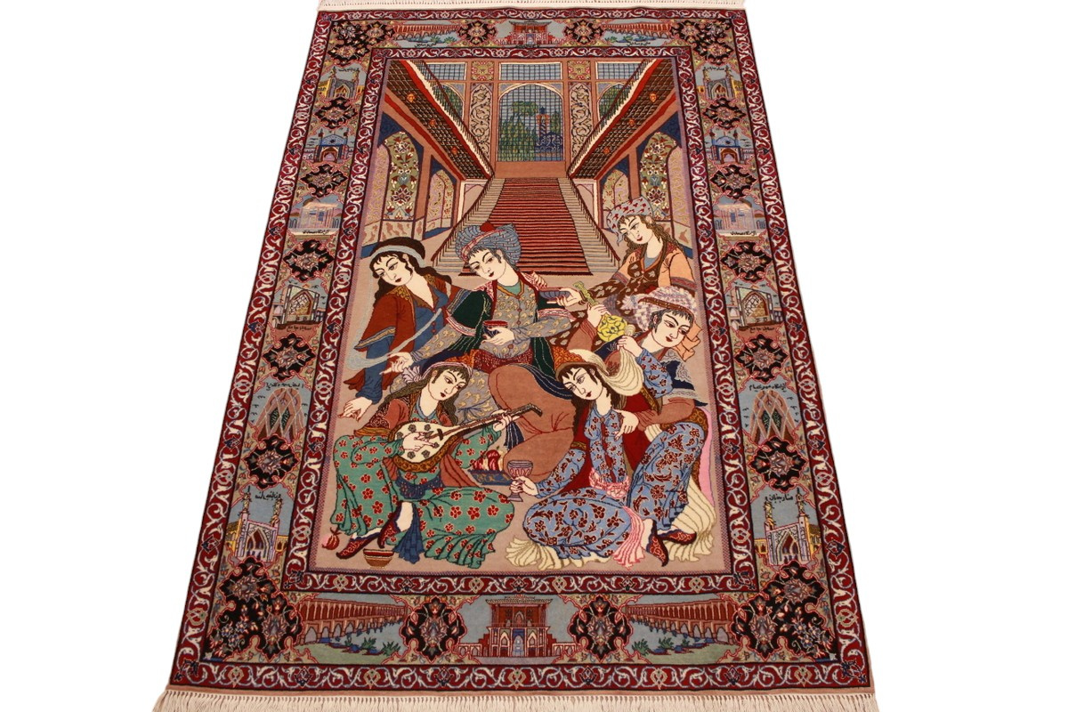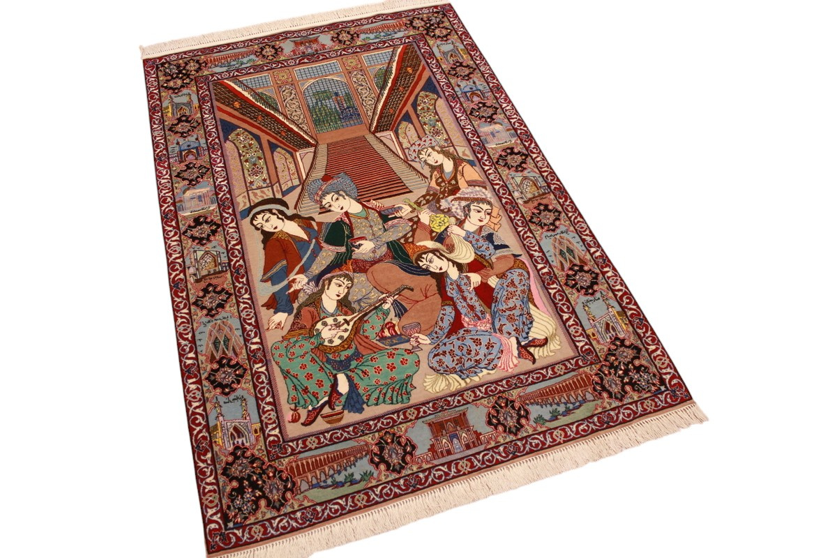 Eine breite Farbpalette findet bei Isfahan-Teppichen Verwendung, und ihre Knüpfer sind Meister im Gestalten harmonischer Kombinationen aus Untergrund und Design, wobei sie mit hellen und dunklen Farben zu variieren wissen.