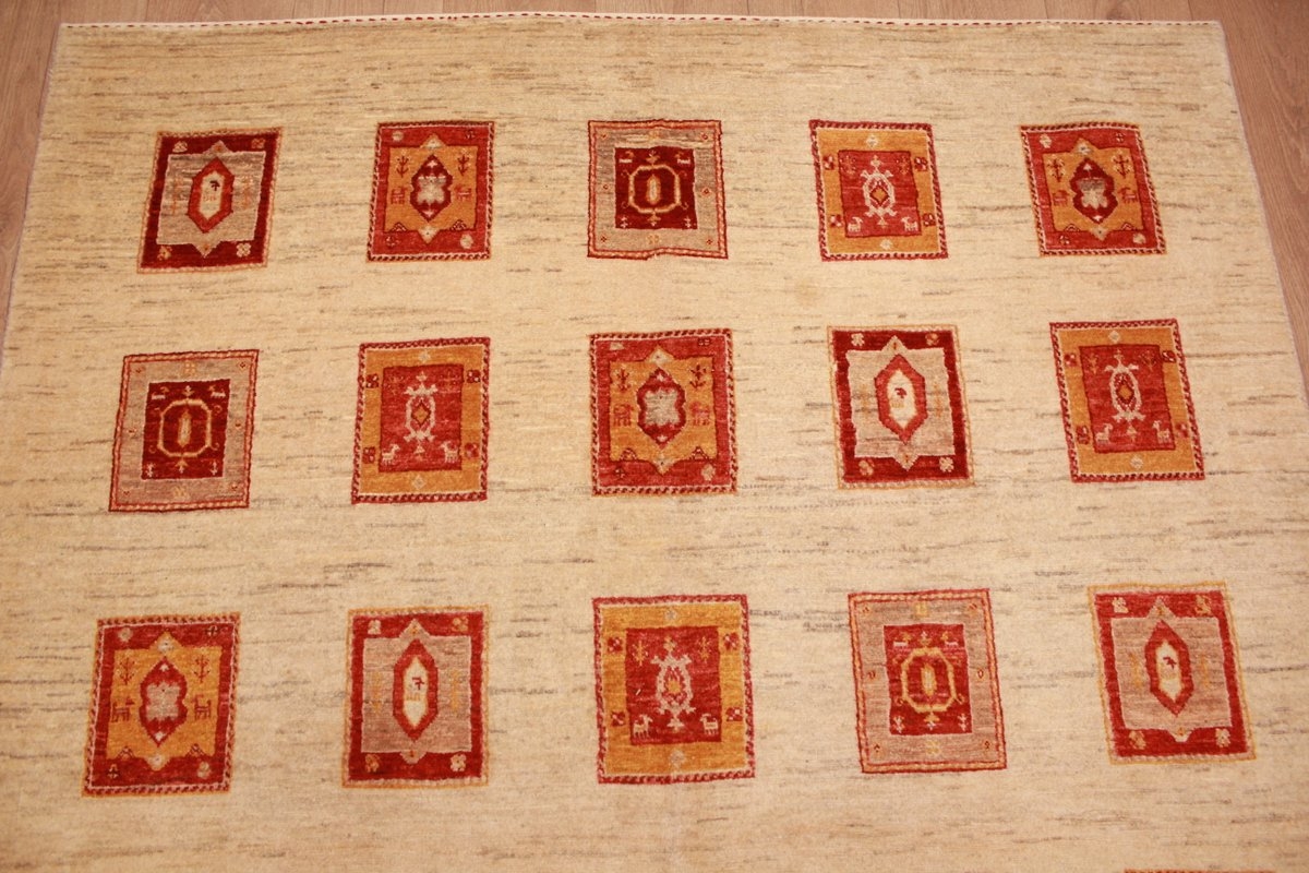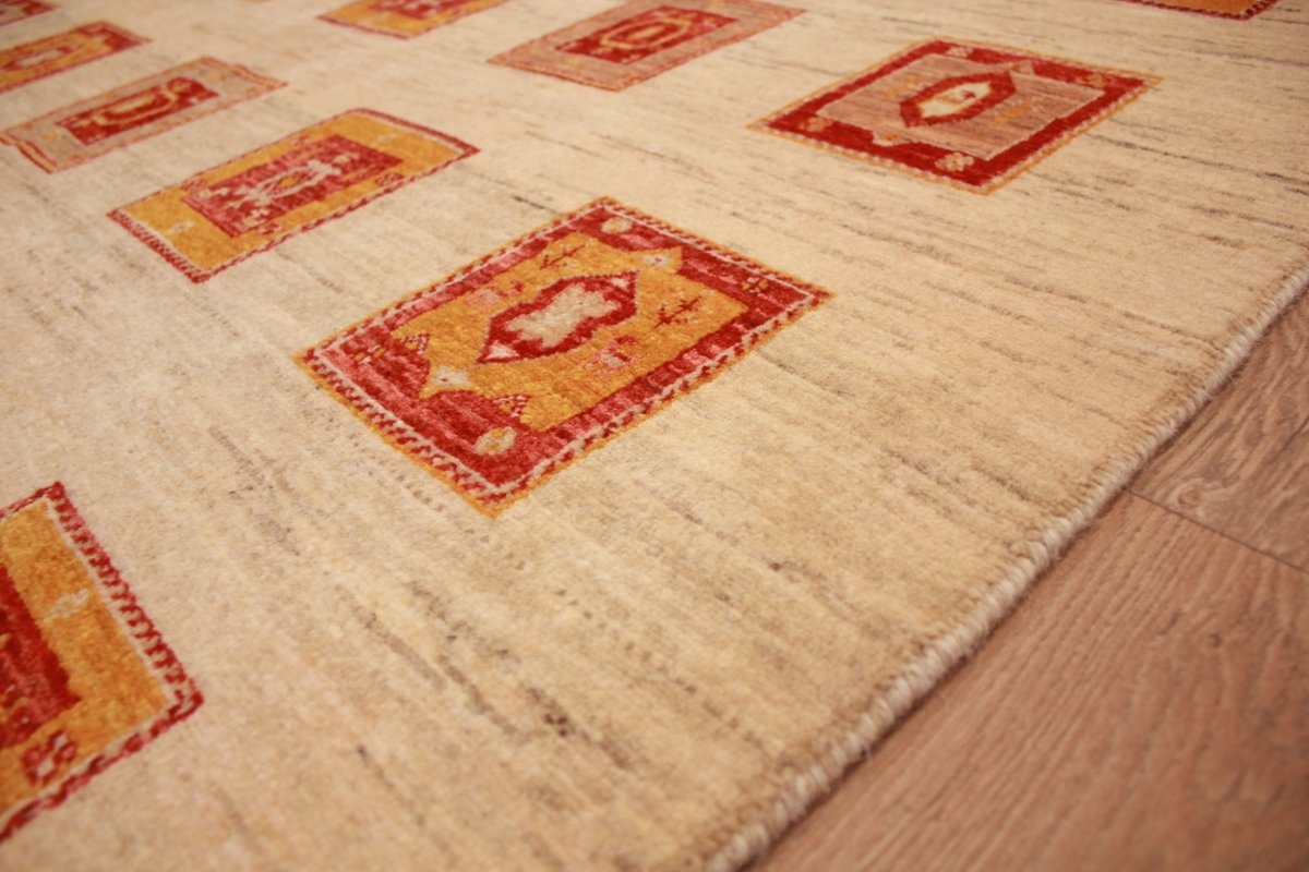Der Loribaft Teppich ist die gehobene Klasse der populären, modernen und hochflorigen Gabbeh Teppiche aus der südwestlichen persischen Bergregion. Der Loribaft Gabbeh Teppich wird vom Nomadenvolk dieser Region handgeknüpft. Dabei wird die beste Schafswolle verwendet und auf pflanzlicher Basis gefärbt. Die Knüpfung von Loribaft Teppichen ist mehr als doppelt so fein wie ursprüngliche Gabbeh Teppiche. Die Muster sind sehr modern und stilvoll, die Farbgestaltung sehr warm und harmonisch. Diese hochwertige Qualität muss nicht teuer sein, hat aber ihren Preis!