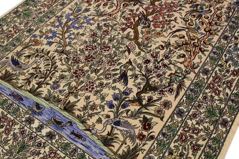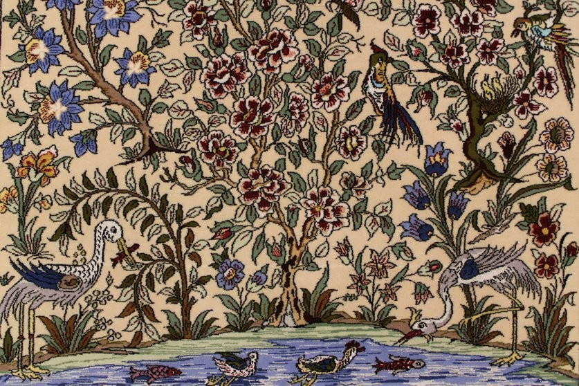Eine breite Farbpalette findet bei Isfahan-Teppichen Verwendung, und ihre Knüpfer sind Meister im Gestalten harmonischer Kombinationen aus Untergrund und Design, wobei sie mit hellen und dunklen Farben zu variieren wissen.