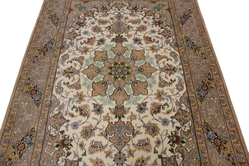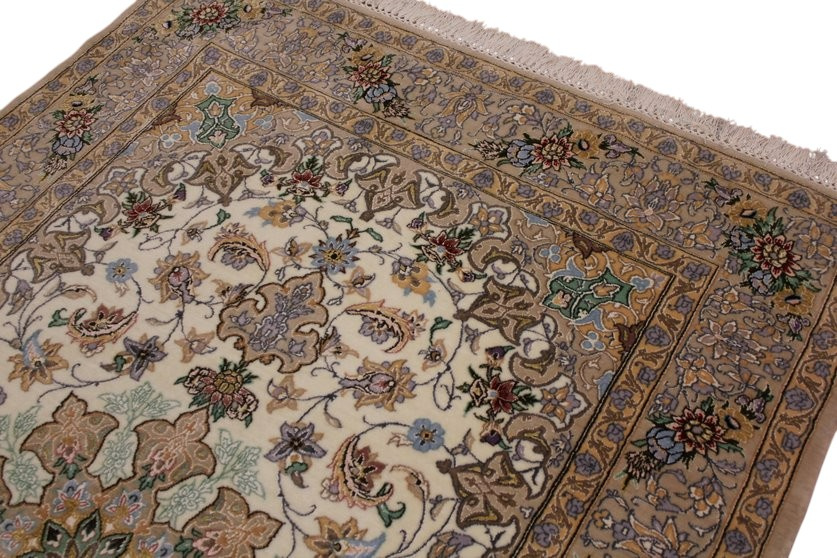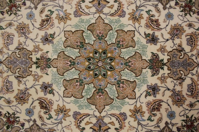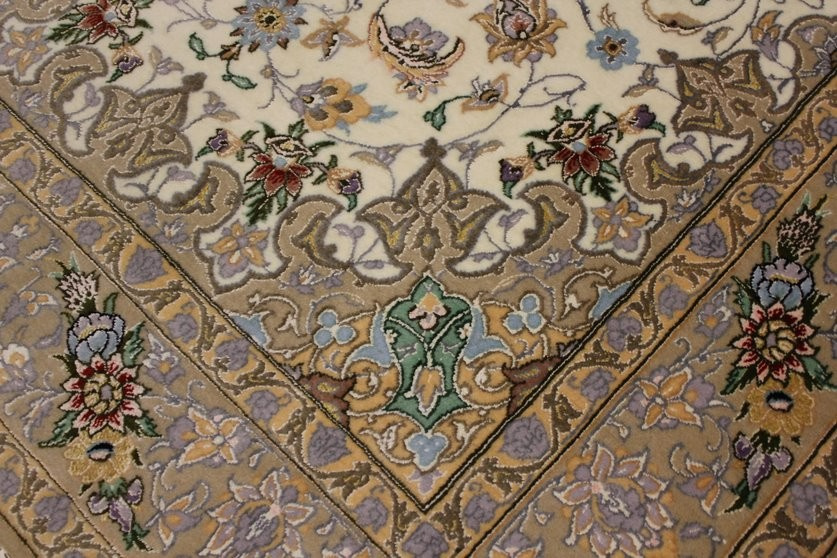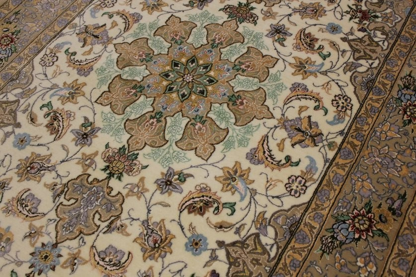 Eine breite Farbpalette findet bei Isfahan-Teppichen Verwendung, und ihre Knüpfer sind Meister im Gestalten harmonischer Kombinationen aus Untergrund und Design, wobei sie mit hellen und dunklen Farben zu variieren wissen.