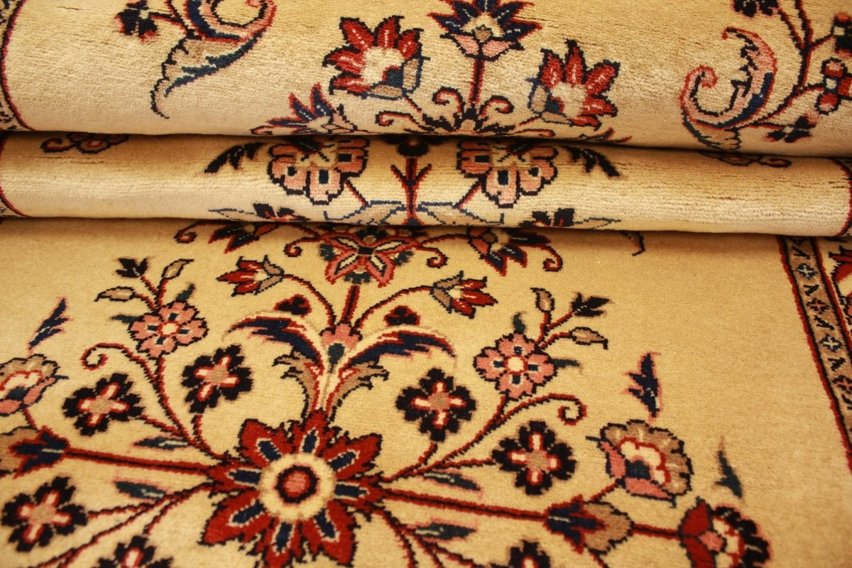 Saroug zählt qualitativ zu den bedeutendsten Knüpforten des Orients. Die Muster sind sehr originär und traditionsreich. Farbenfreudige Blatt- und Blumenmotive machen das Muster der Saroug Teppiche aus. Die exzellente Wollqualität sowie die hohe Knüpfdichte führten zur hohen Bekannt- und Beliebtheit von Saroug Teppichen weltweit. Antike Sarougs werden heute hoch gehandelt und unterstreichen die Hochwertigkeit und Qualität von Saroug Teppichen.