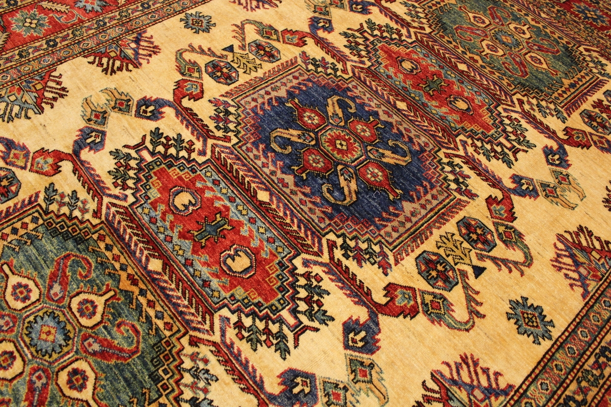 Die Motive der Kazak Teppiche sind häufig geometrisch. Ein Kazak teppich hat schöne und harmonische Farben und passt in vielen Einrichtungen.