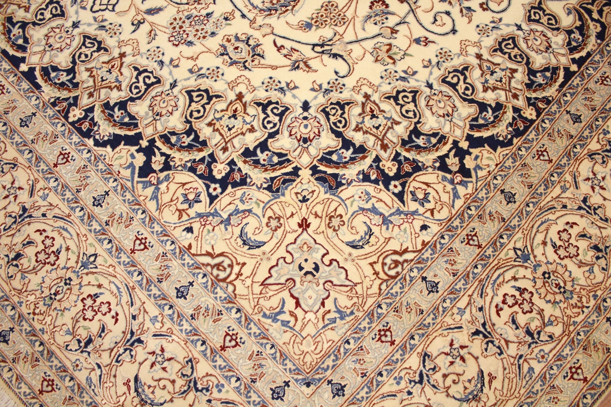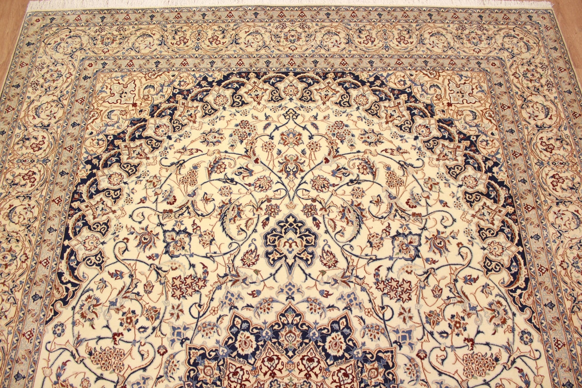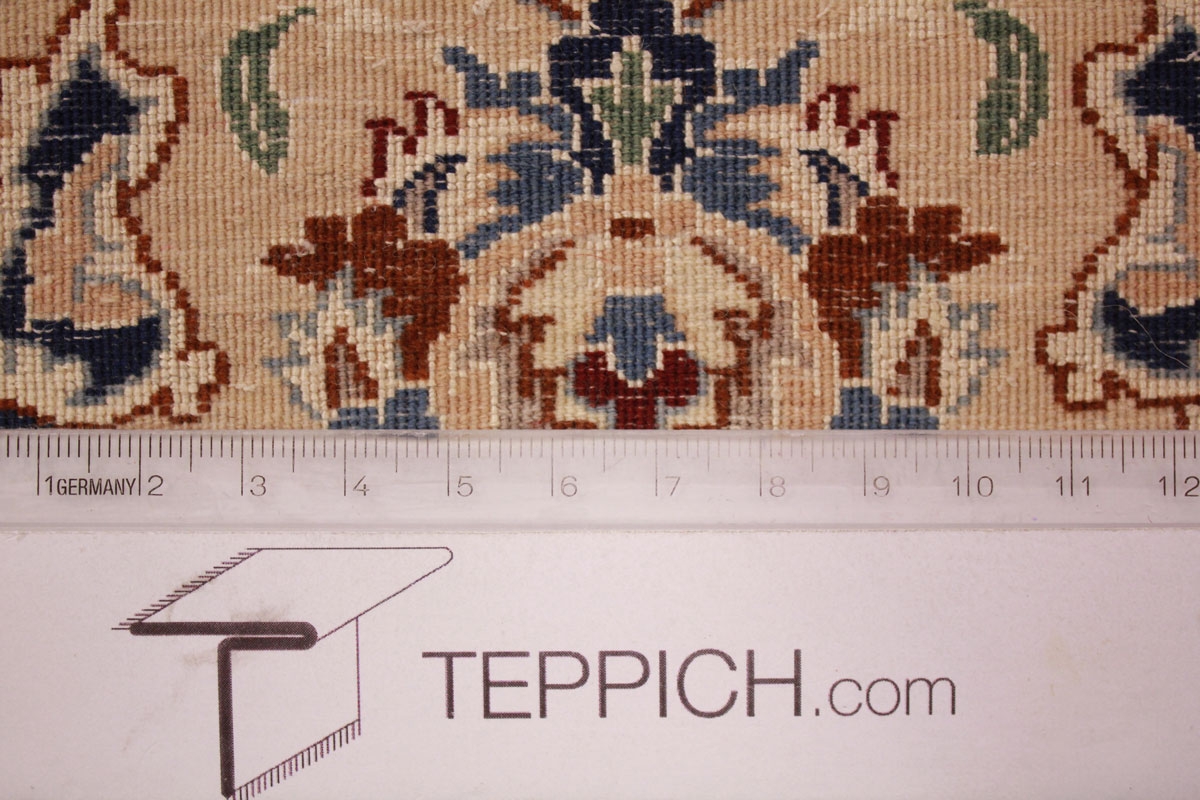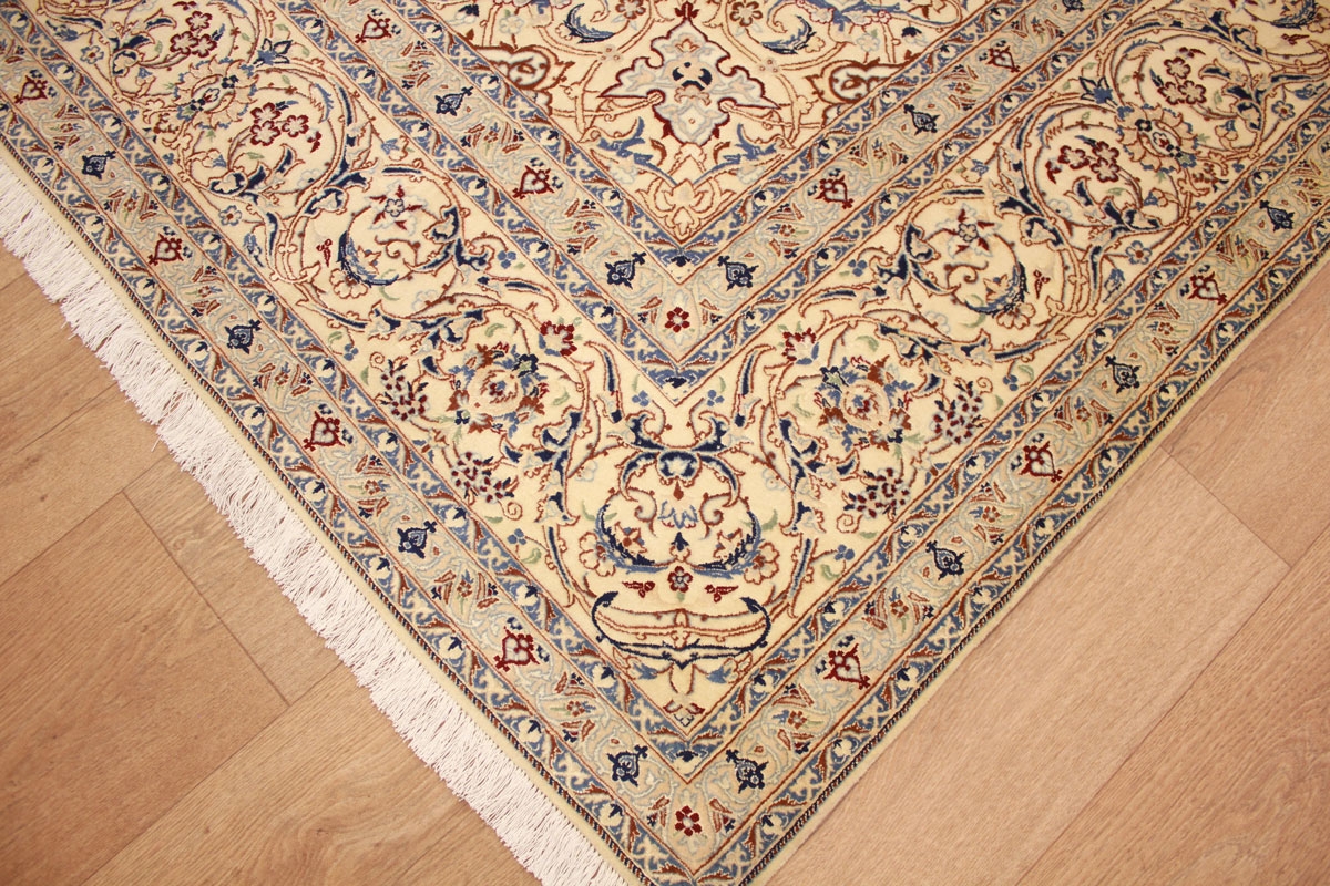 Perser Teppich Nain 4 La mit Seide 318x211 cm Beige