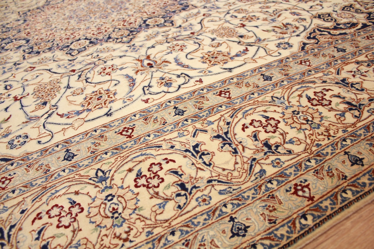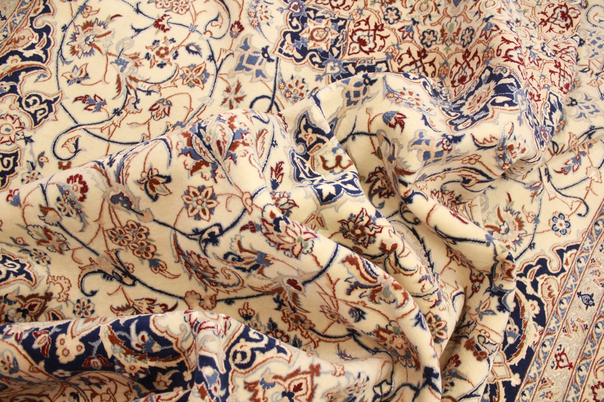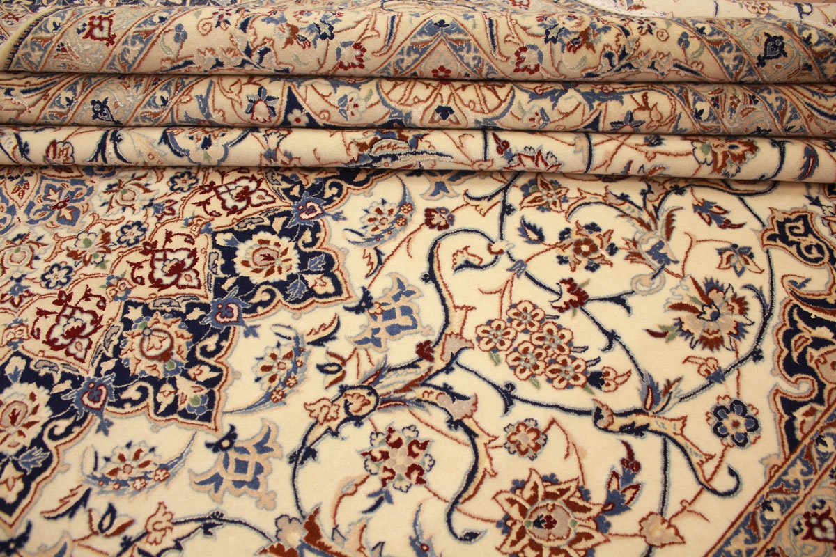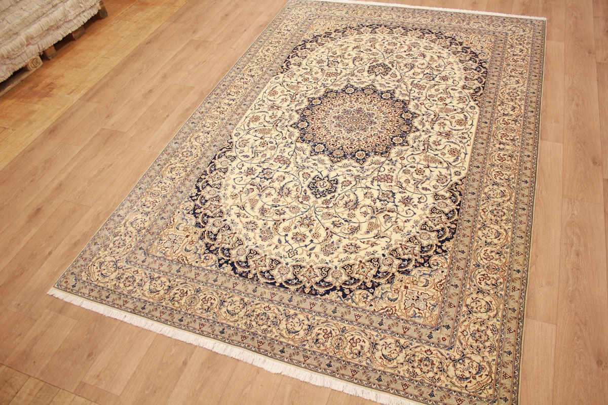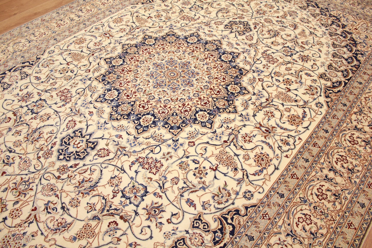Perser Teppich Nain 4 La mit Seide 318x211 cm Beige
