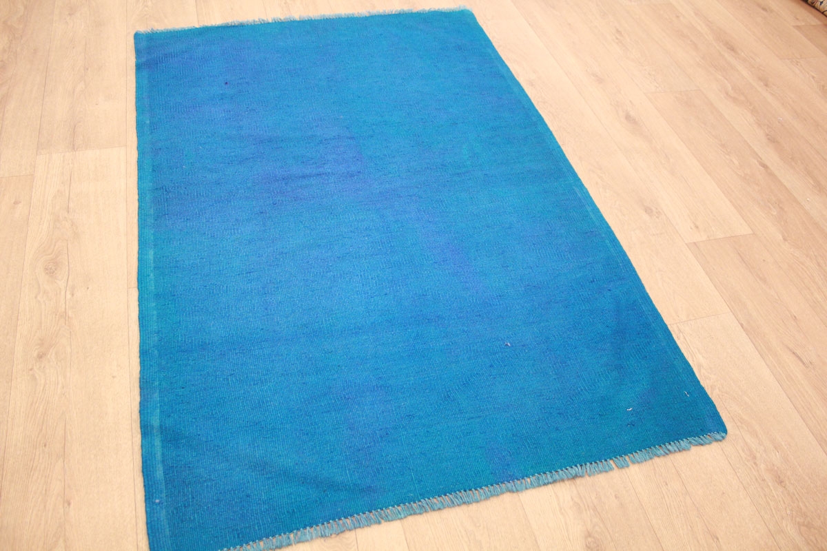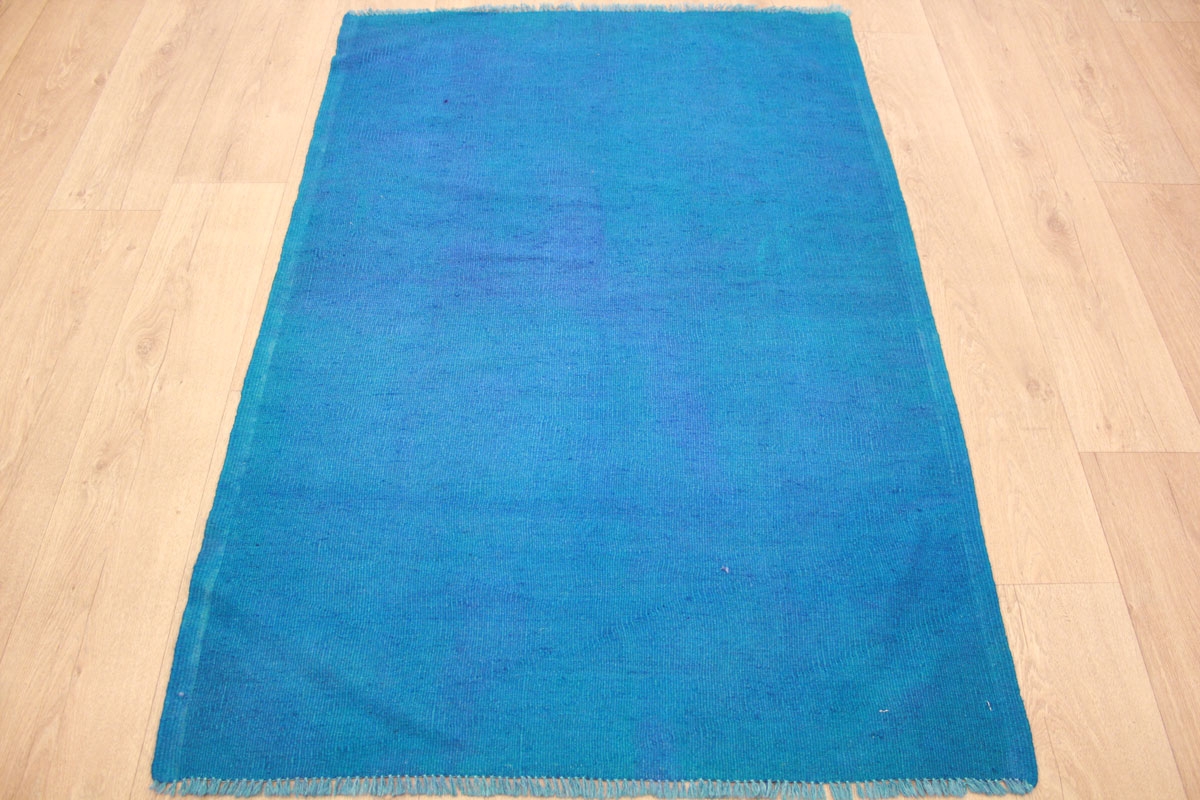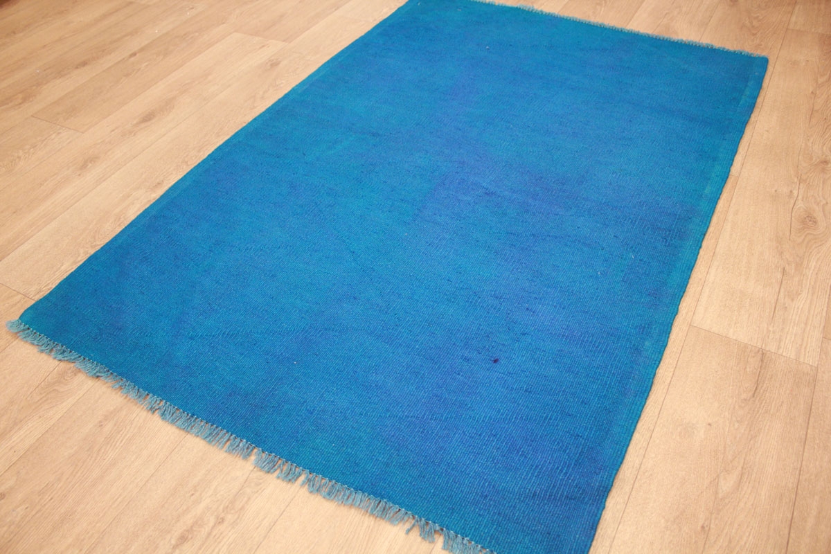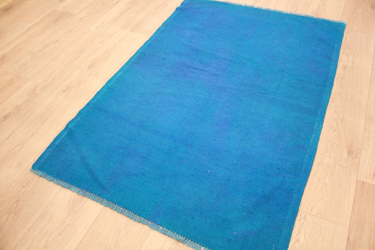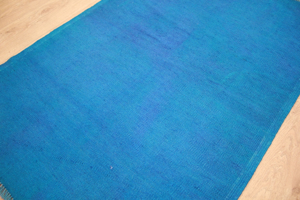 Kelim Vintage overdyed aus reiner Wolle 148x100 cm Blau