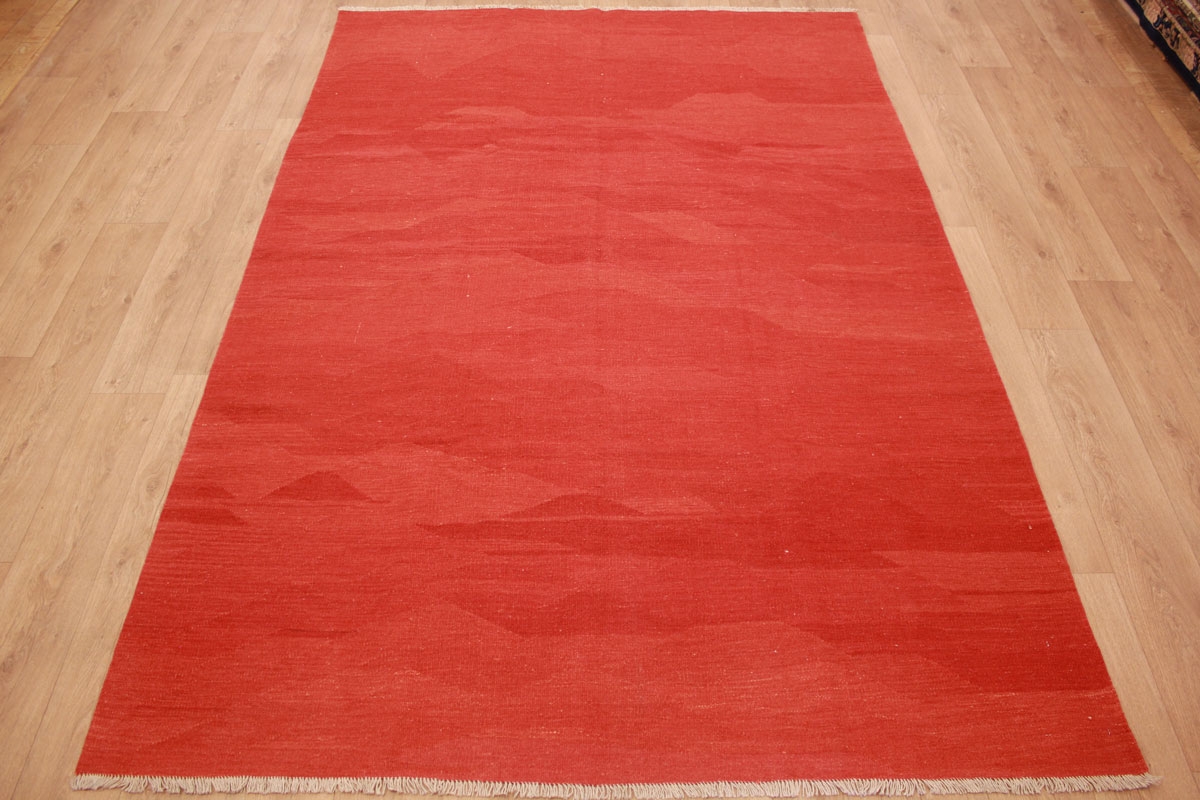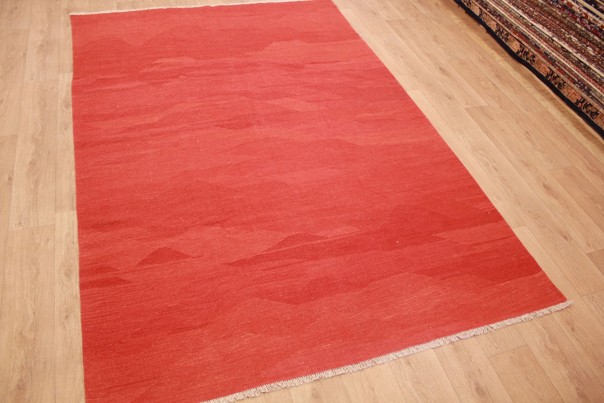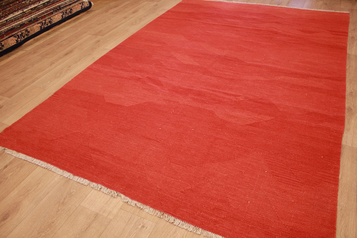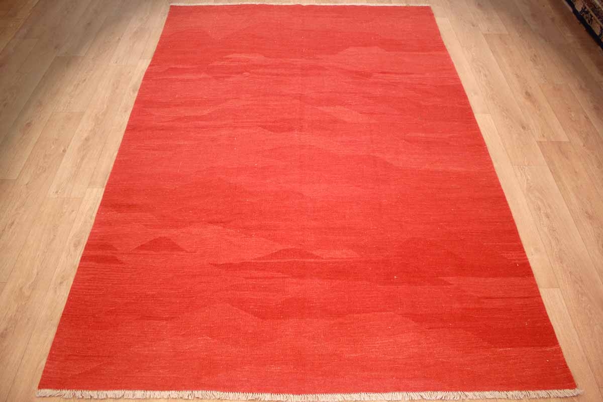 Kelim Vintage Teppich moderner Perserteppich 301x200 cm Rot