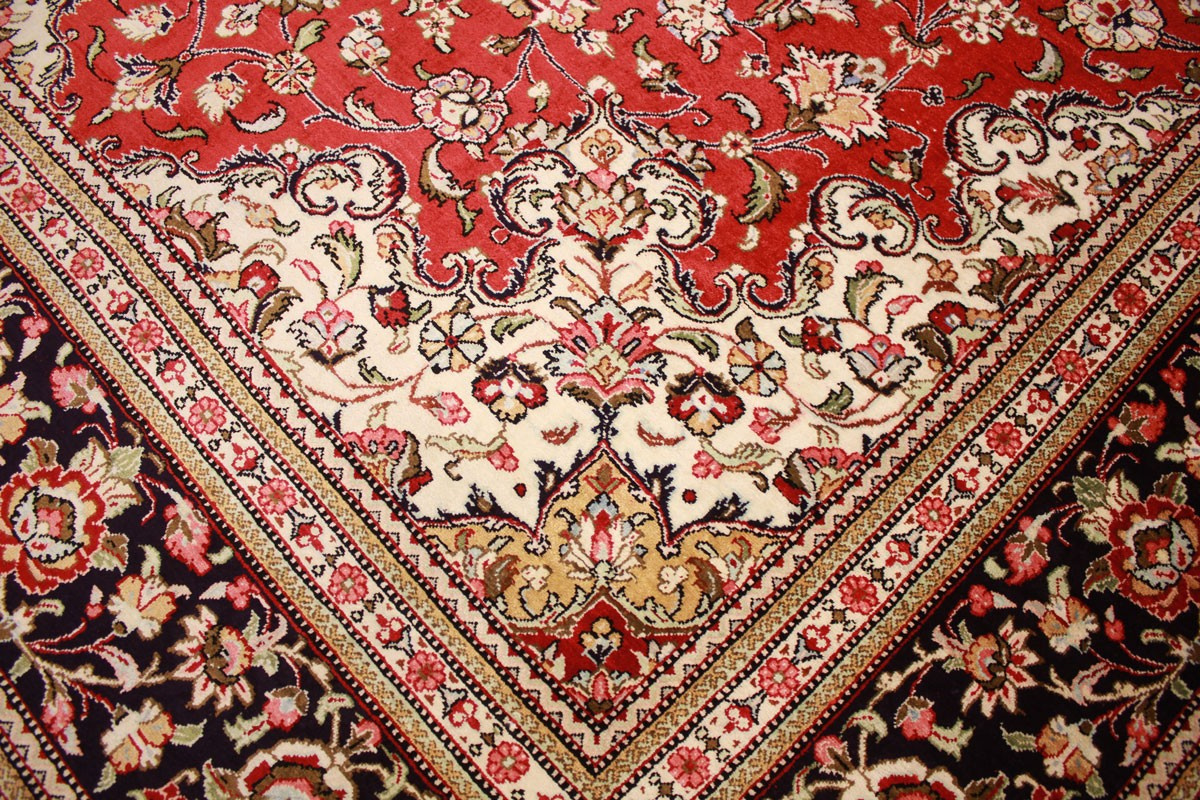 Trotz der vielseitigen Farbpalette hat der Gom-Teppich niemals grelle Farkontraste, sondern achtet auf eine harmonische Farbabstimmung. Bemerkenswert ist auch die äußerst exakte Knüpfung, die fast an Maschinenarbeit erinnert.