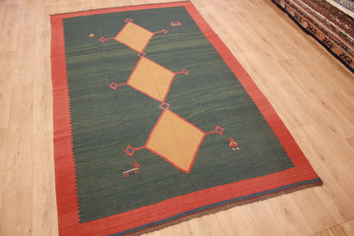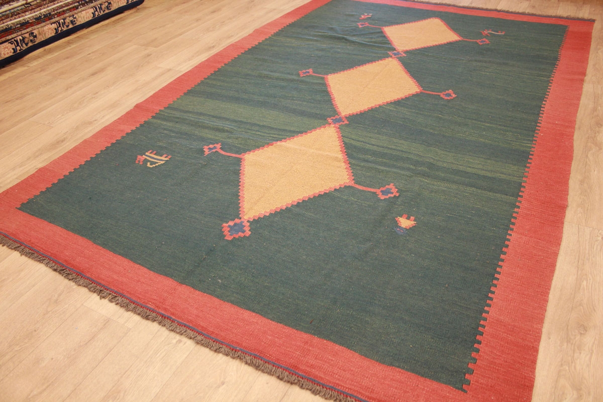 Perserteppich Kelim Wollteppich 313x195 cm Grün