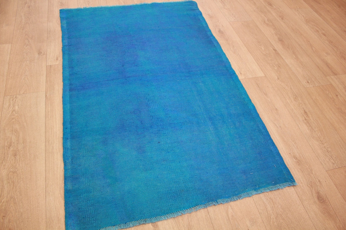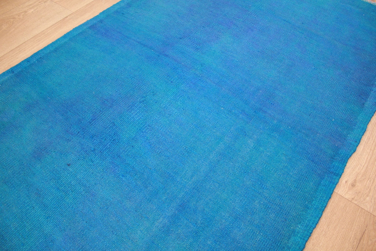 Kelim Vintage overdyed aus reiner Wolle 148x100 cm Blau