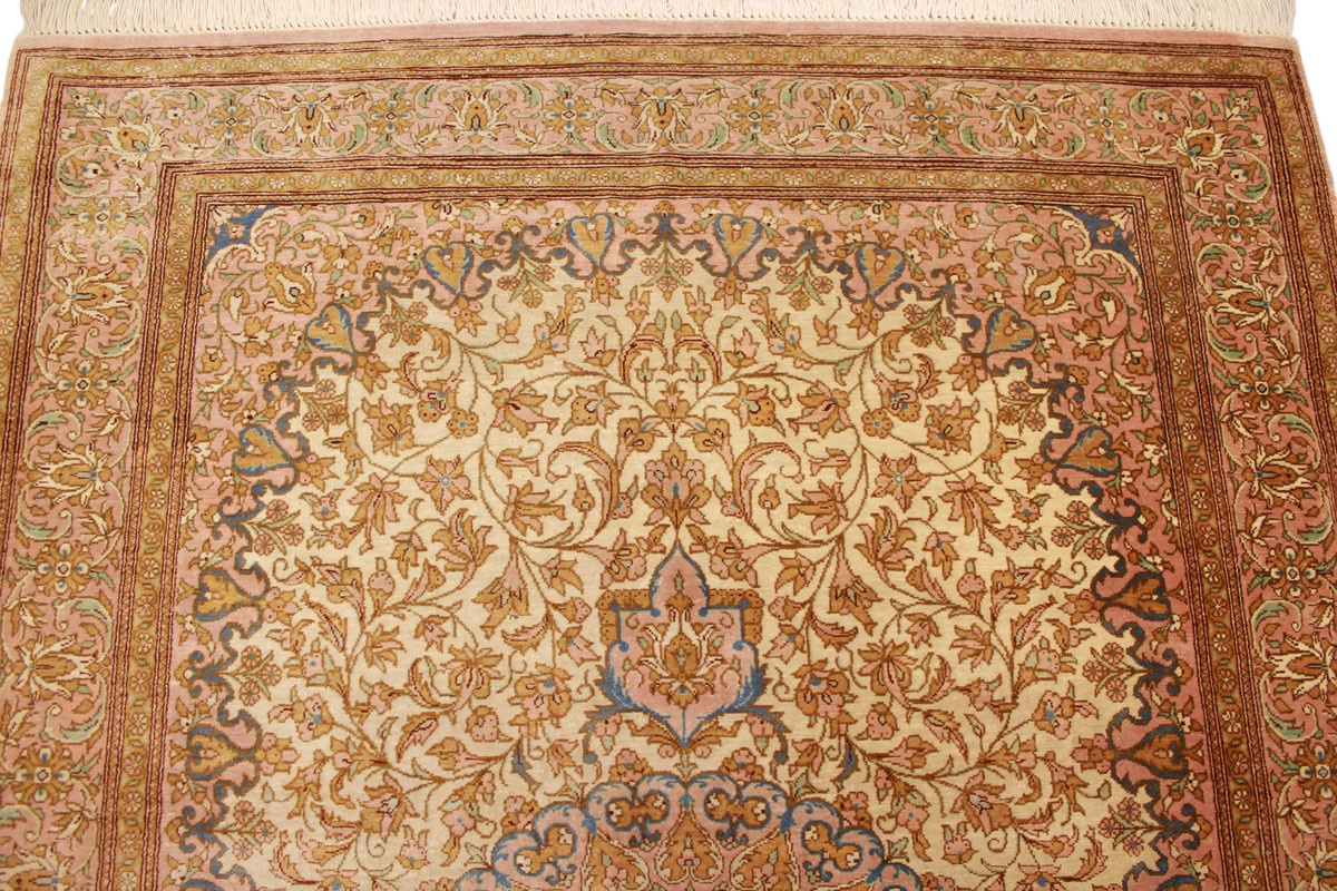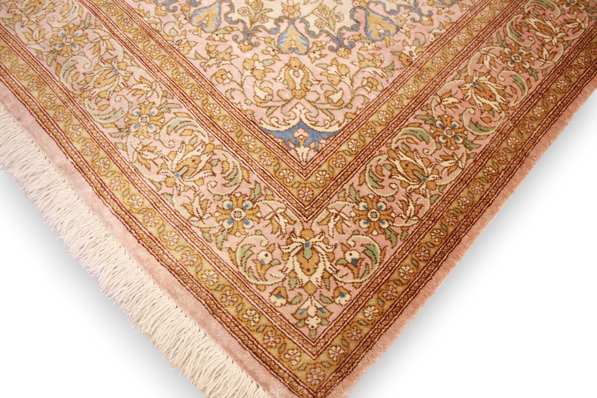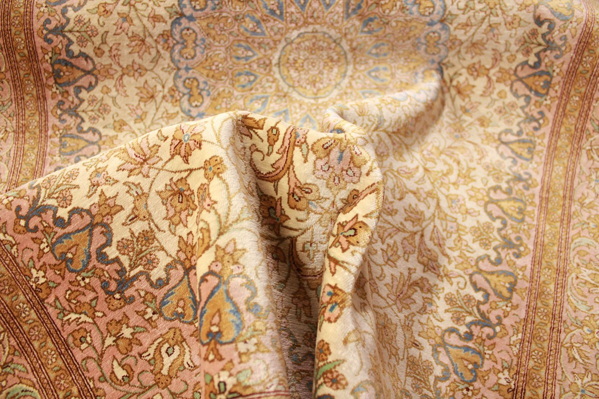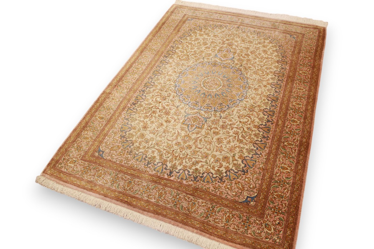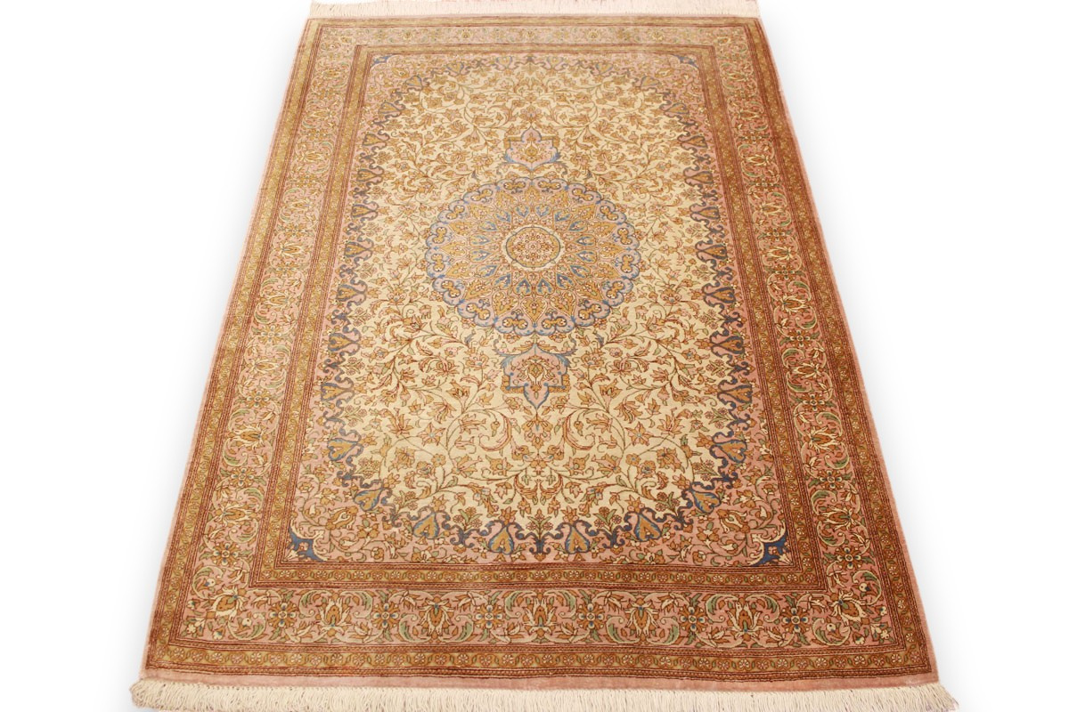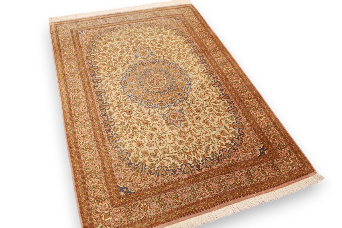 Seiden Teppich Ghom Perserteppich 116x75 cm Beige