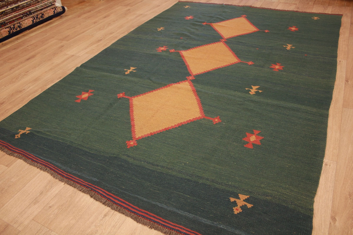 Perserteppich Kelim Wollteppich 295x197 cm Grün