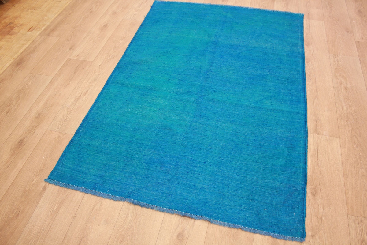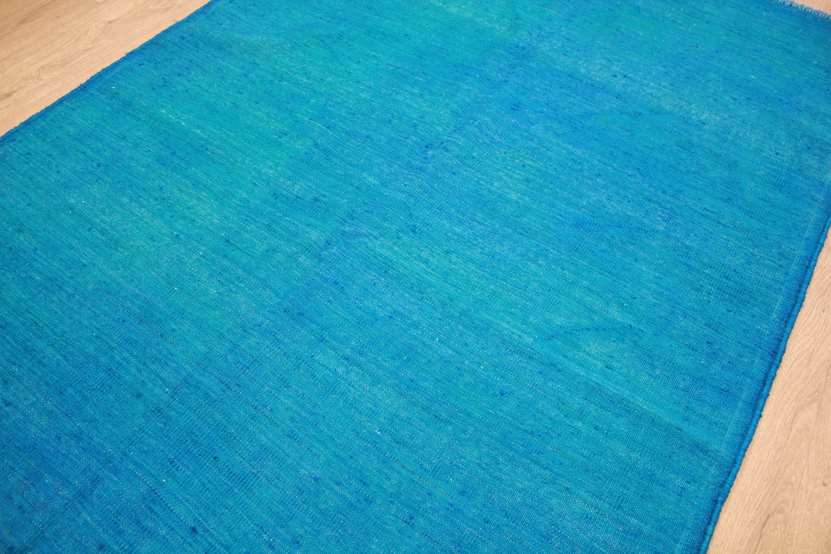 Kelim Vintage overdyed reiner Wolle 183x123 cm Blau