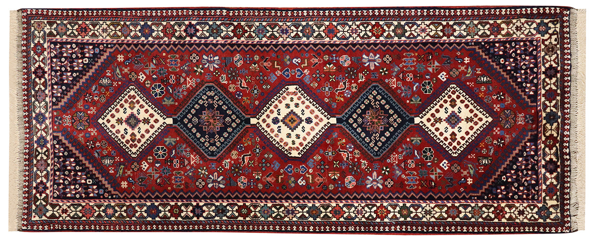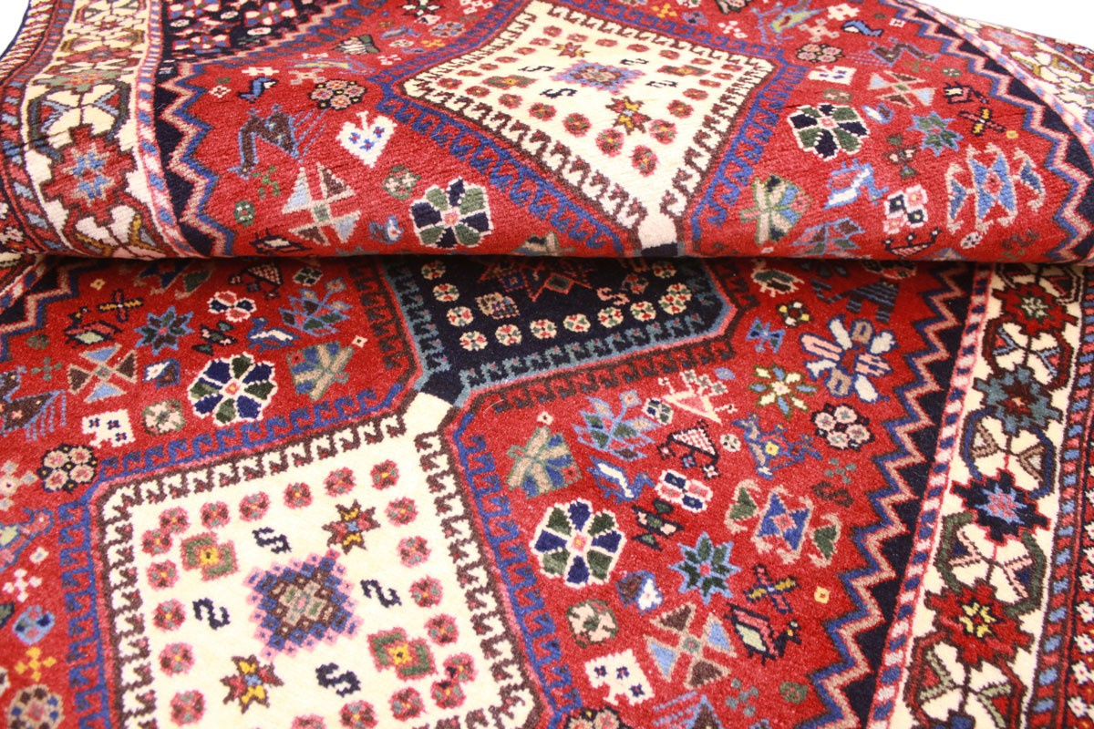 Yalameh Teppiche gehören zu dem Knüpfgebiet Isfahan. Sie werden hauptsächlich von Gashgai-Nomaden geknüpft! Die Gashgai-Nomaden sind wahrscheinlich seit den 14. Jahrhundert in dem südlichen Gebiet von Isfahan angesiedelt. Yalameh Teppiche sind sehr farbenfroh und meistens bunt.