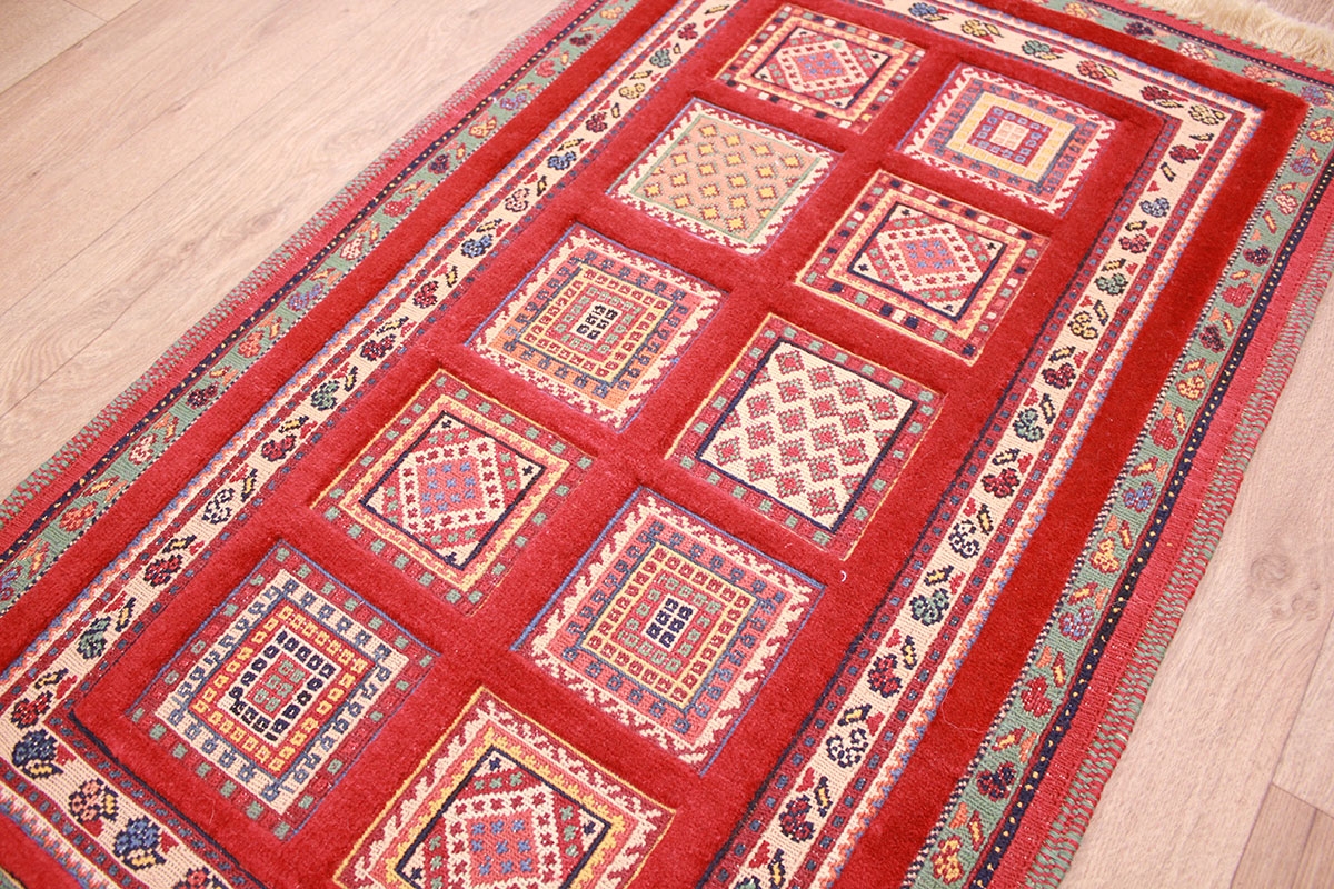 Nomadenteppich Nimbaft Wollteppich 97x60 cm Rot