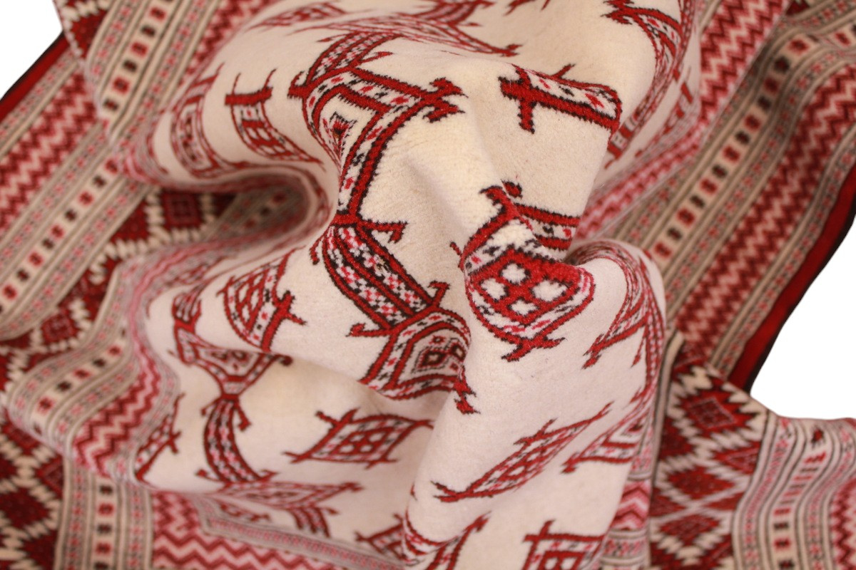 Turkmenische Teppiche werden in und um Turkmenistan geknüpft. Für die Herstellung von turkmenishe Teppiche verwendet man Wolle hoher Qualität und die Fransen sind aus Baumwolle oder Seide. Rot ist die dominierende Farbe bei diesen Teppichen.