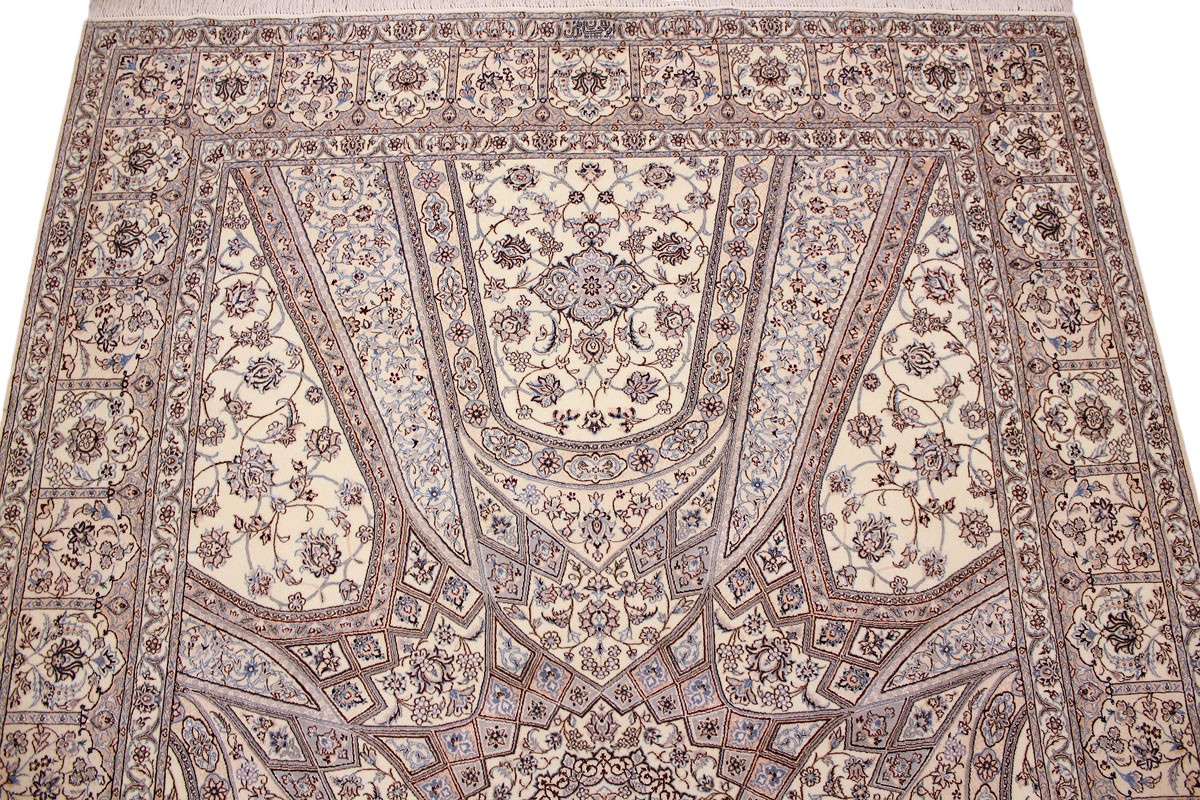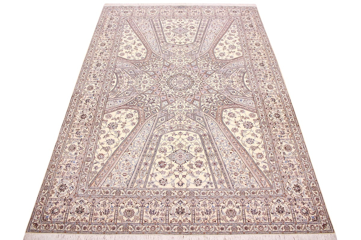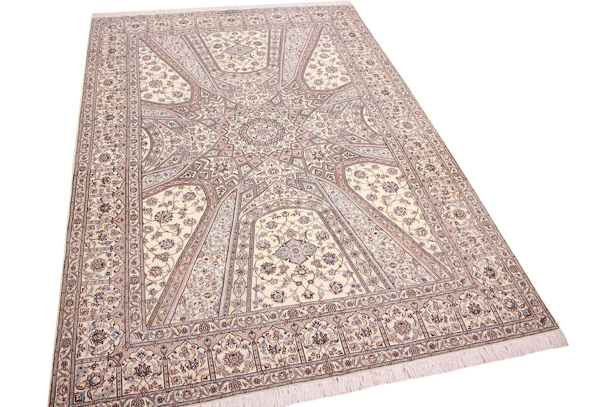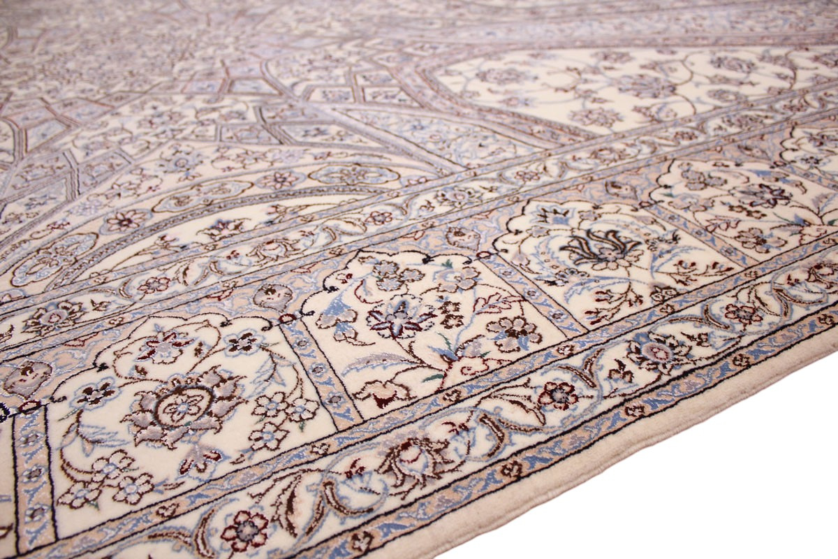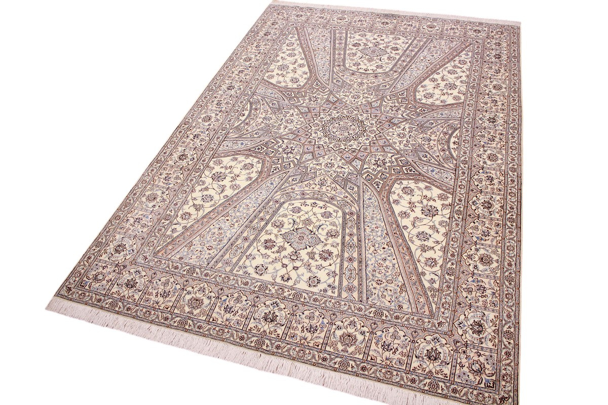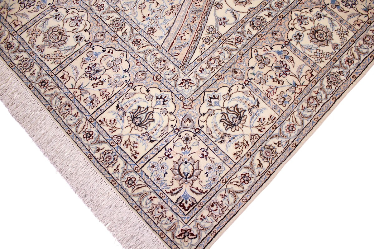 Exklusiv Perser Teppich Nain 6 La mit Seide 303x206 cm Beige