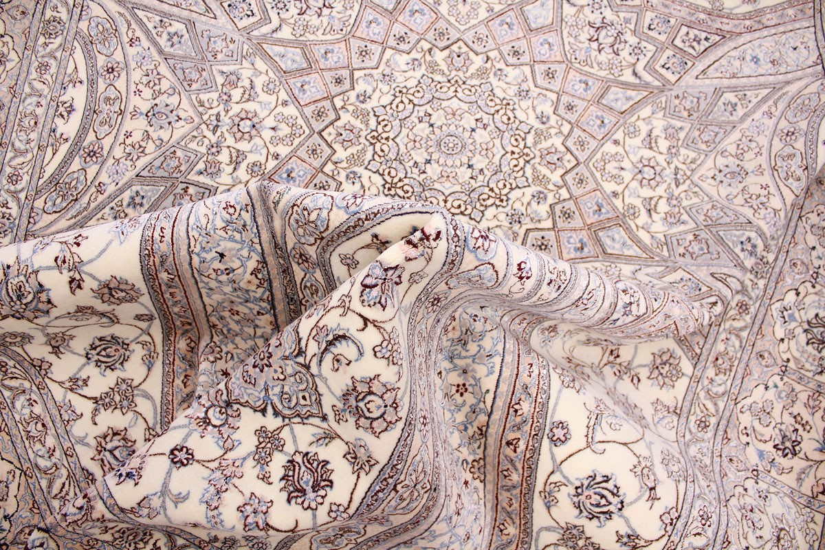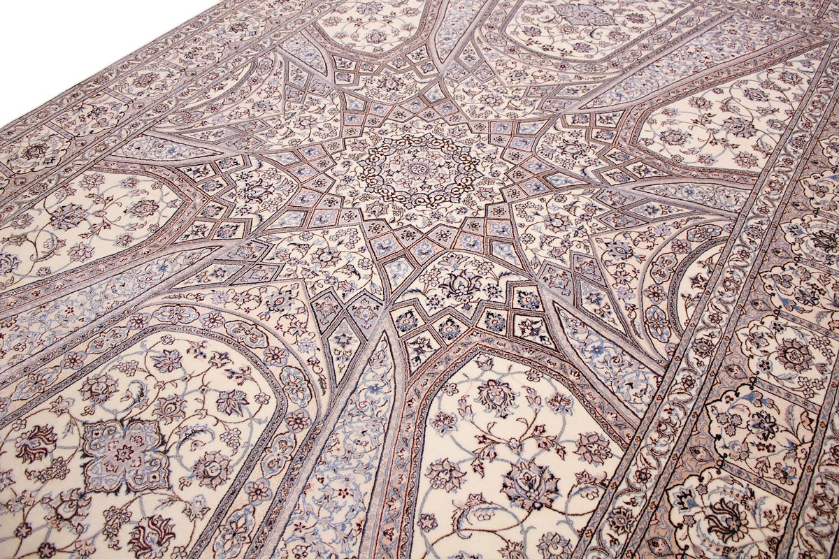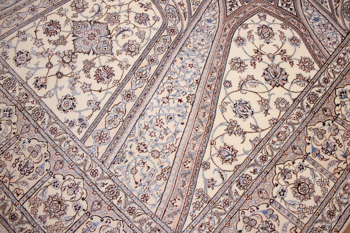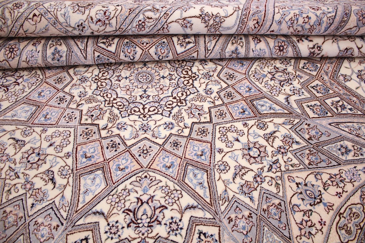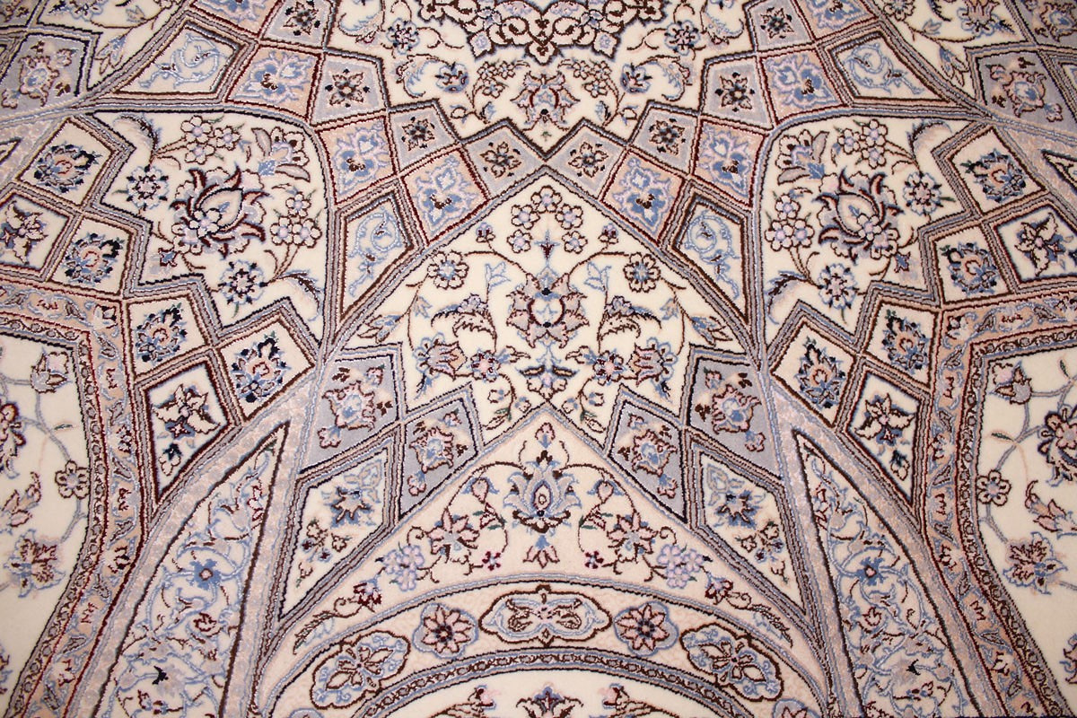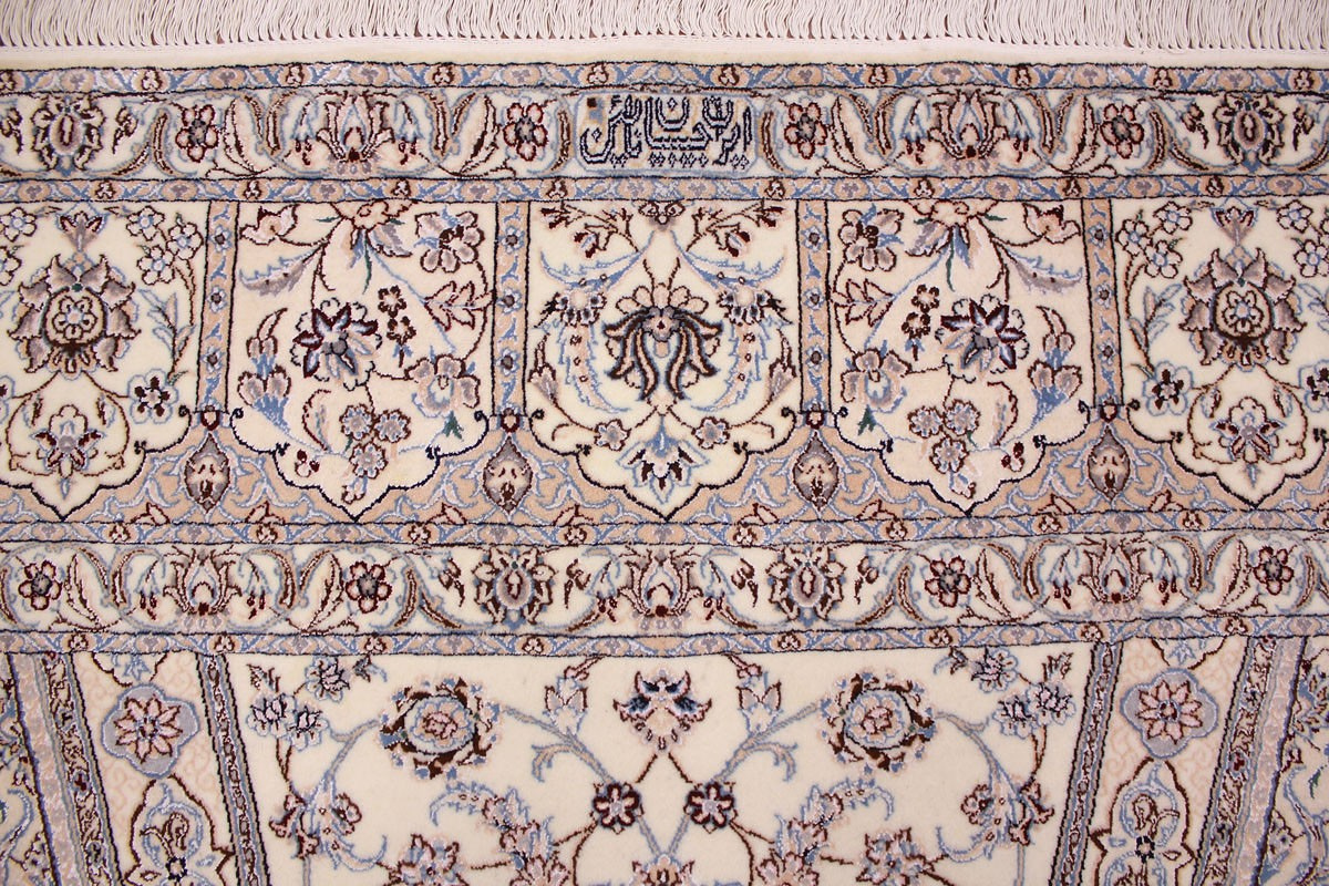 Exklusiv Perser Teppich Nain 6 La mit Seide 303x206 cm Beige