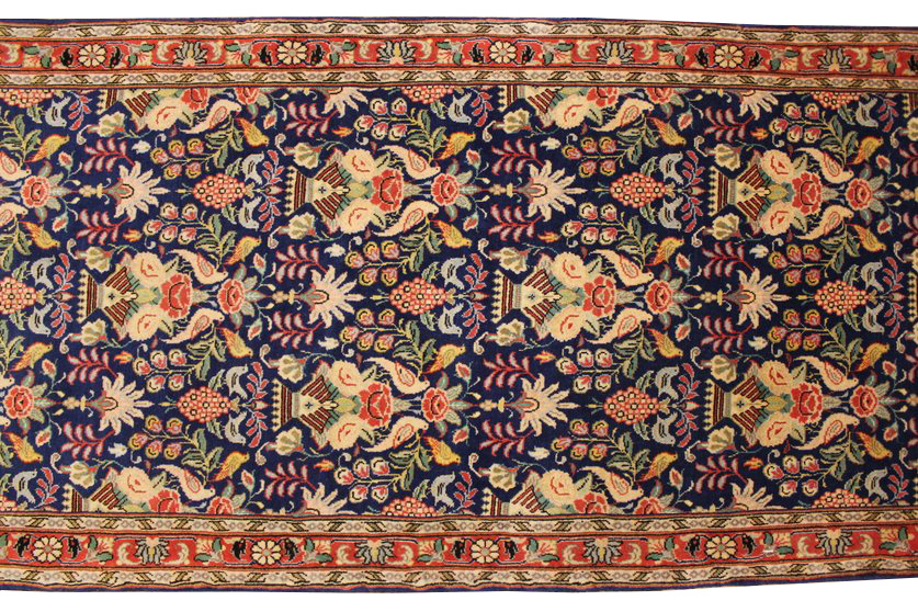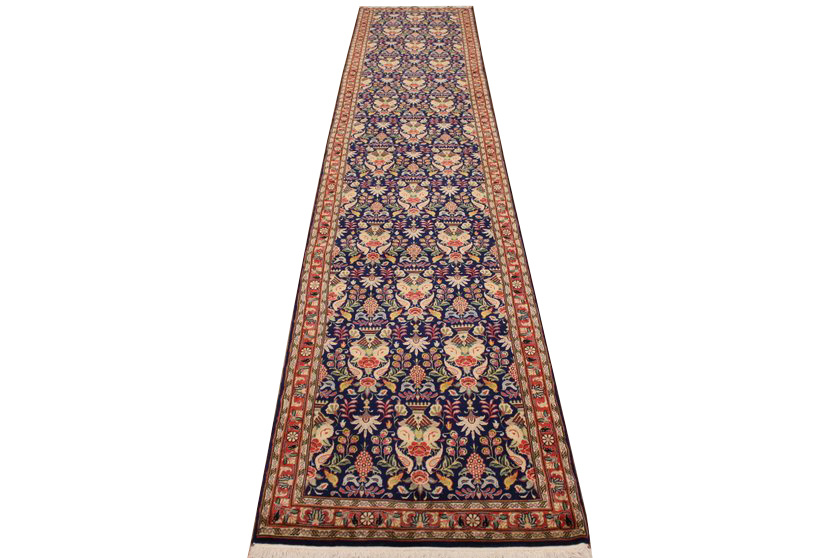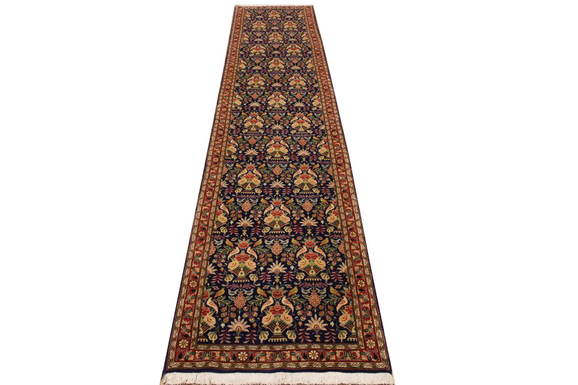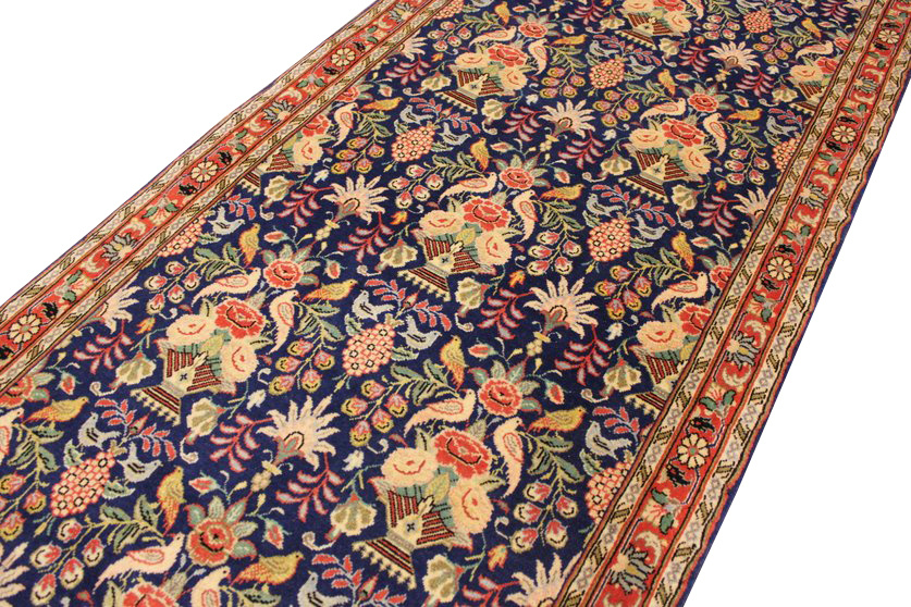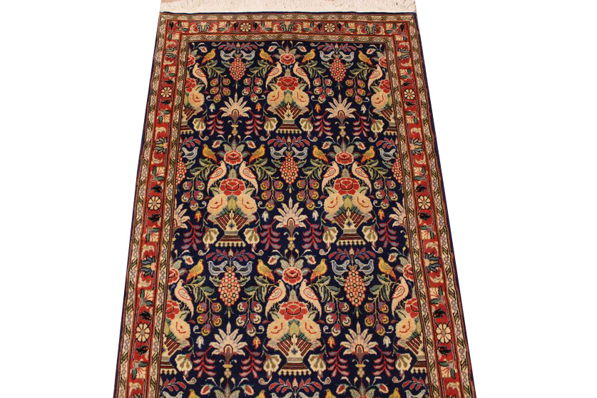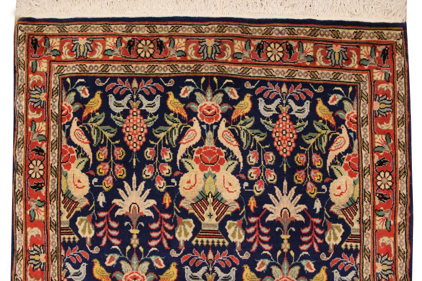 Waraminteppiche sind einer der qualitativ feinsten Teppiche überhaupt. Diese haben etwa 500.000 Knoten per Quadratmeter und haben ihr eigenes spezielles Design mit sehr vielen Vögelabbildungen und Paradiesmuster.