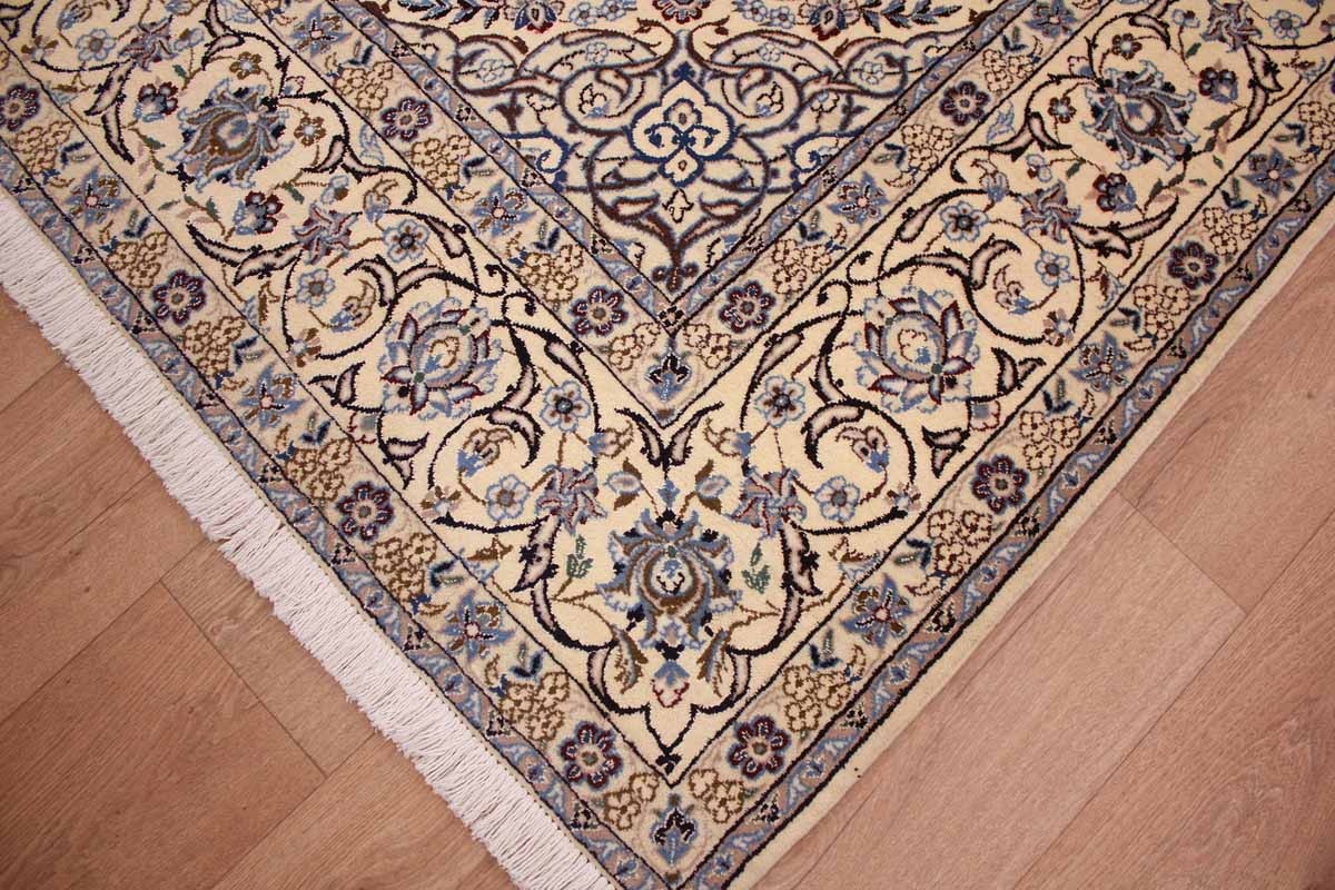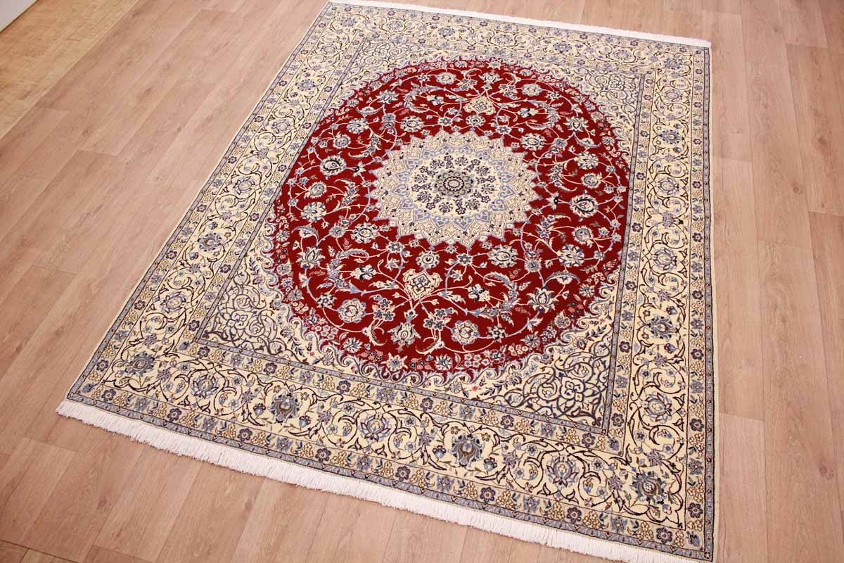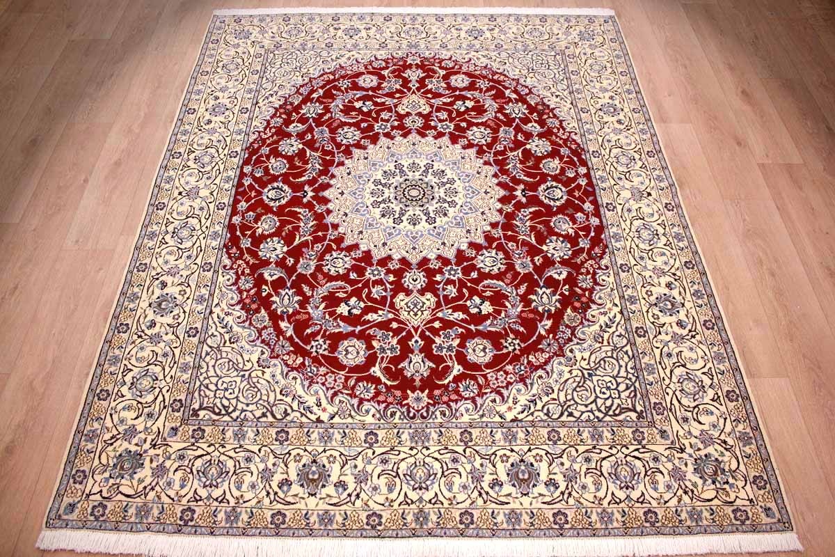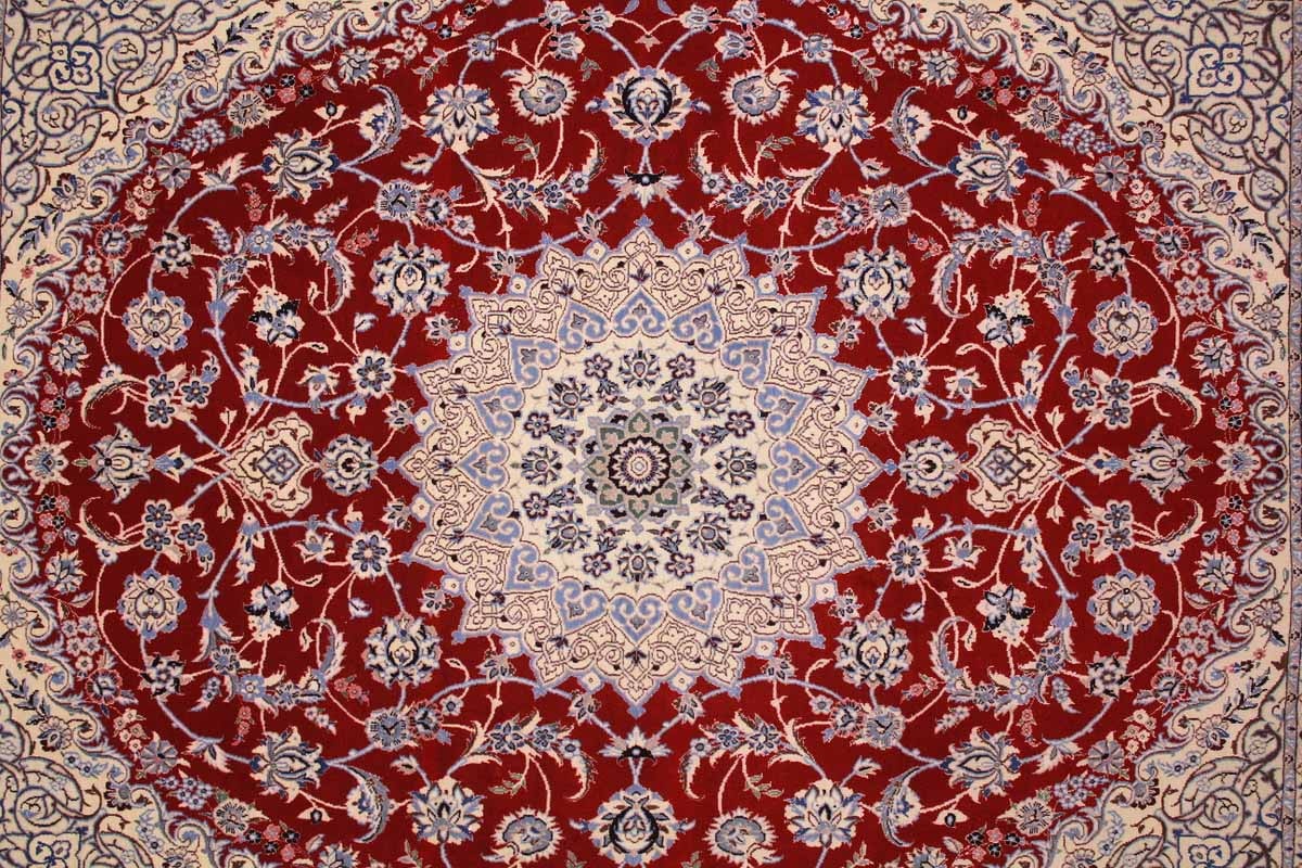 Nain Teppiche sind entweder durchgemustert oder mit Medallion. Typische Farbkombinationen von Nain Teppichen sind Blau-Beige oder Rot-Beige und selten Grün-Beige.