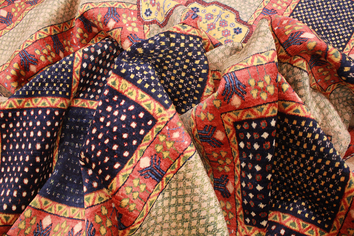 Die Ghashghai´s sind für ihre ausgezeichneten Stapelteppiche und andere gesponnene Wolleprodukte berühmt. Die Wolle, die in den Bergen und in den Senken nahe Shiraz produziert wird, ist außergewöhnlich weich und schön und nimmt eine tiefere Farbe als Wollen von anderen Teilen von Persien.