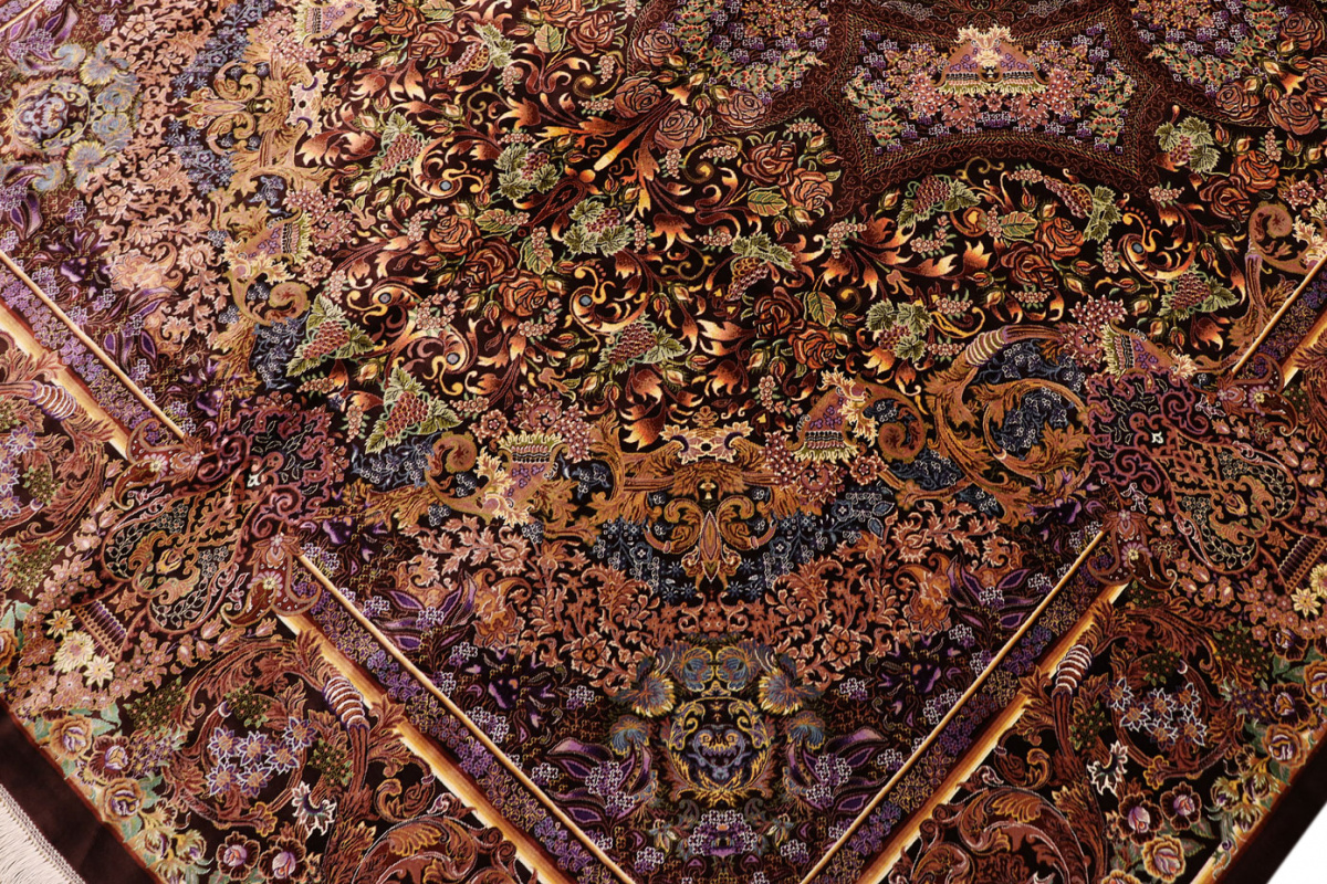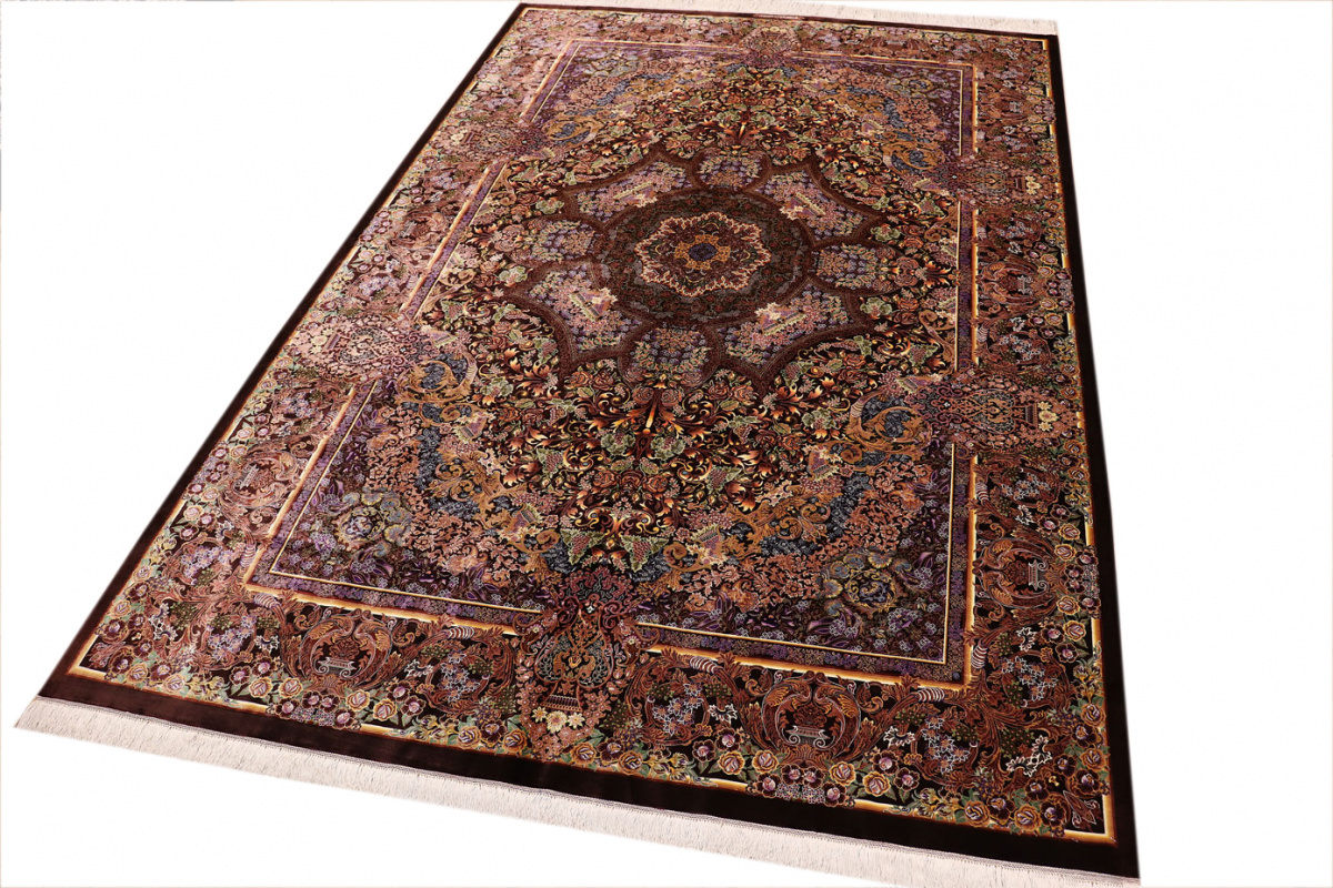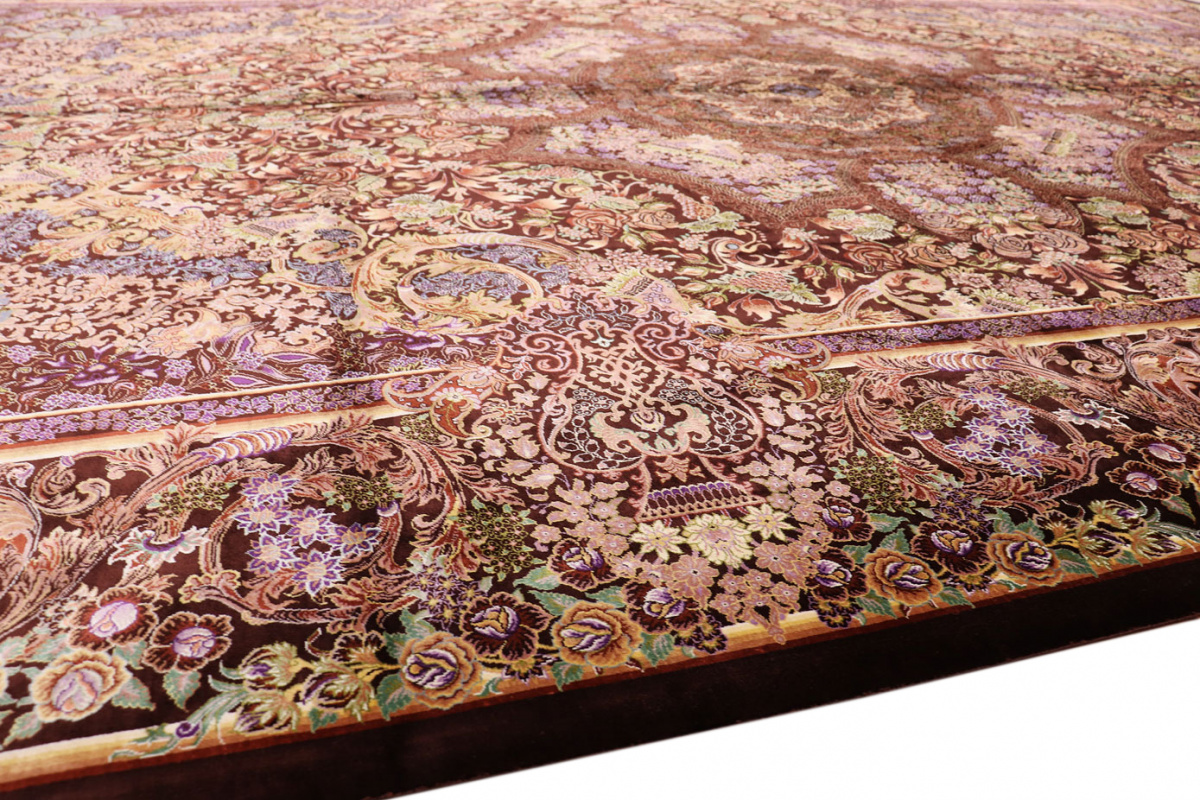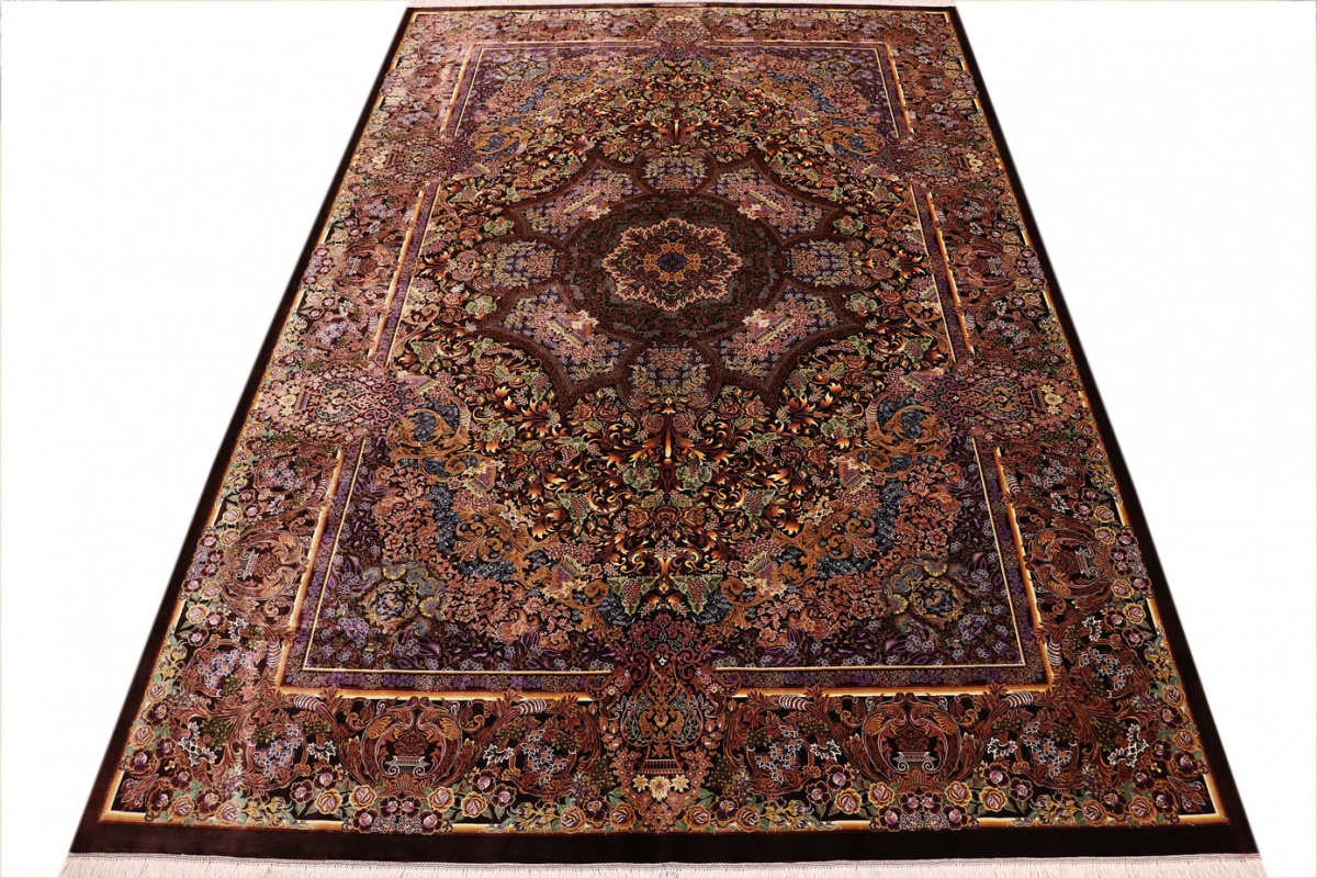 Exklusiver Seidenteppich Ghom Braun 305x205 cm