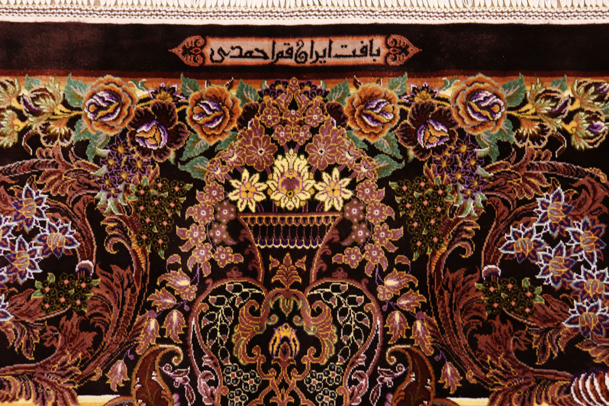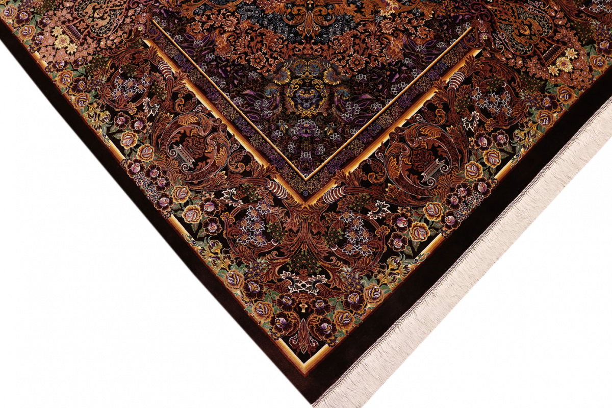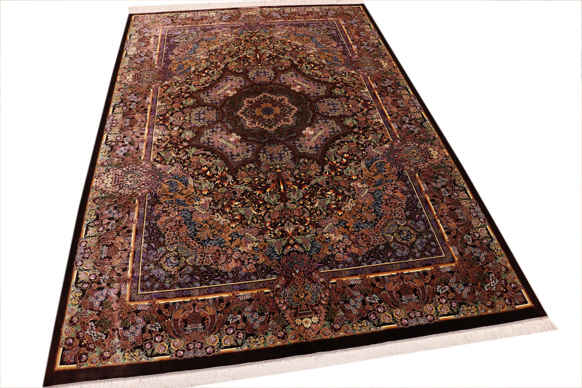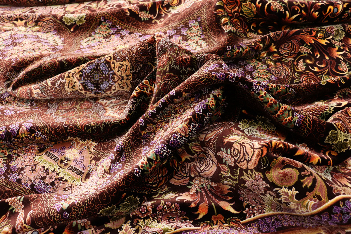 Exklusiver Seidenteppich Ghom Braun 305x205 cm