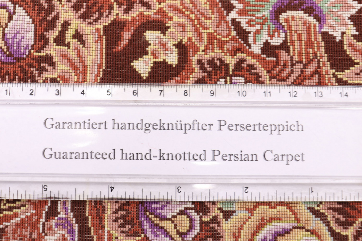 Trotz der vielseitigen Farbpalette hat der Gom-Teppich niemals grelle Farkontraste, sondern achtet auf eine harmonische Farbabstimmung. Bemerkenswert ist auch die äußerst exakte Knüpfung, die fast an Maschinenarbeit erinnert.