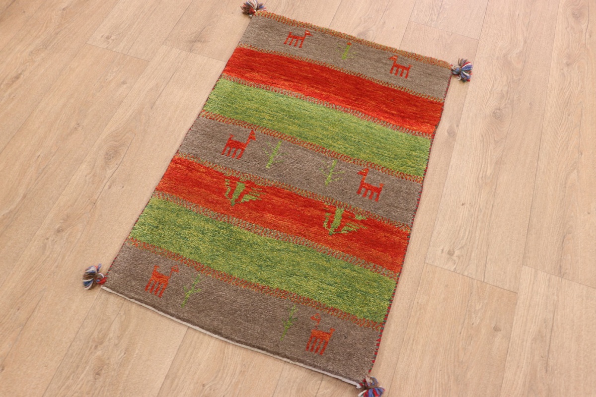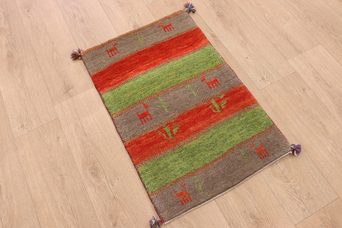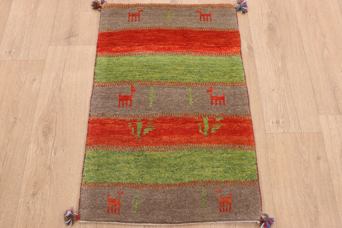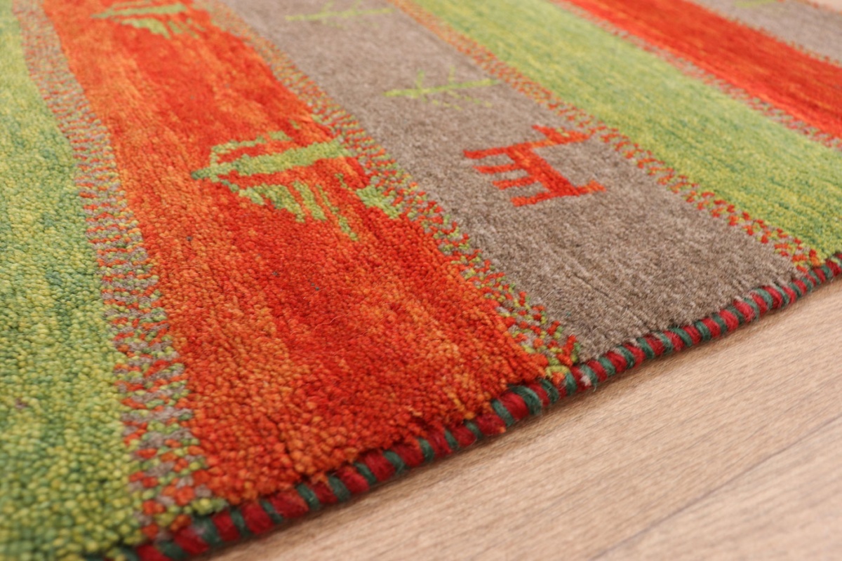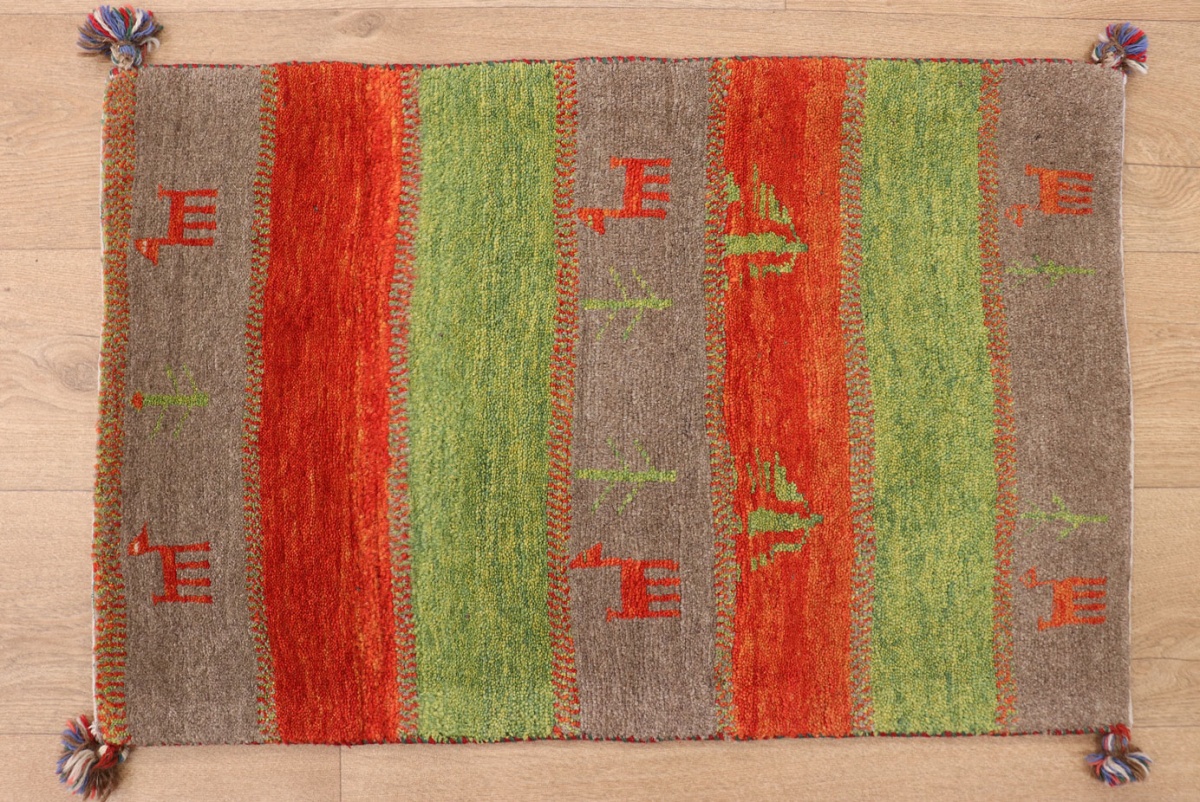 Gestreifter Perserteppich Gabbeh reine Wolle 86x56 cm