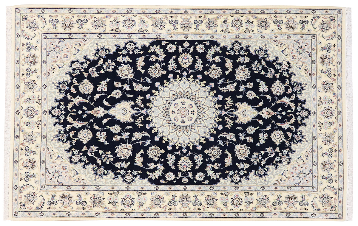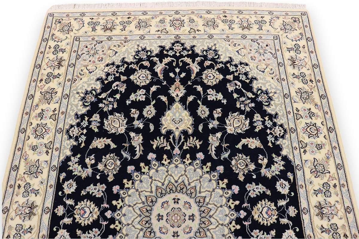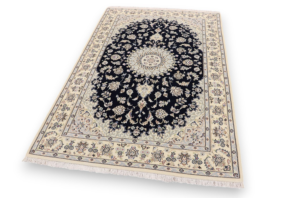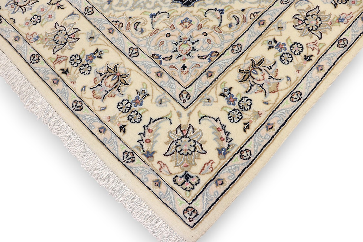 Die Stadt Nain in der Nähe von Isfahan im Zentralpersien ist bekannt für ihre feinen Teppiche, die mehr als eine Million Knoten pro Quadratmeter haben können. Je feiner die Kette, desto feiner kann auch die Knüpfung sein. In der Regel gibt es vier Qualitäten: Nain-Kaschmar (grob geknüpft), Nain-Noh-La (Baumwollfaden der Kette aus 9 Fasern gezwirnt, wodurch 40 Raj auf 7 cm kommen), Nain-Schisch-La (6 Fasern entsprechend 60 Raj), Nain-Tchaha-La (4 Fasern entsprechend 80 Raj). Alle Nain Teppiche sind durchgemustert und mit Medaillon.