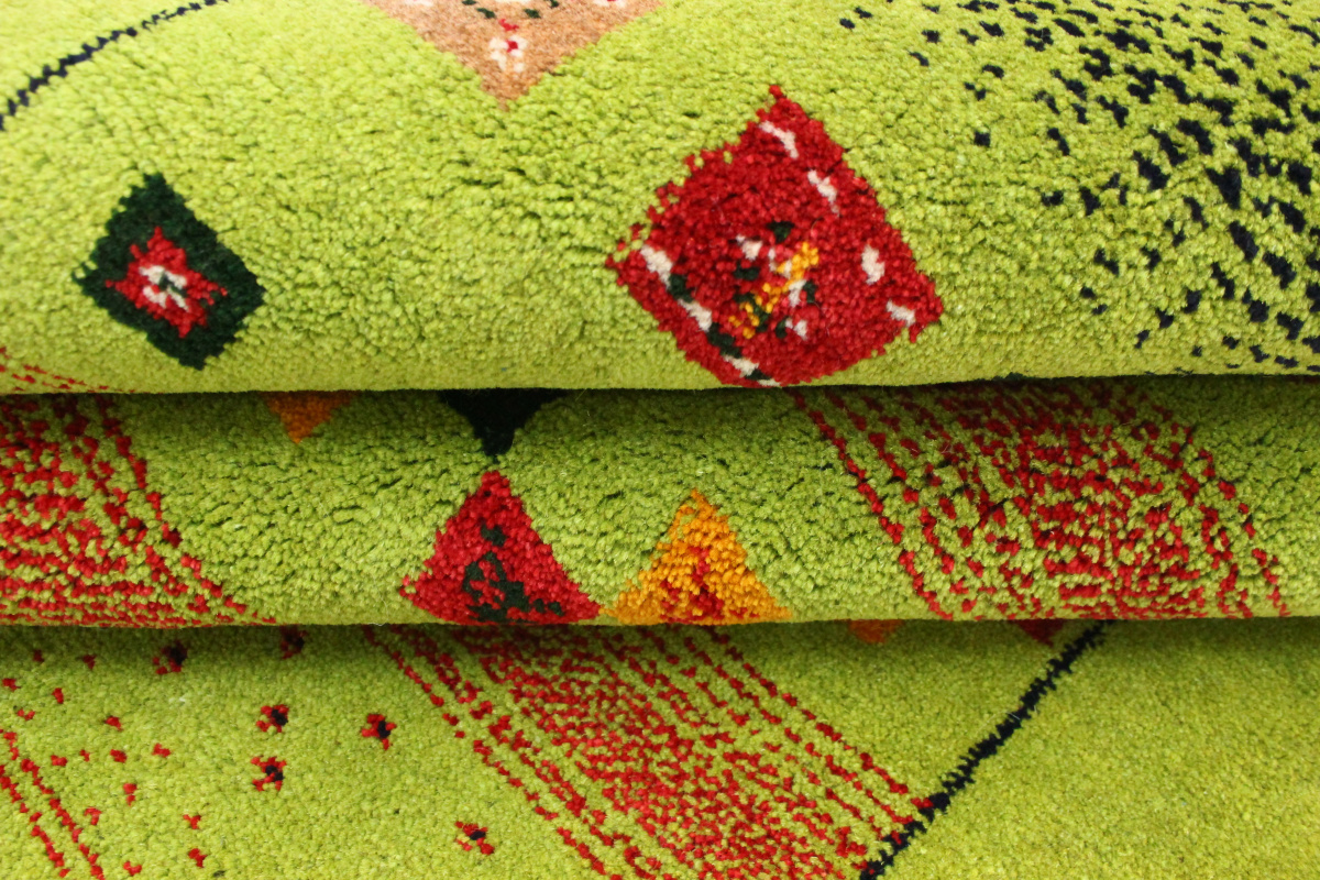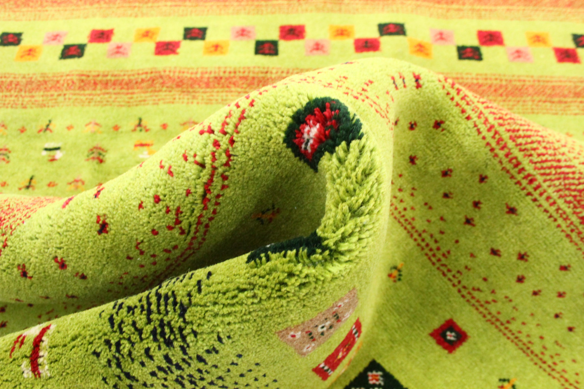 Der Loribaft Teppich ist die gehobene Klasse der populären, modernen und hochflorigen Gabbeh Teppiche aus der südwestlichen persischen Bergregion. Der Loribaft Gabbeh Teppich wird vom Nomadenvolk dieser Region handgeknüpft. Dabei wird die beste Schafswolle verwendet und auf pflanzlicher Basis gefärbt. Die Knüpfung von Loribaft Teppichen ist mehr als doppelt so fein wie ursprüngliche Gabbeh Teppiche. Die Muster sind sehr modern und stilvoll, die Farbgestaltung sehr warm und harmonisch. Diese hochwertige Qualität muss nicht teuer sein, hat aber ihren Preis!