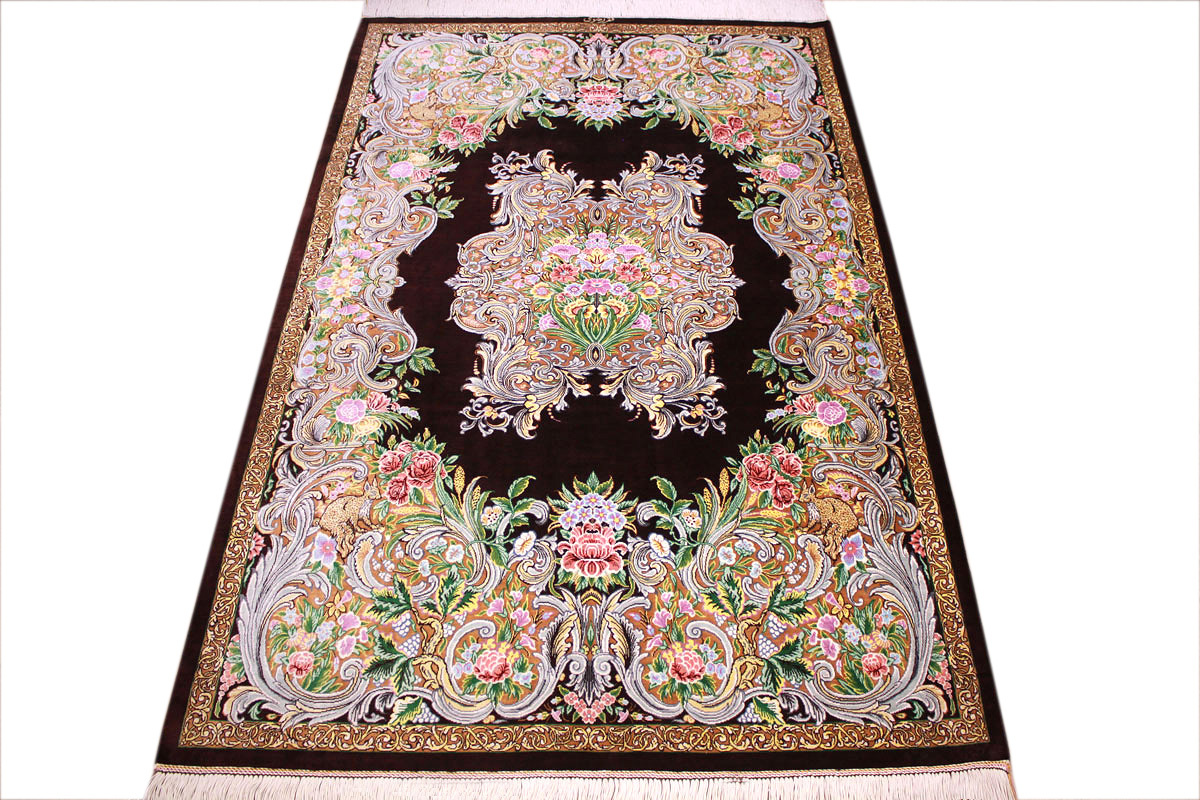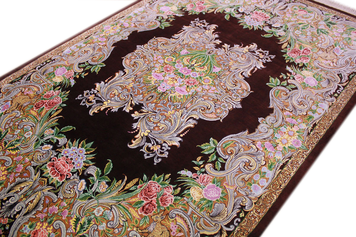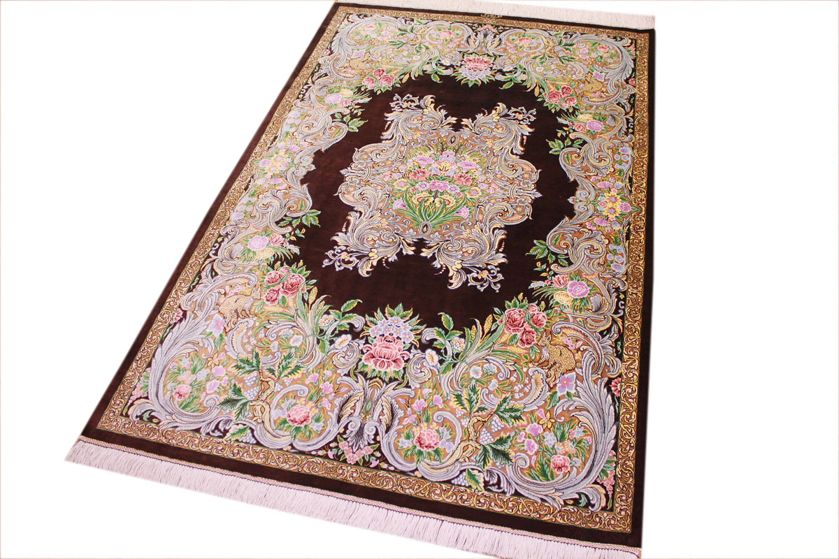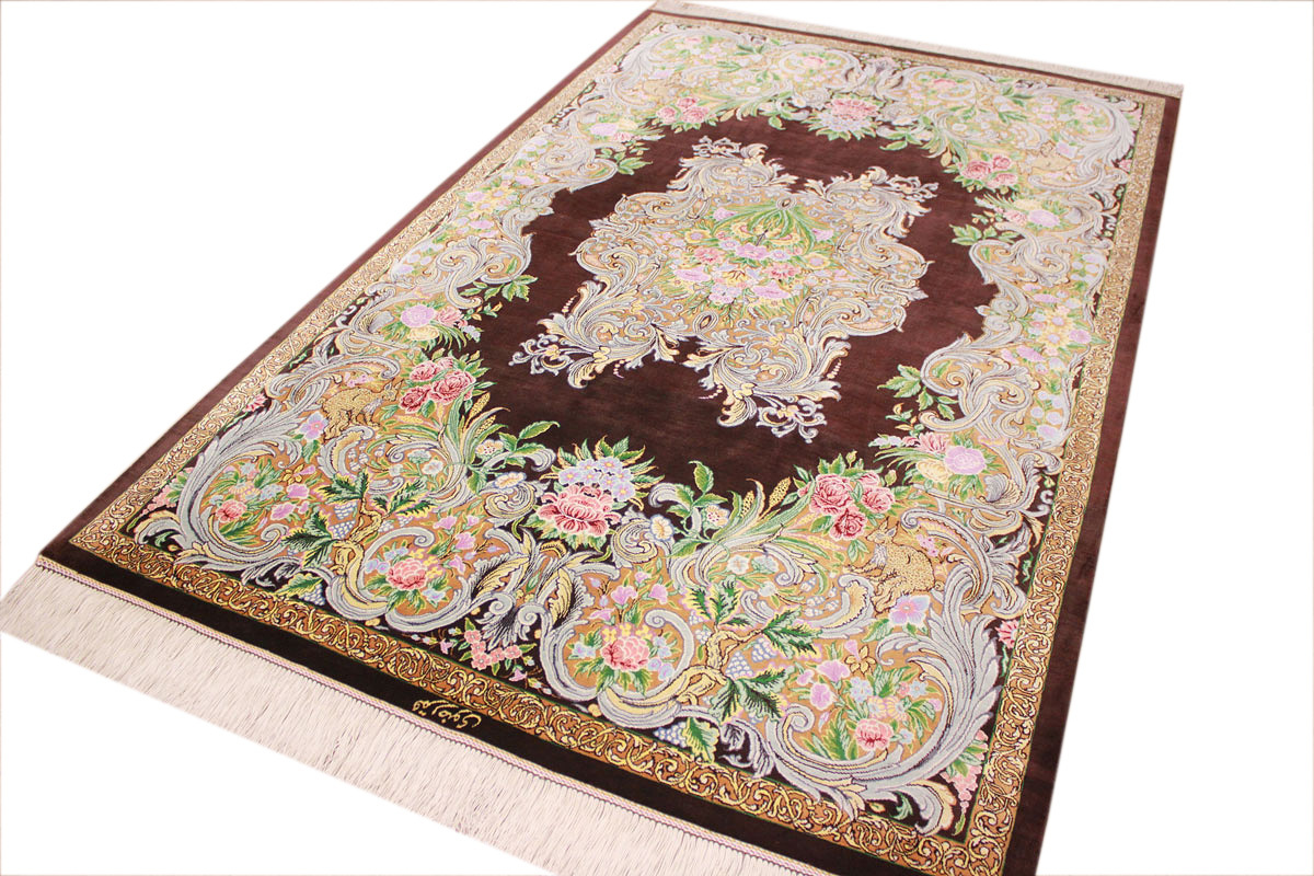 Seidenteppich Ghom Perser reine Seide 150x98 cm Braun