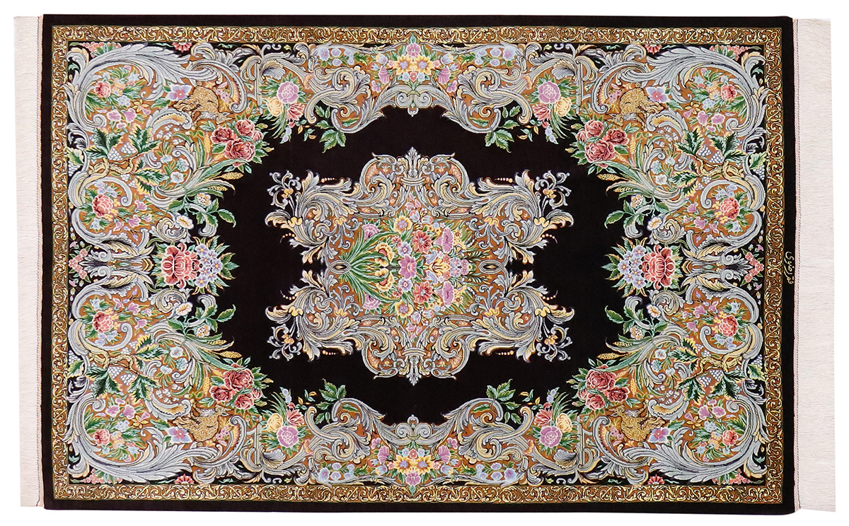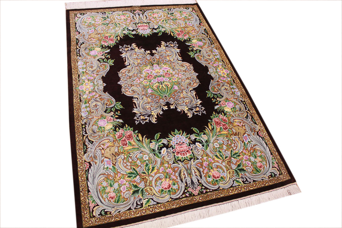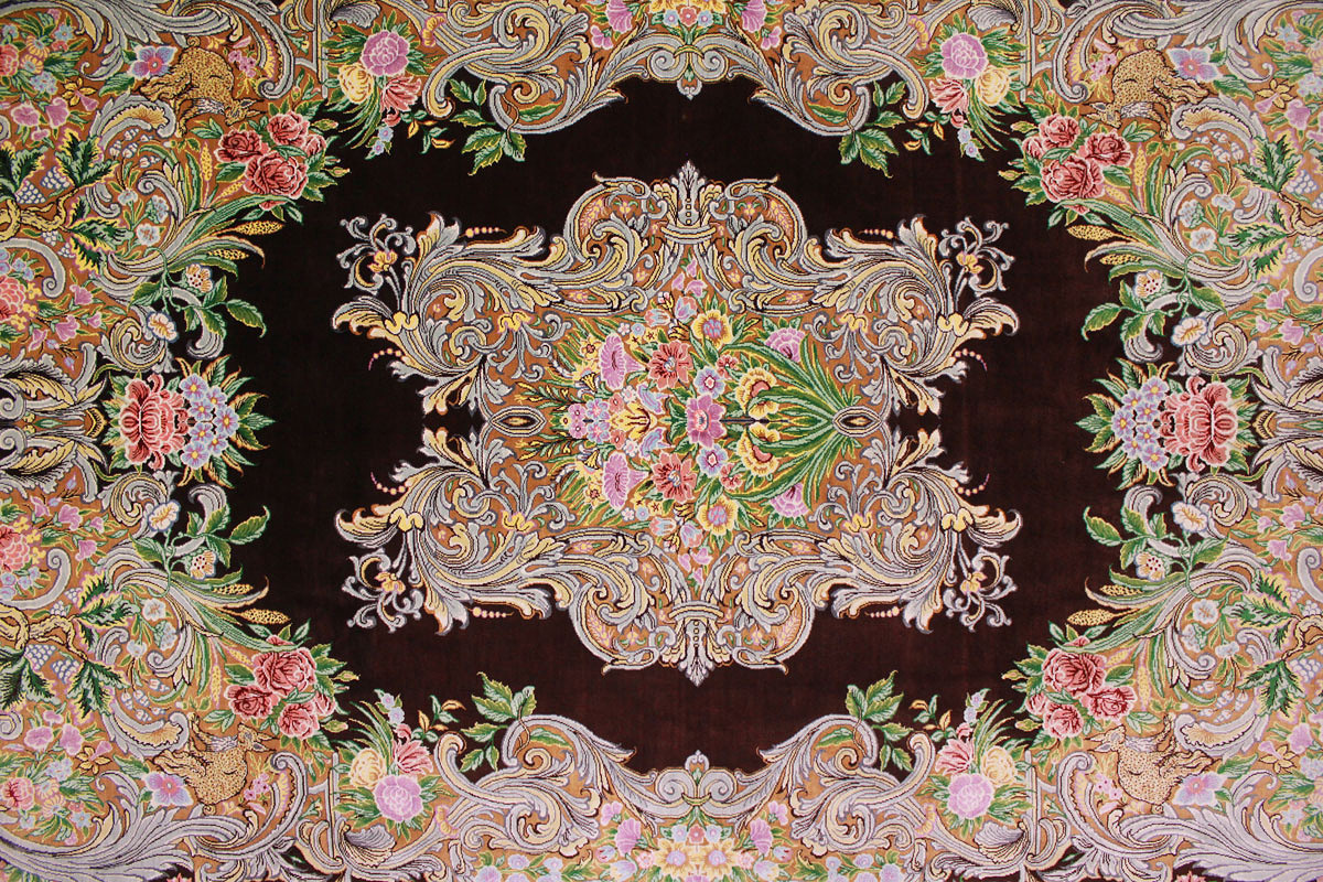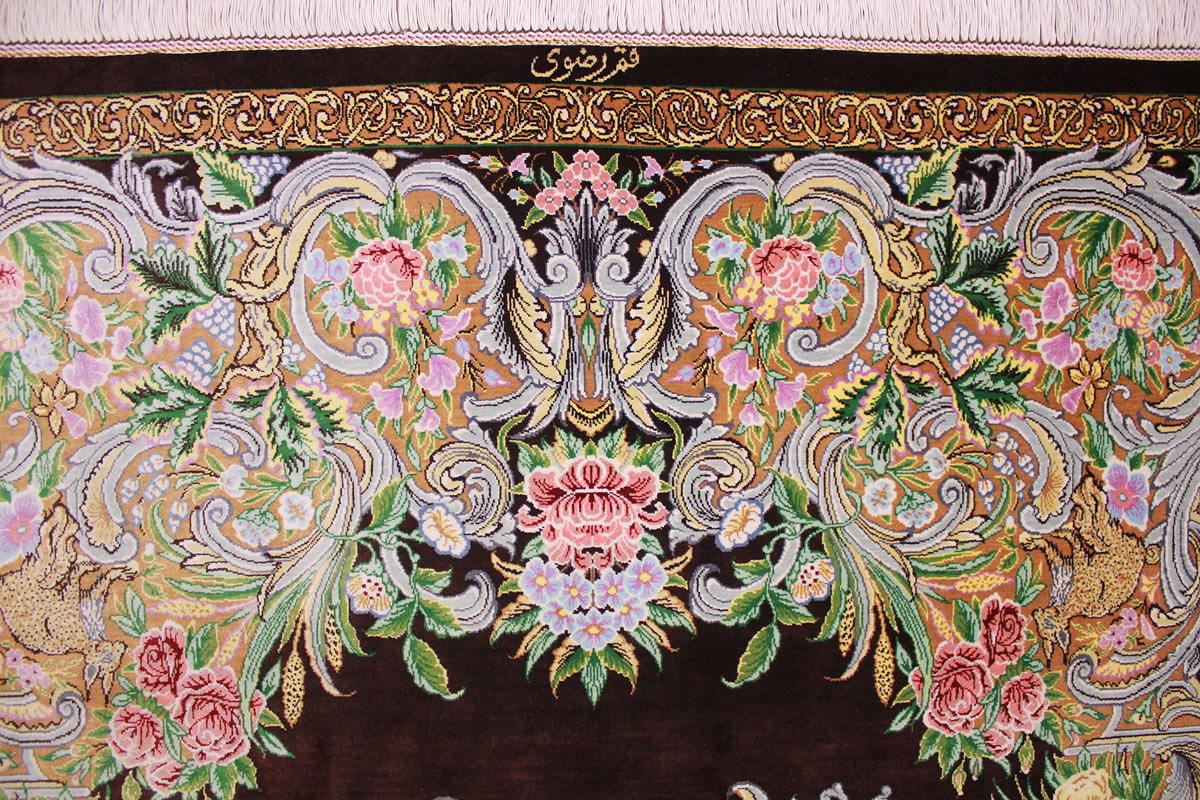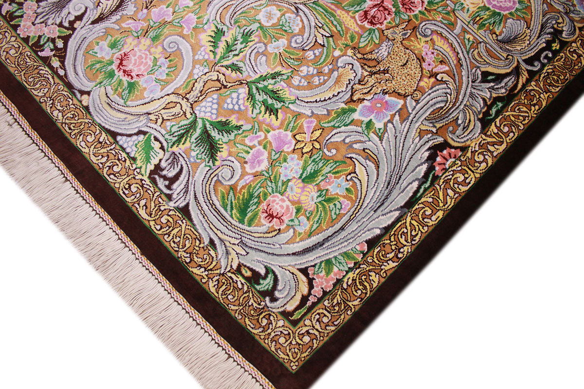 Seidenteppich Ghom Perser reine Seide 150x98 cm Braun
