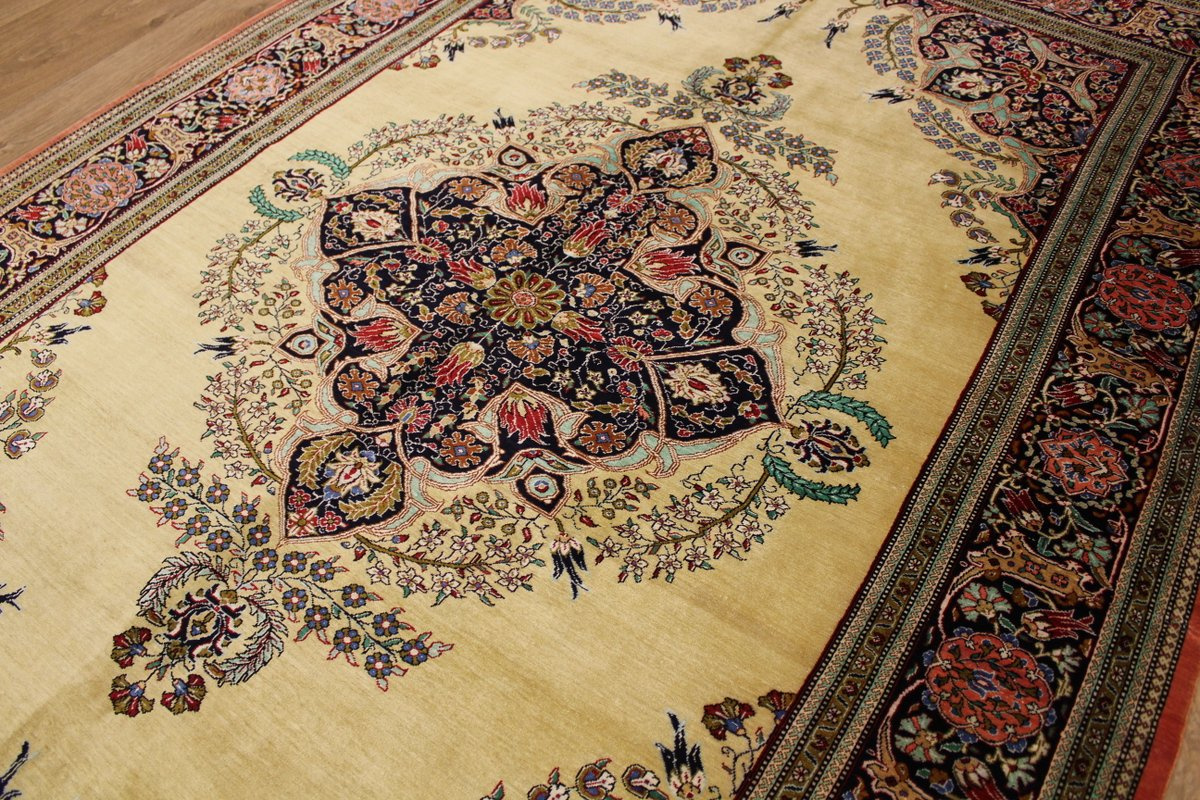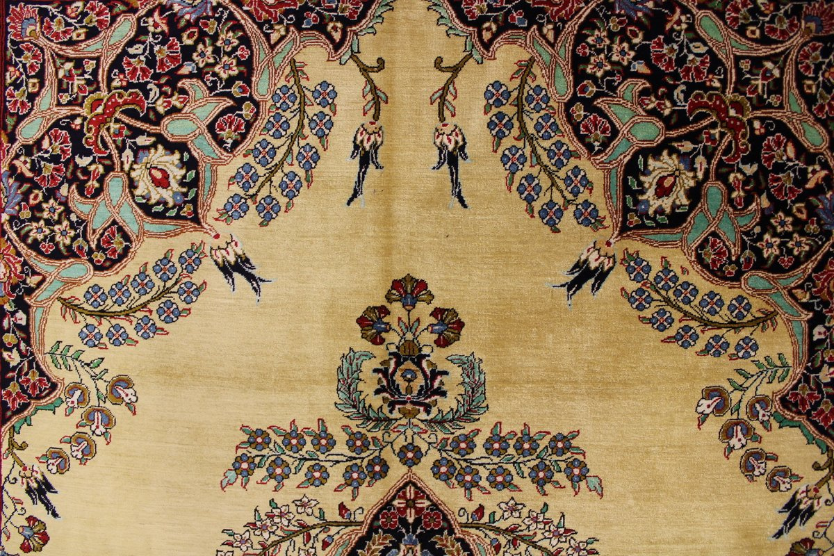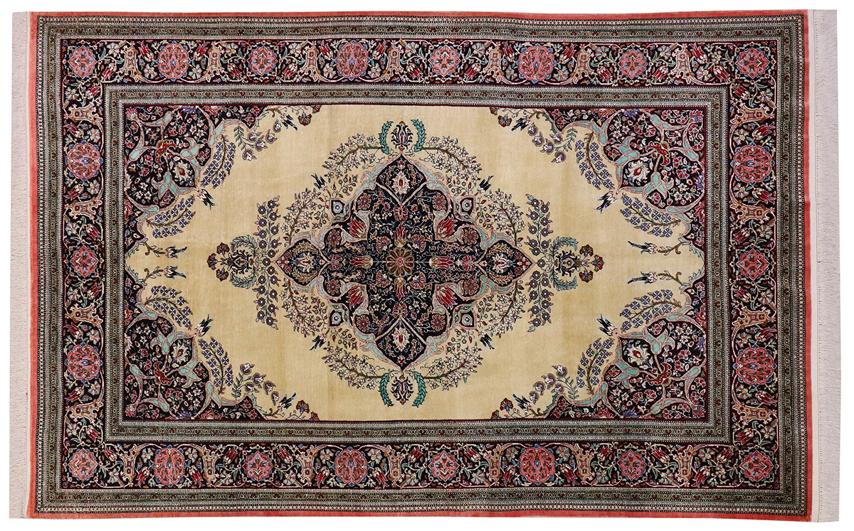 The city of Qom is considered a sacred place among persians, where many make pilgrimages for inner peace with God. Its weaving industry, started only in the 20th century, has developed an unequalled reputation for spectacular pieces of pure hand-woven silk. Qom has no pattern unique to this city, so its carpets are produced in a variety of beautiful and historic designs, demanding prices in the highest range of all Persian weaving.