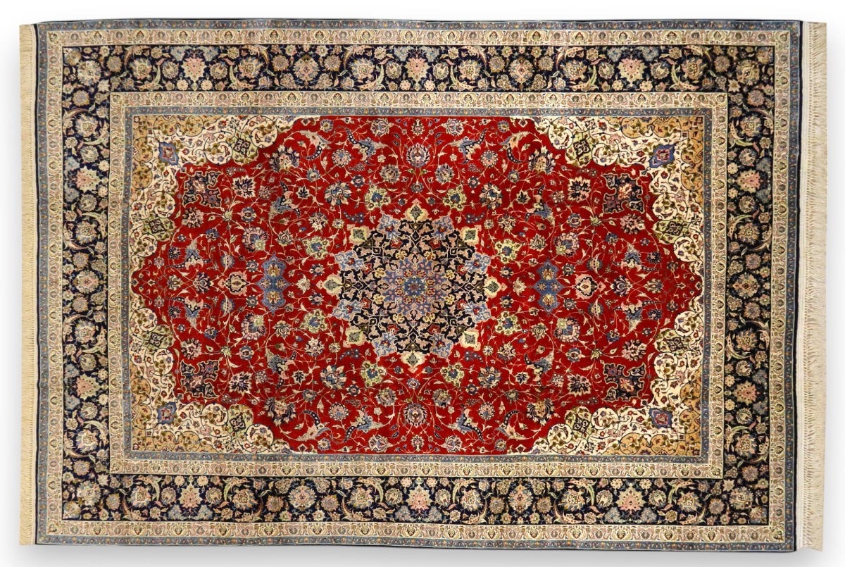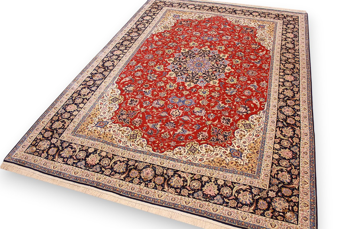 ORIGIN Among the finest handmade carpets ever made, Isfahan rugs are the pinnacle of the Persian carpet. In an enchanted city, renowned for its taste and finesse, these carpets are of great delicacy and utmost intricacy. The city of Isfahan holds pride of place in the Persian rug industry because of its rich history and reputation dating back to the 16th century. Most Isfahan carpets are finely detailed in wool and silk, often on a base of pure silk. Until the middle of the 20th century colors were mostly stronger, like bold reds and blues on the ubiquitous beige. But later comes the visible influence of the international Designer, with more subdued ranges of subtler colors. Still, at the sight of curvilinear vines snaking over an elegant field around an exquisite medallion, especially if the long fringes glisten silkily from magnificent borders, the word 'Isfahan' tends to spring to one's lips. Patterns include pictorial and tree-of-life schemes, as well as the Shah Abbas field with its floral vines.
