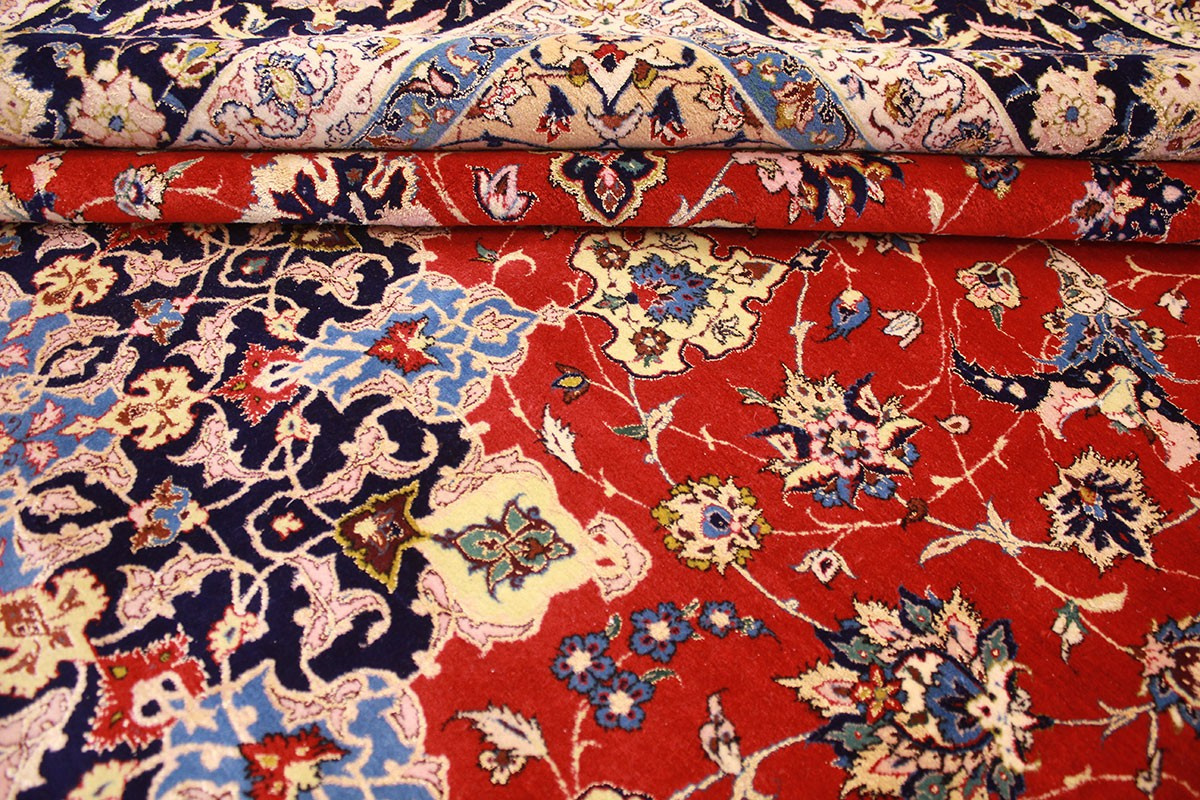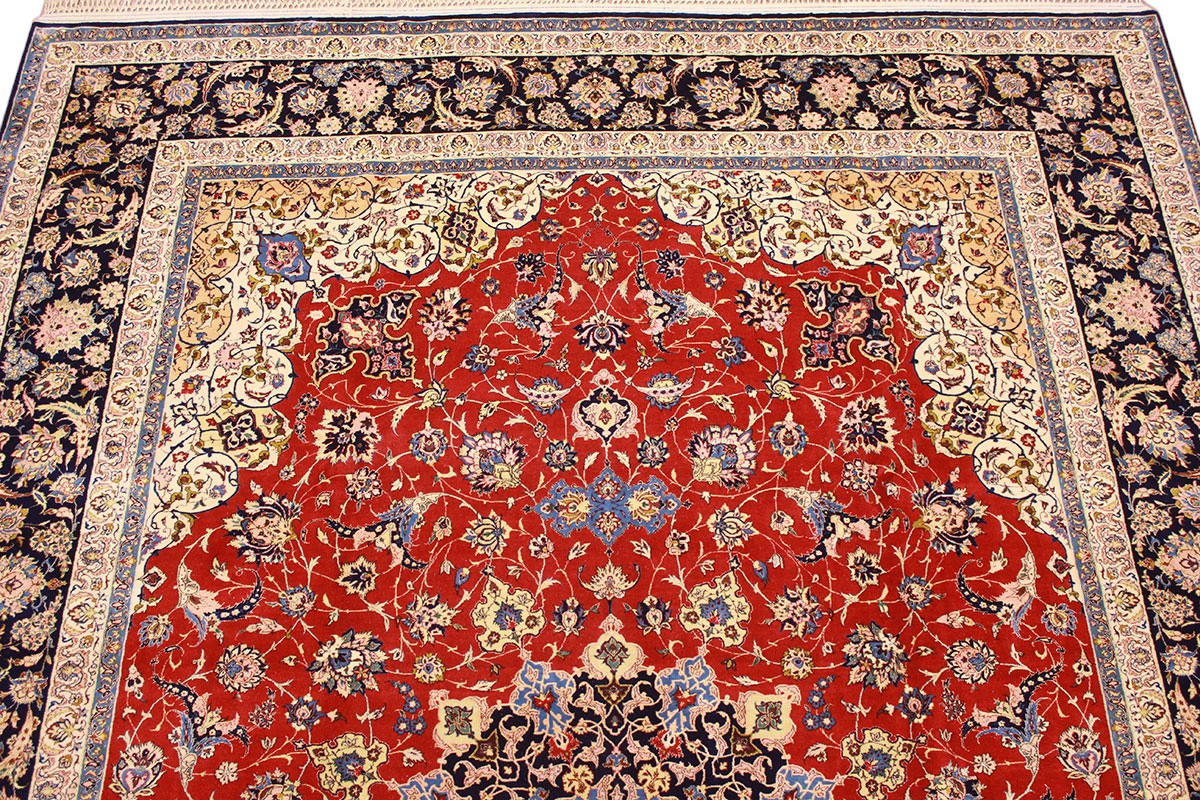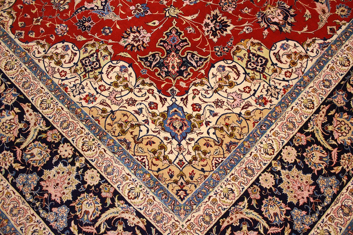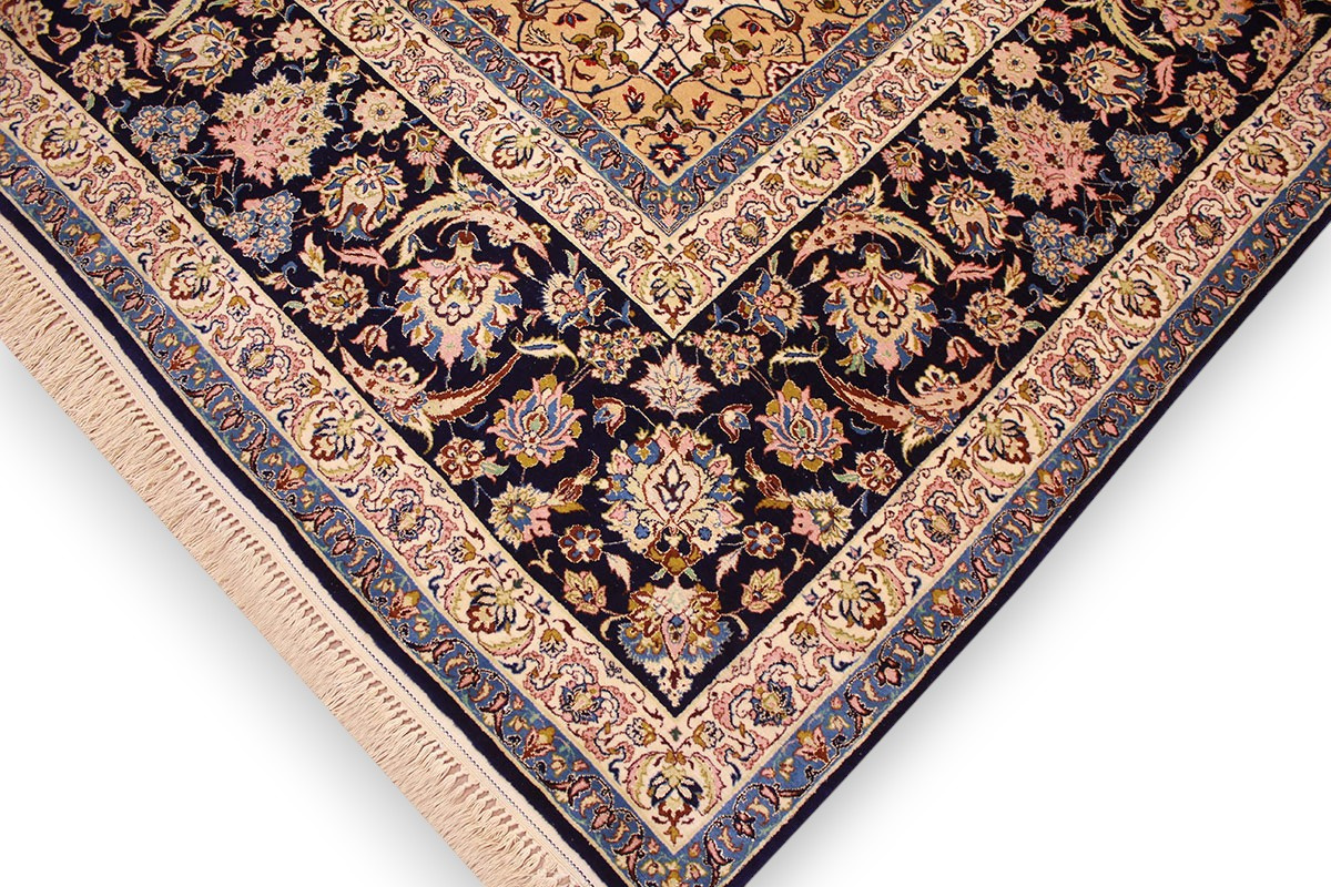 Among the finest handmade carpets ever made, Isfahan rugs are the pinnacle of the Persian carpet. In an enchanted city, renowned for its taste and finesse, these carpets are of great delicacy and utmost intricacy. The city of Isfahan holds pride of place in the Persian rug industry because of its rich history and reputation dating back to the 16th century. Most Isfahan carpets are finely detailed in wool and silk, often on a base of pure silk. Until the middle of the 20th century colors were mostly stronger, like bold reds and blues on the ubiquitous beige. But later comes the visible influence of the international Designer, with more subdued ranges of subtler colors. Still, at the sight of curvilinear vines snaking over an elegant field around an exquisite medallion, especially if the long fringes glisten silkily from magnificent borders, the word 'Isfahan' tends to spring to one's lips. Patterns include pictorial and tree-of-life schemes, as well as the Shah Abbas field with its floral vines.