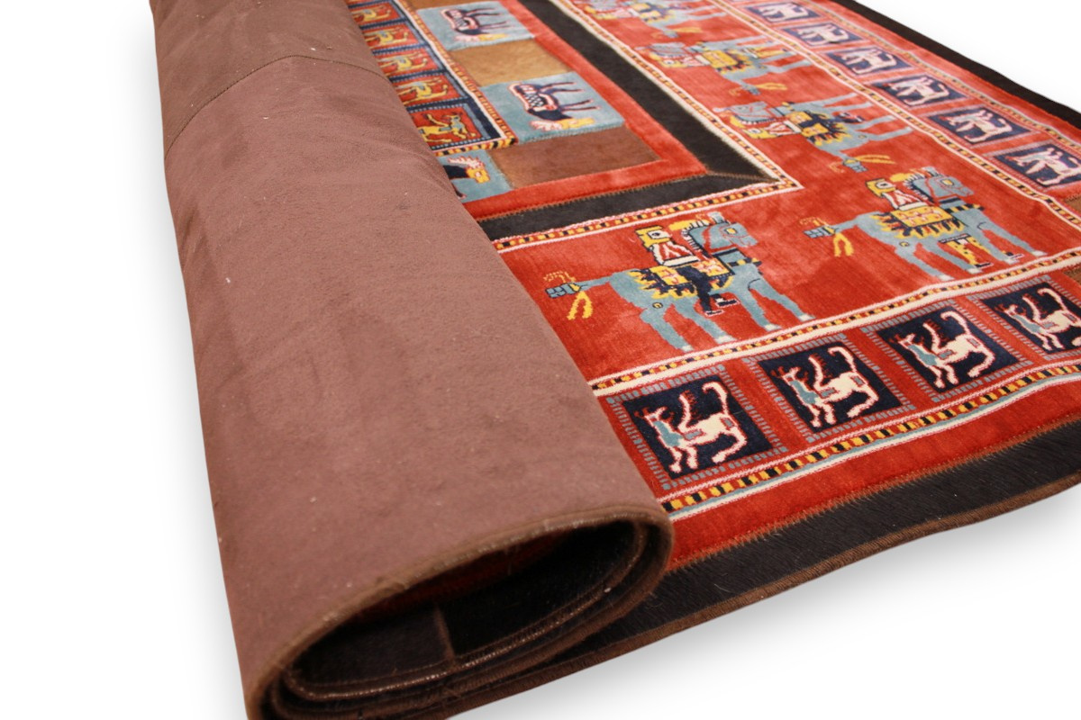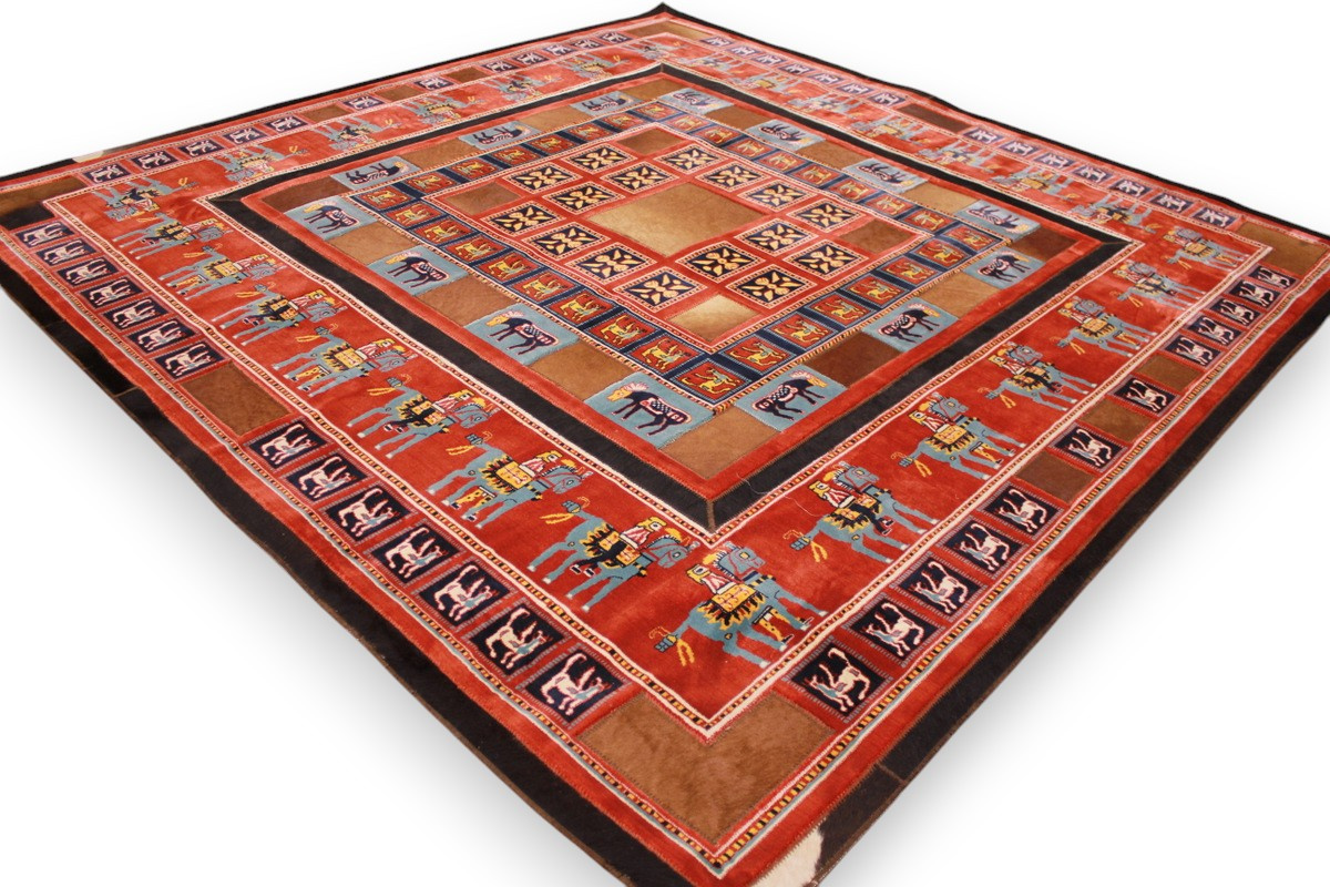 Brilliantly detailed medallions, all-over patterns of the greatest intricacy, and breath-taking pictorials and hunting scenes, attest to the craftsmanship of Persia's finest master-weavers. Some pieces of fine wool are also made there. Although signatures are found on fine rugs made elsewhere, the weavers of Qom take such enormous pride in their product that they almost always weave their signatures into a small part of the carpet´s border. Many shapes and sizes are produced, including squares, rectangles, oval or round, and the sizes may vary from a very small rug to a carpet which would suit the grand salon of a palace. The materials used can be wool, silk, or any combination of the two.