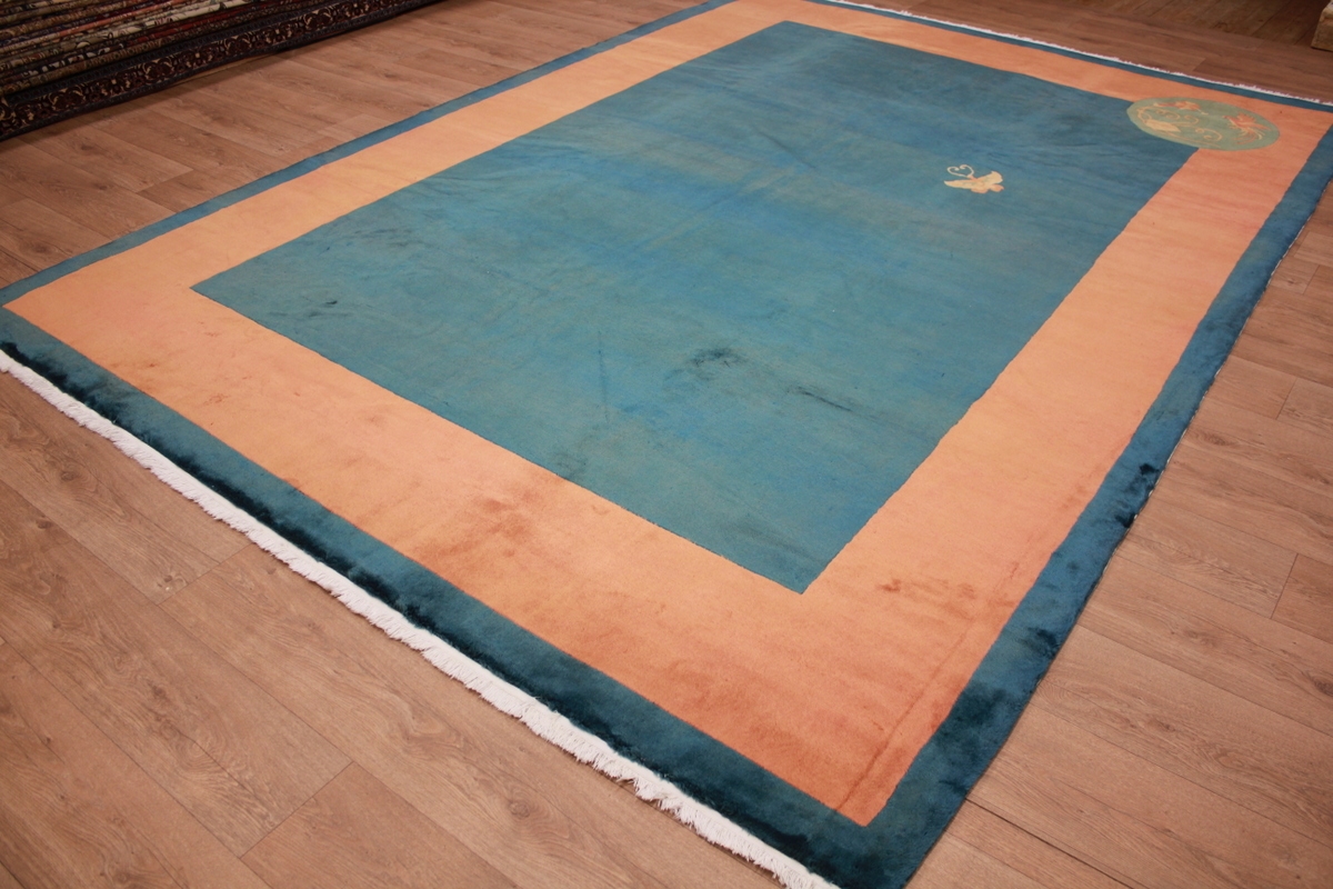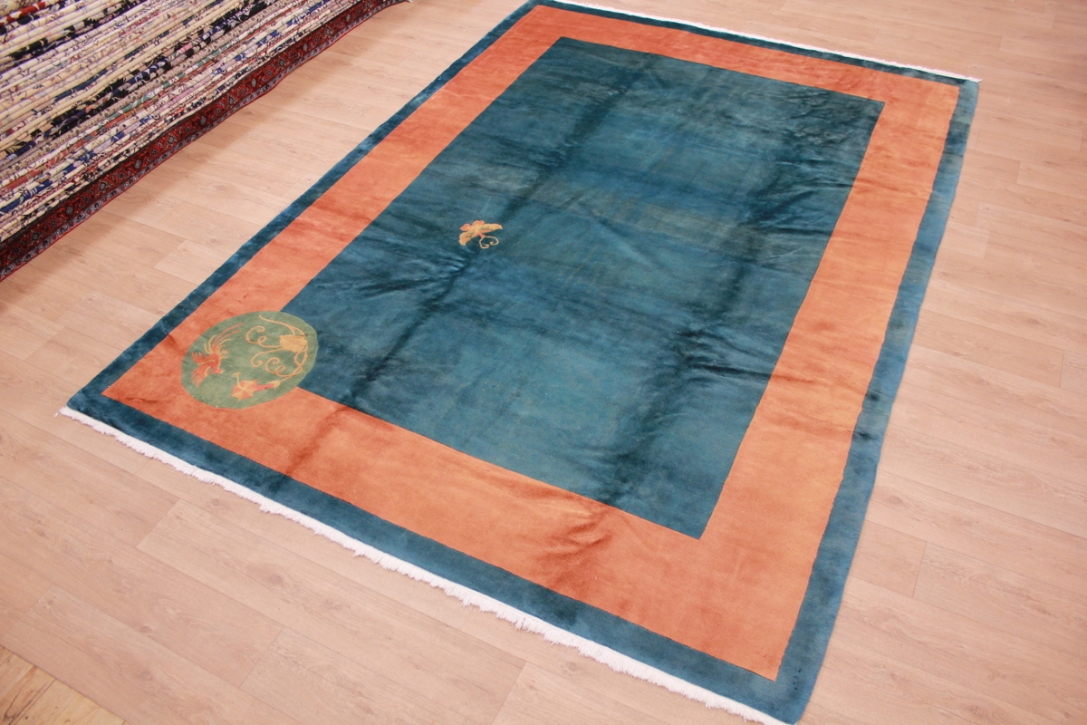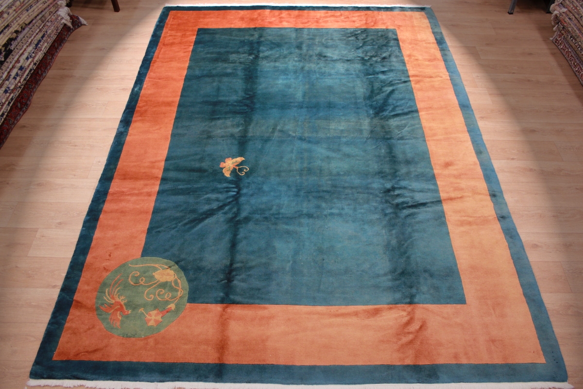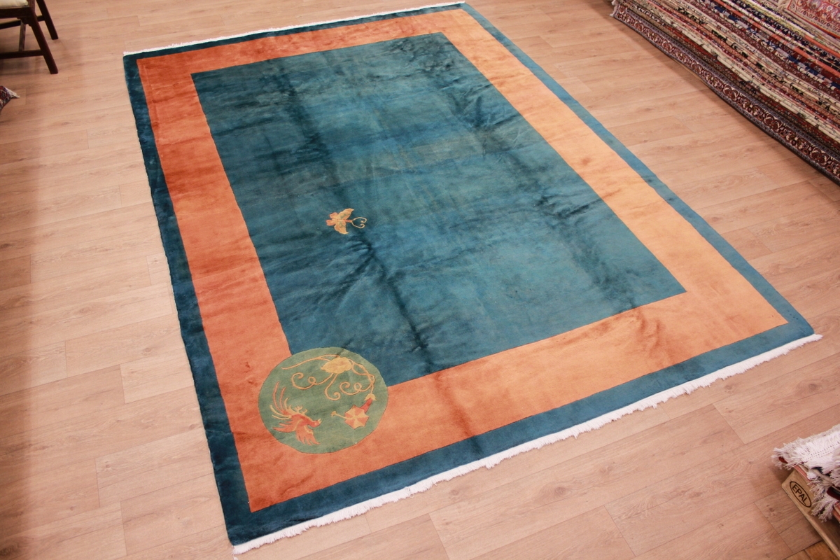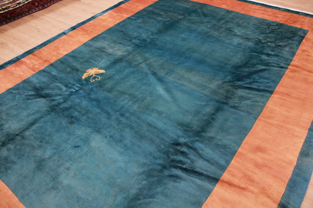 Chinese carpets are hand knotted in China. Chinese knotters use materials such as wool, virgin wool or silk for their carpets. Chinese wool carpets usually have an old Chinese motif such as the famous dragon motif. Silk carpets from China are inspired by Persian pattern.
