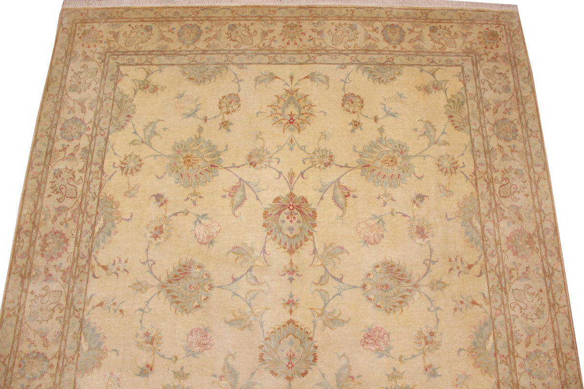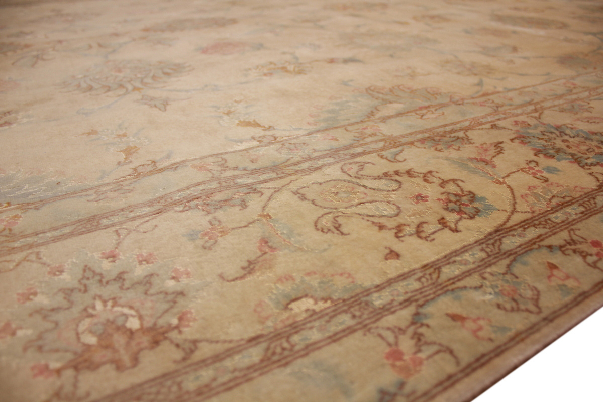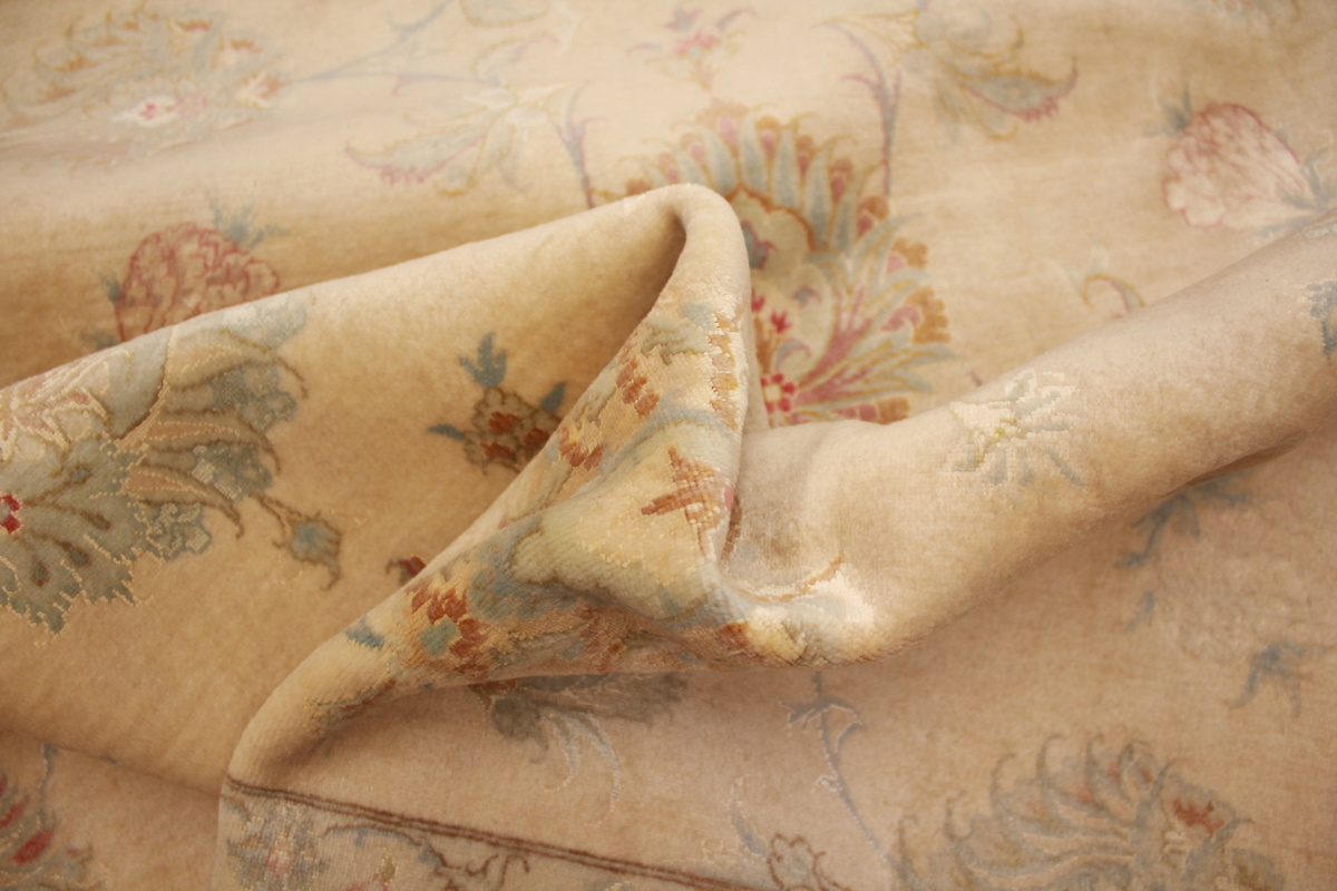 Taabriz is probably the most prolific carpet-producing center in the world, and certainly one of the oldest. This enchanted city was established more than a thousand years ago. After many invasions, occupations and wars, Taabriz took the ancient techniques of the past and created a huge rug-exporting industry. The finest era of Persian rug weaving was the Safavid Dynasty (1499 - 1722), when the Safavids overthrew the Turks who had occupied Taabriz. They gave the city one of the first Royal workshops, making it the artistic center of Persian culture. In spite of all the later conquests and political restructurings, Taabriz managed to keep these ancient traditions alive. Today, many rugs produced in Taabriz emulate the artististic heritage of the Persian Safavid carpet, and when a designer in any part of the world wants to commission a certain pattern to be hand-woven, Taabriz is the city that he visits. Attesting to their pride in producing fine carpets, the master-weavers of Taabriz often weave their signature into a part of the carpet's border. These signatures can, of course, be found on extremely fine rugs made in other cities, but a signature on the 'ceremonial' border of a Taabriz Naqsheh is the ultimate in formality and sophistication. The material used for the pile of these rugs are wool, silk, or a combination of the two. A beautiful blend of fine Kurk wool and silk is the most common in a fine Taabriz, with wool only used in those of average quality. In the very finest carpets, the foundation of the rug is pure silk instead of cotton, and some even have 18 or 24 karat gold threads woven into the foundation, with 300 to 800 KPSI not being uncommon.